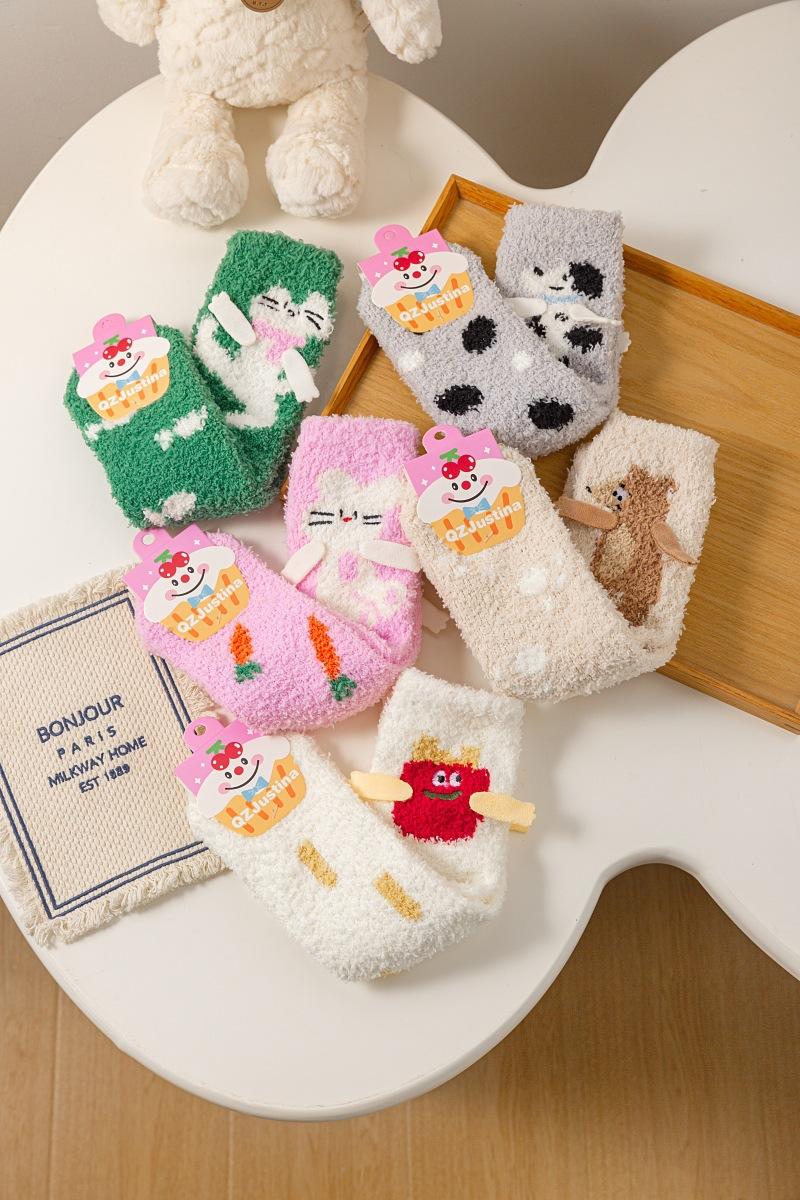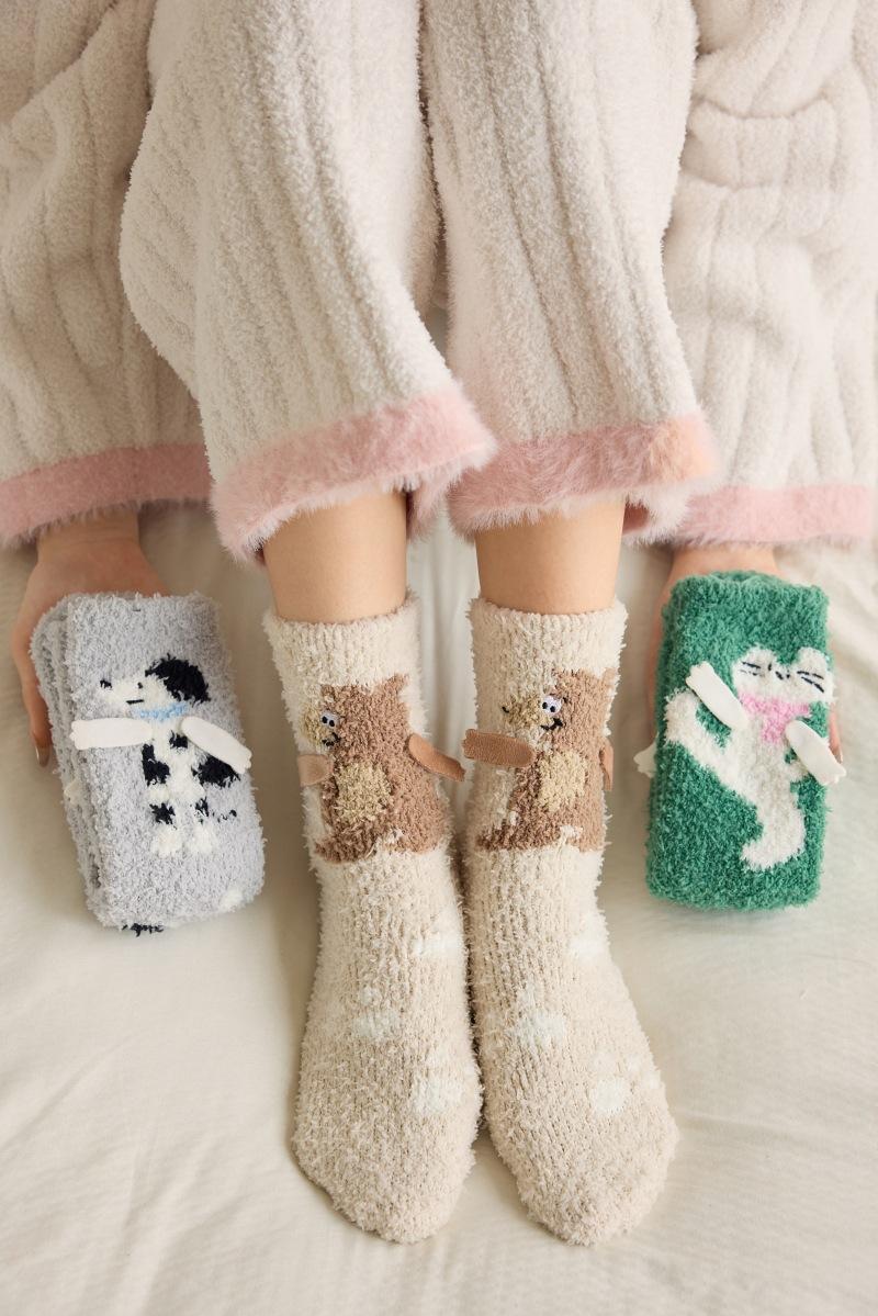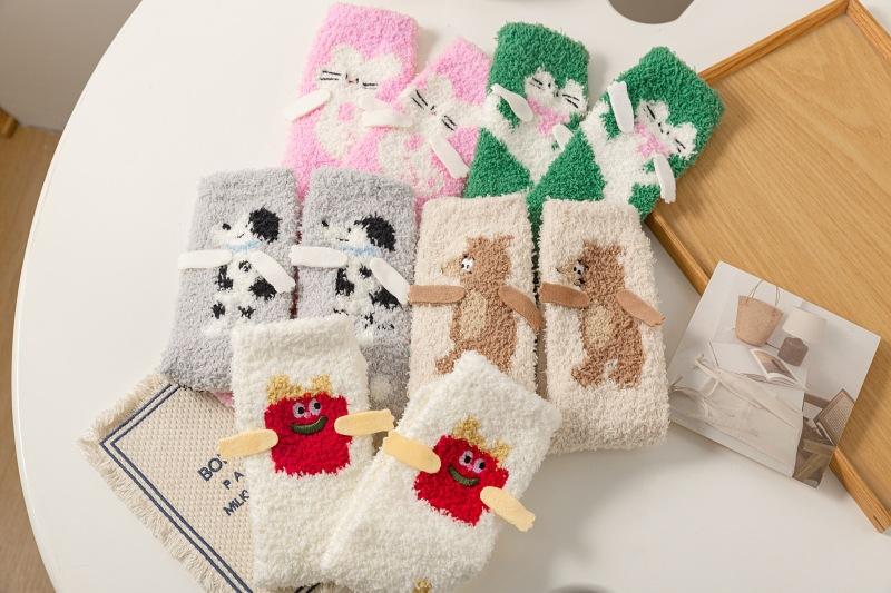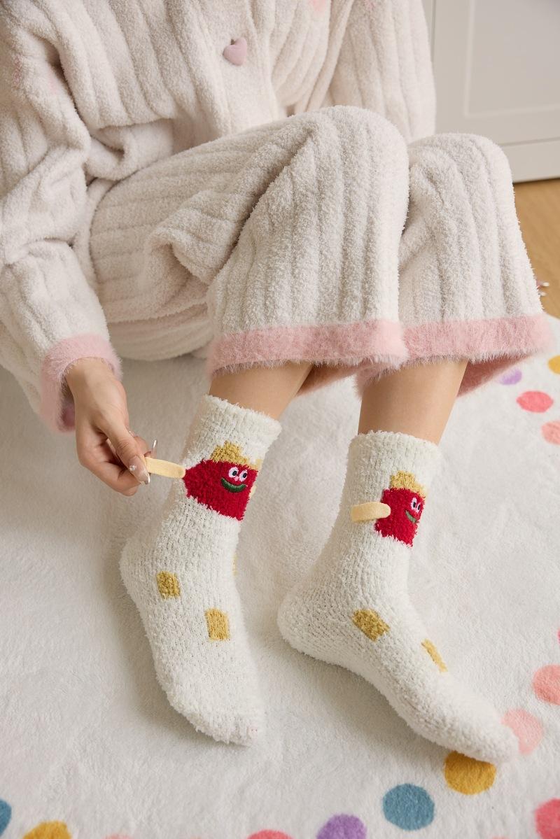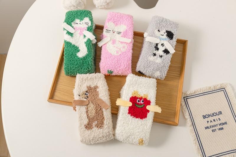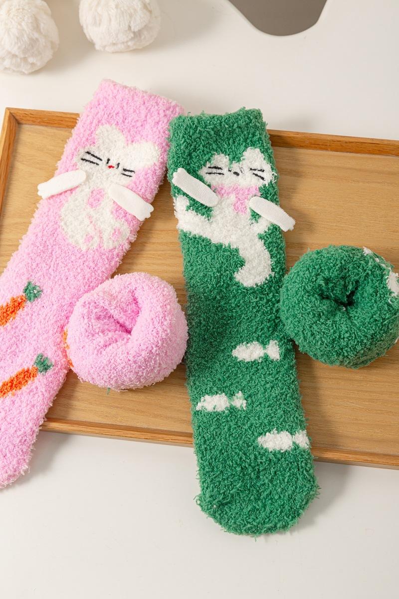 Calcetines de piso de forro polar de coral otoño e invierno nuevos calcetines lindos calcetines largos para dormir de mujer calcetines cálidos de felpa calcetines para casa de media pantorrilla