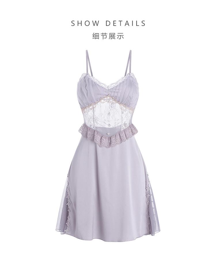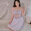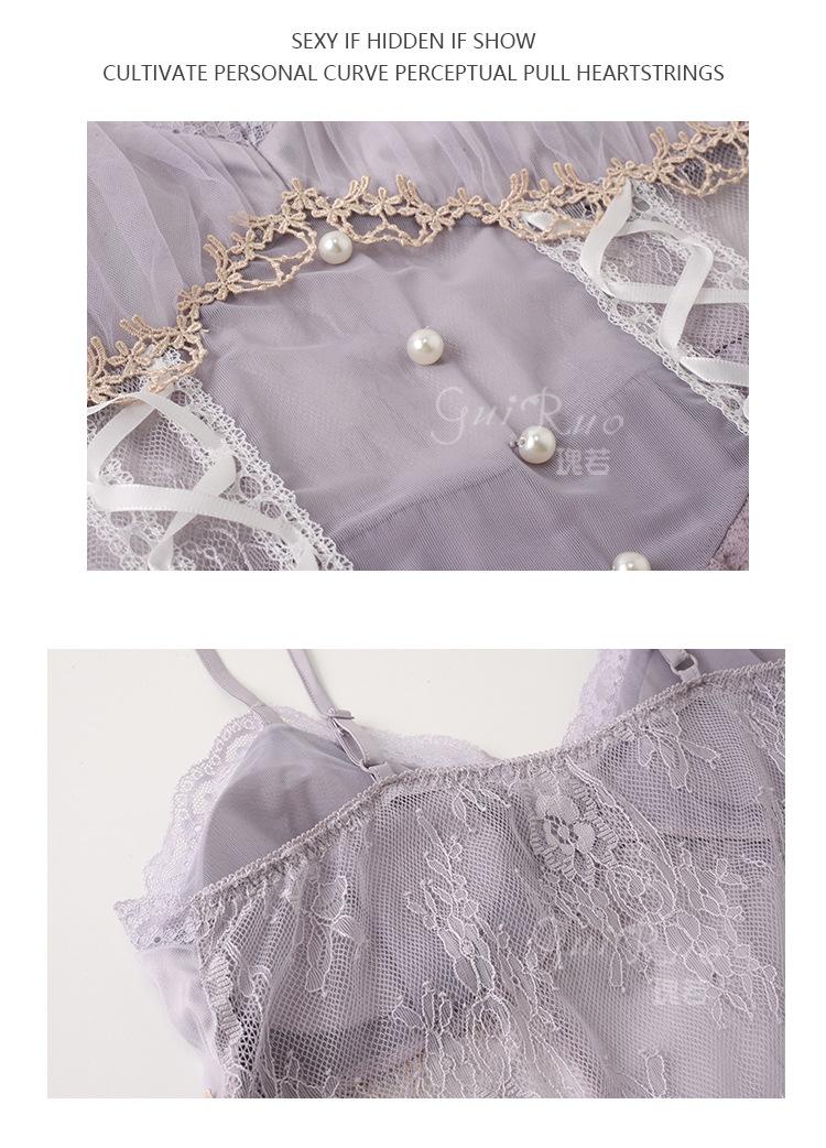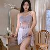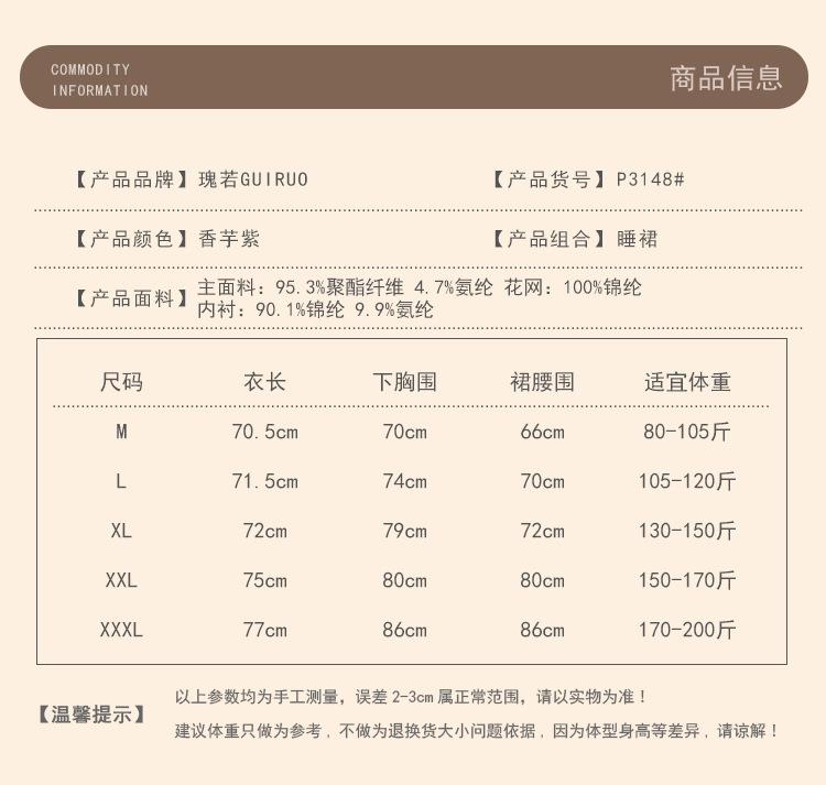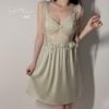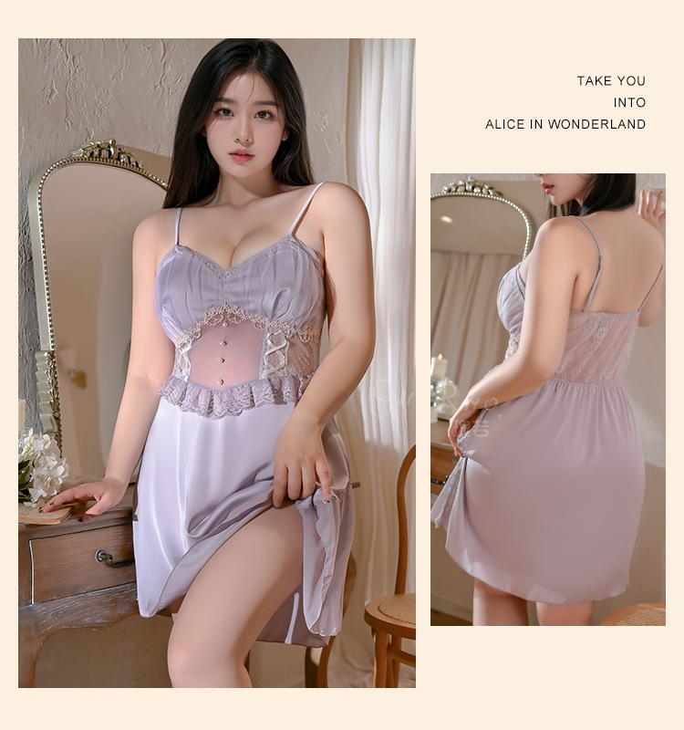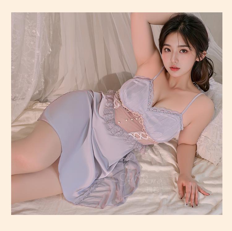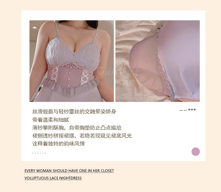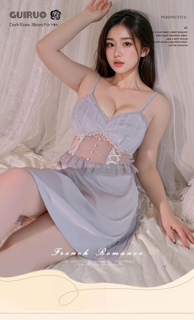 Guiruo Talla Grande Lujo Accesible Íntimos de Seda de Hielo Dulce Decoración de Encaje Sexy Escote Profundo en V con Almohadilla para el Busto Camisón Traje de Mujer P3148