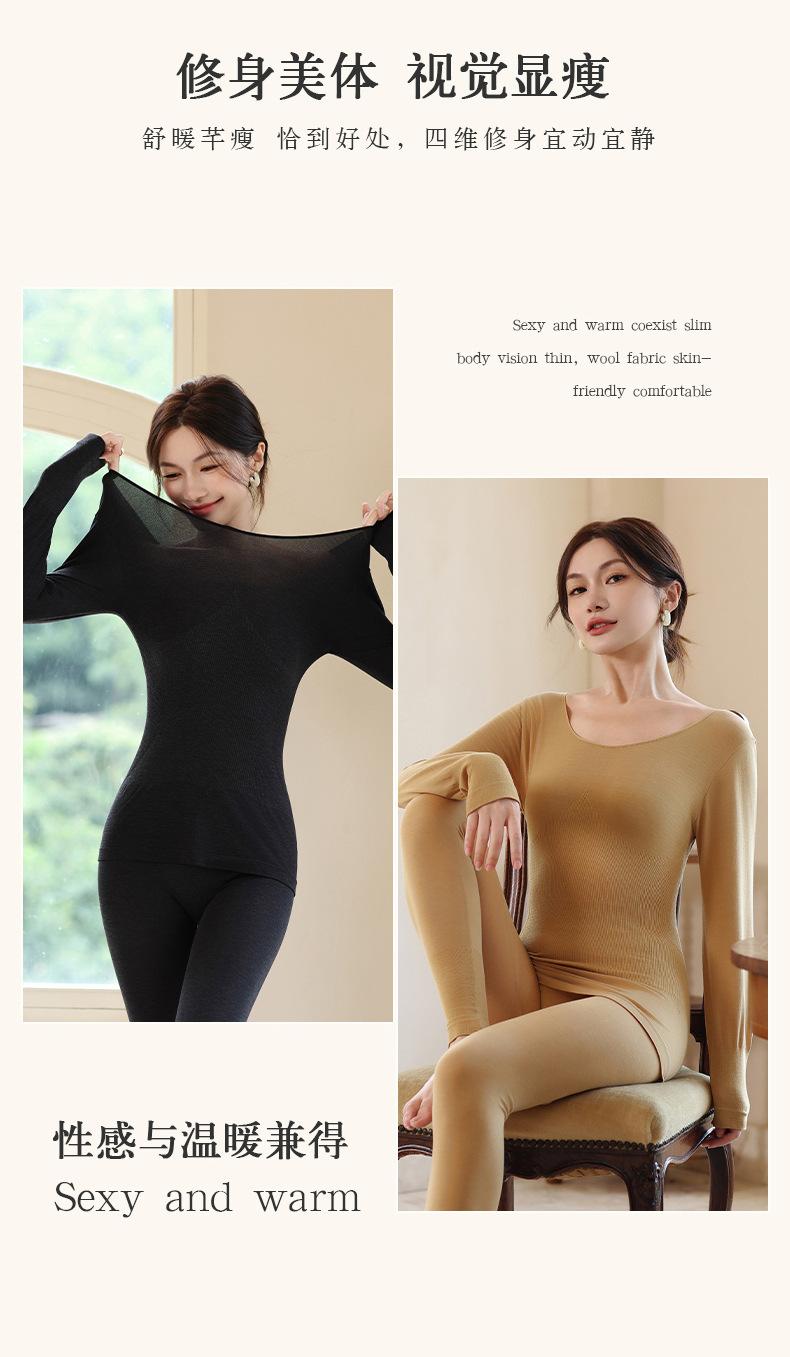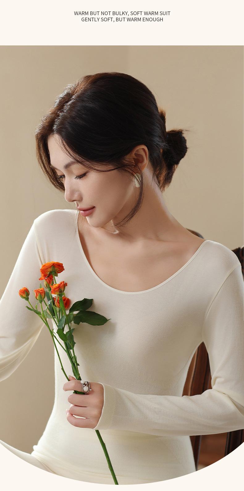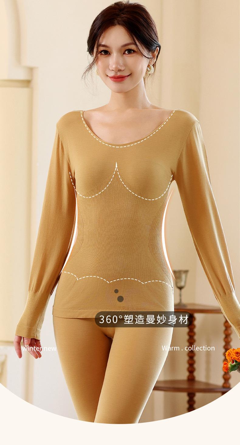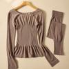 Ropa Interior Cálida para Mujer Moldeadora de Cintura Levanta Caderas Cuello Redondo Grande Ropa de Otoño Set de Pantalones de Otoño Lana Merino Generadora de Calor Ropa Interior Adelgazante Moldeador de Cuerpo