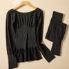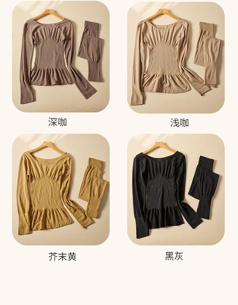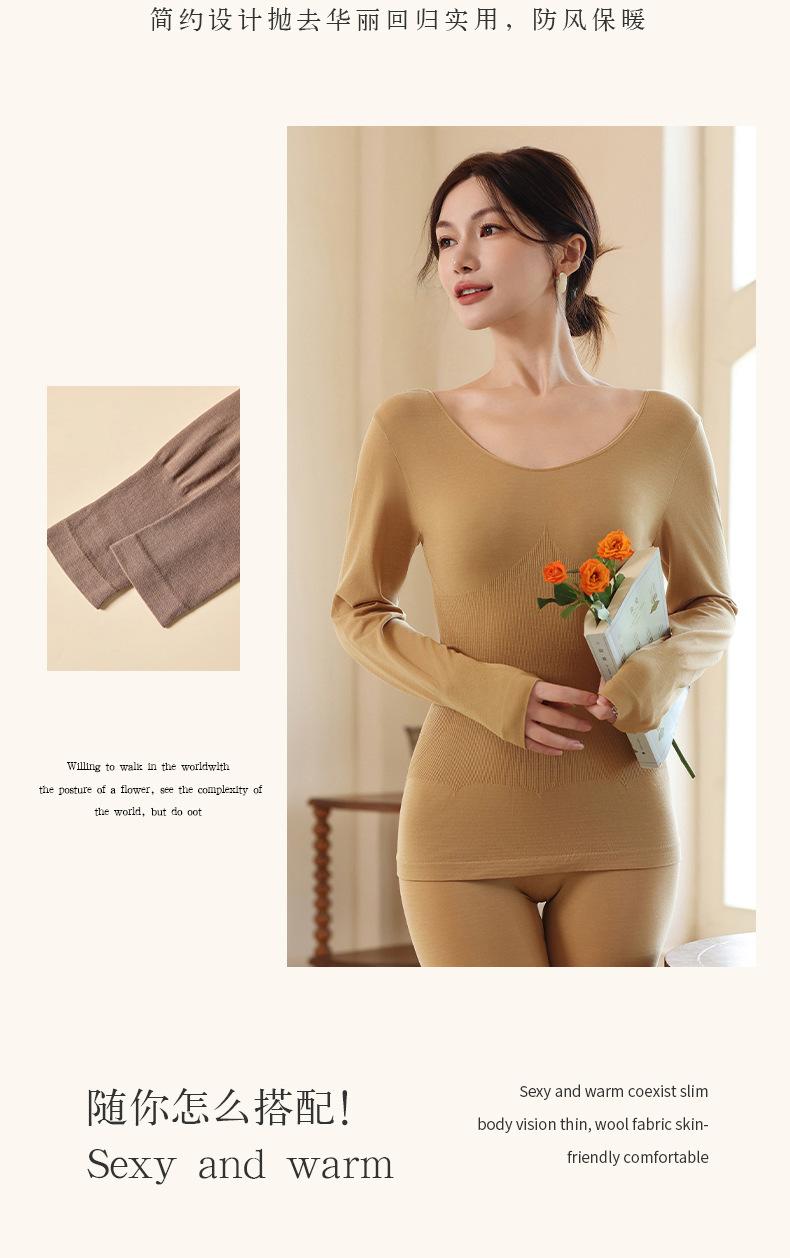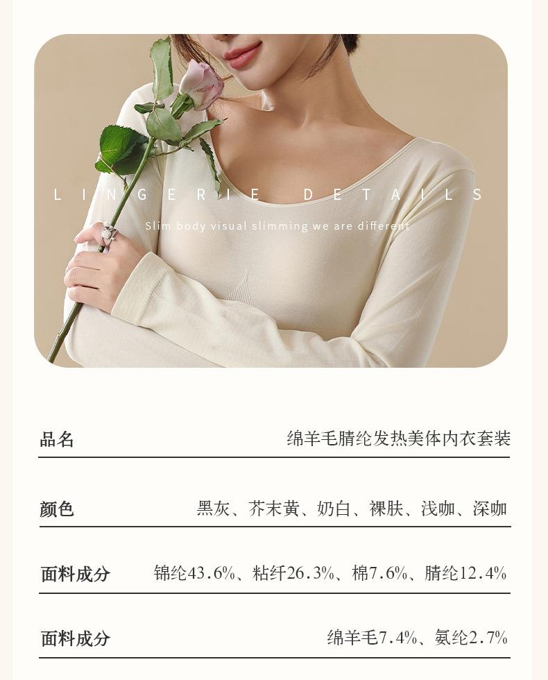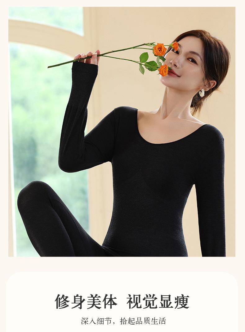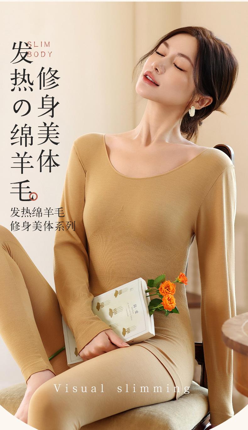 Ropa Interior Cálida para Mujer Moldeadora de Cintura Levanta Caderas Cuello Redondo Grande Ropa de Otoño Set de Pantalones de Otoño Lana Merino Generadora de Calor Ropa Interior Adelgazante Moldeador de Cuerpo