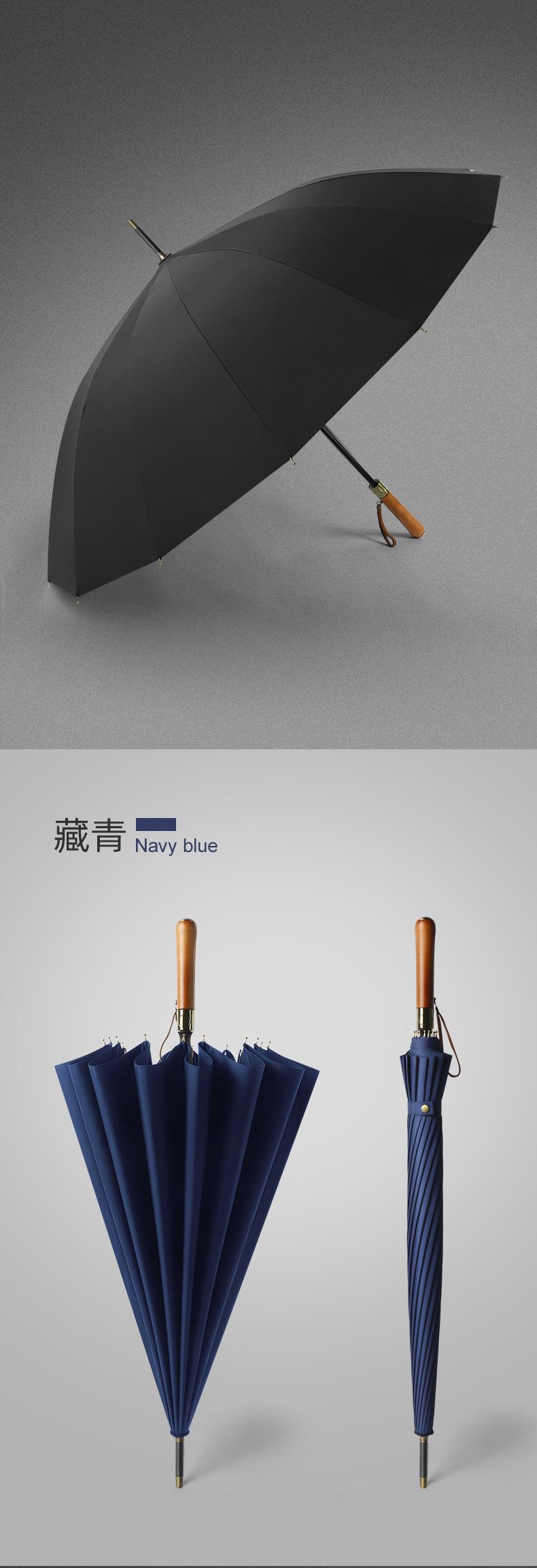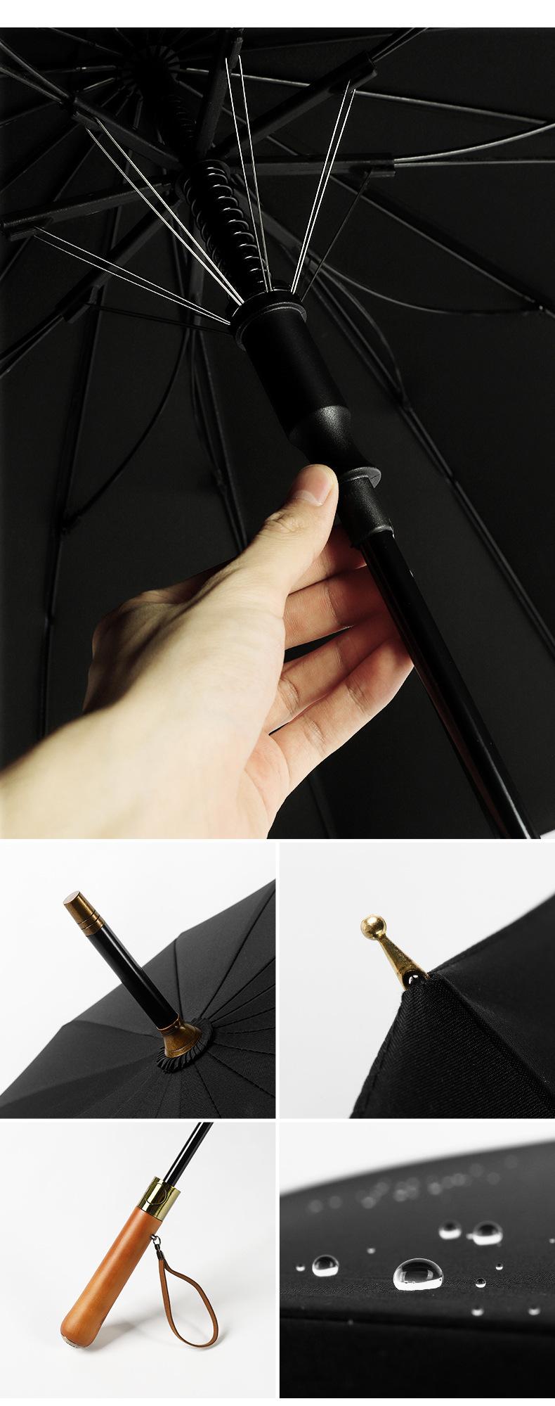 Paraguas Tamaño Doble Paraguas de Mango Largo para Hombre Resistente al Viento Paraguas Recto LOGO Imprimible Paraguas de 16 Varillas Mango de Madera Maciza Paraguas Publicitario