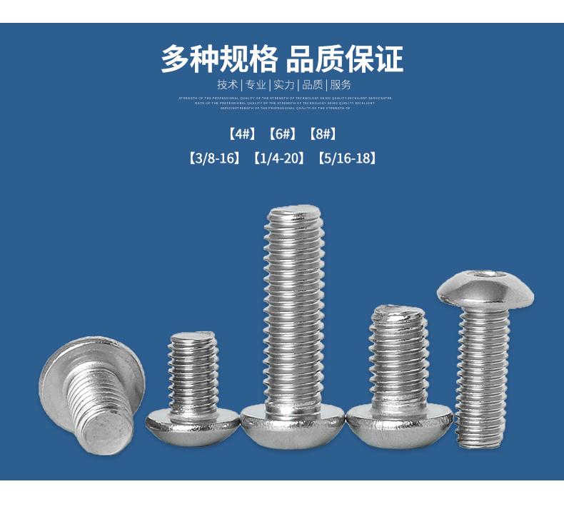 Tornillo de cabeza semirredonda con hexágono interior US 6#-32 dientes/Acero Inoxidable 304/Cabeza Plana Redonda con Hexágono Interior