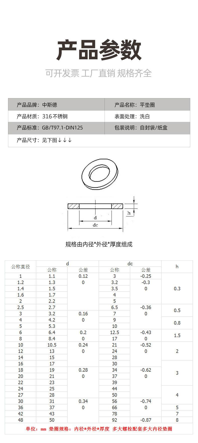 En stock DIN125/316 acero inoxidable arandela plana arandela plana antioxidante antiaflojamiento arandela de lámina de acero mesón M1.6-M36