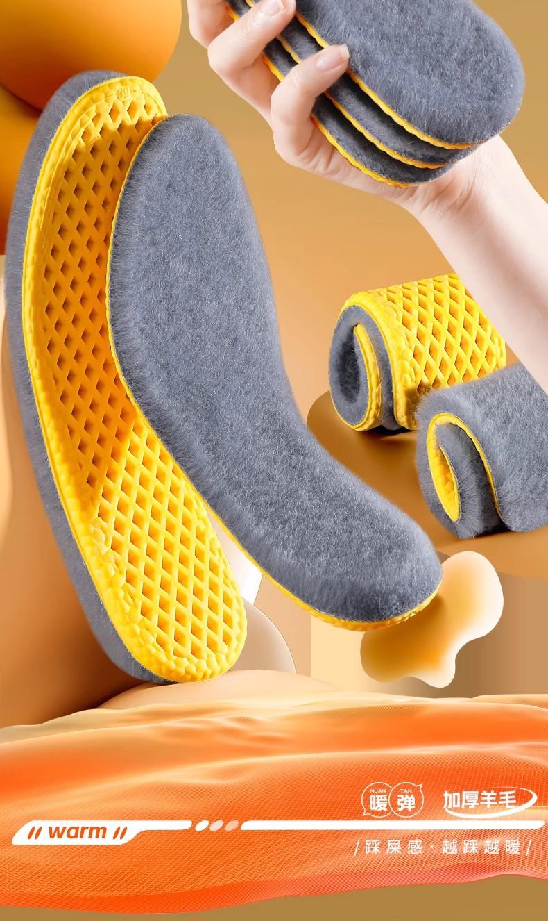 Plantillas de Lana Gruesa de Invierno Cálidas Absorbentes Resistentes al Olor Transpirables Antideslizantes Masaje Anti Pie de Atleta No Cansadas Después de Estar de Pie por Mucho Tiempo Venta al por Mayor