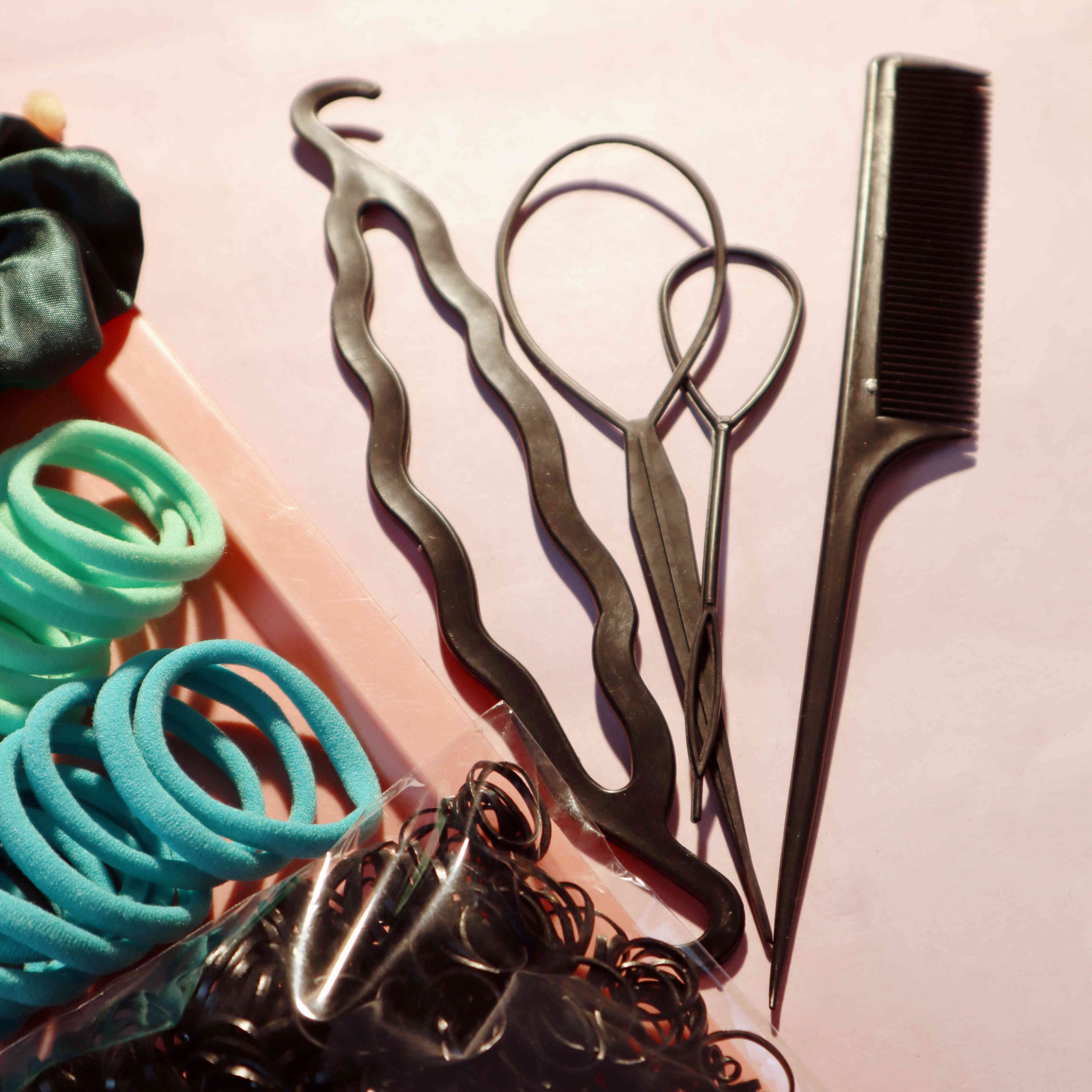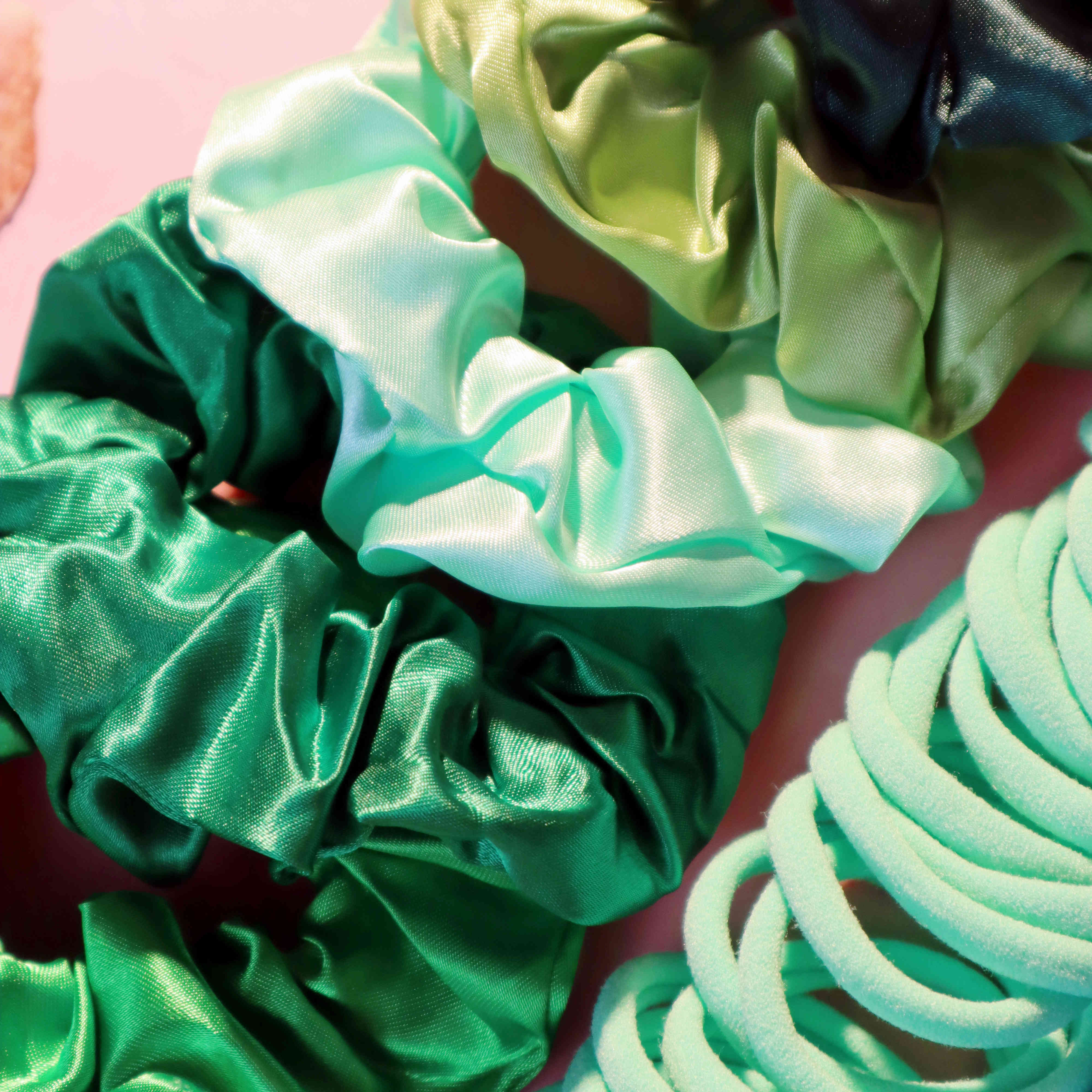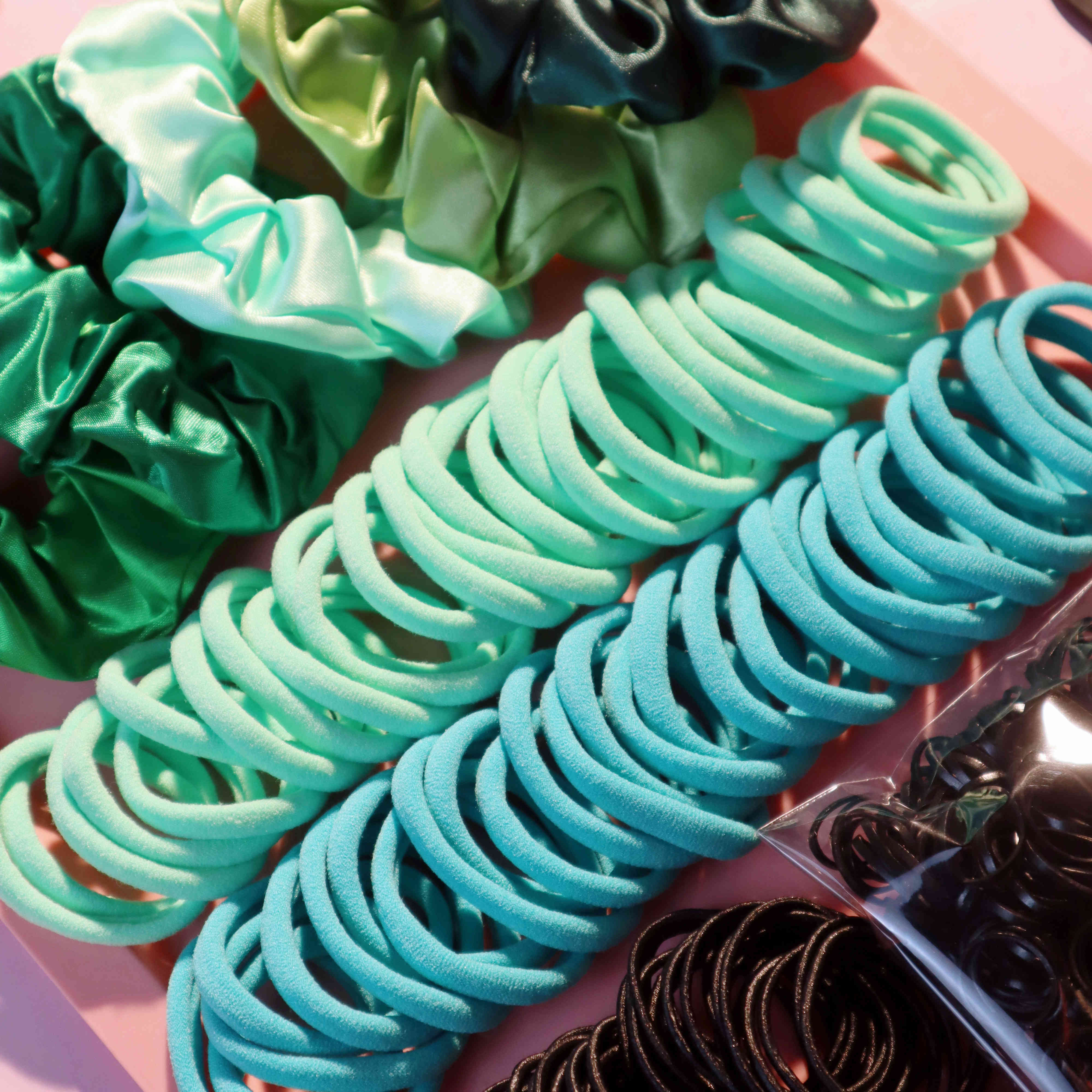 Ligas para coleta sin costuras Hechas con un diseño suave sin costuras para evitar tirones, enganches o dejar marcas en tu cabello. Proporcionan una sujeción confiable que funciona perfectamente para cabello grueso y rizado, manteniendo tu peinado en su lugar todo el día sin incomodidad. Variedad de Scrunchies para el Cabello Un divertido surtido de scrunchies en diferentes colores y texturas sutiles. Estos añaden un toque juguetón o chic a cualquier peinado mientras que su material elástico es suave con los mechones gruesos y rizados, previniendo la rotura. Ligas para el Cabello Duraderas Robustas pero flexibles, estas ligas para el cabello están hechas para soportar el volumen y la textura del cabello grueso y rizado. Resisten romperse y mantienen su elasticidad con el tiempo, lo que las hace excelentes para el uso diario. Ligas para el cabello tipo scrunchie Combinando la comodidad de los scrunchies con la sujeción de las ligas para el cabello, estos accesorios son ideales para asegurar el cabello más grueso sin causar tensión ni daño.