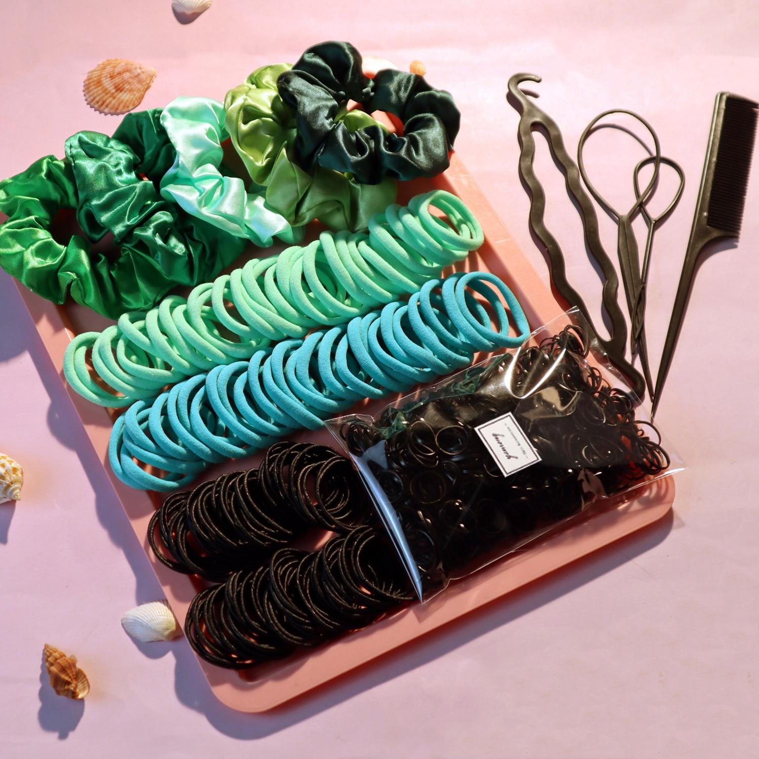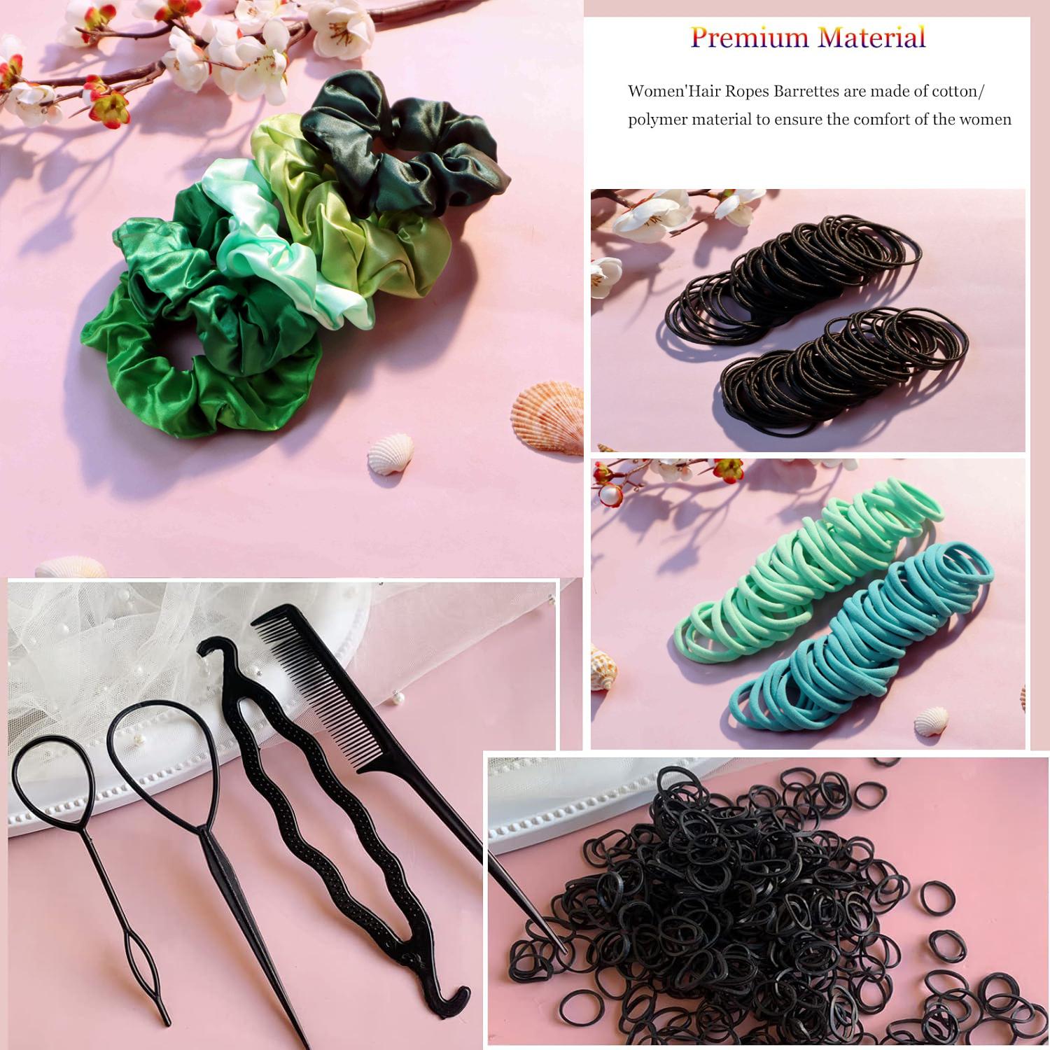 Set de Accesorios para el Cabello de Mujer: 755 Piezas Ligas de Cola de Caballo Sin Costuras, Scrunchies Variados, Bandas y Ligas para Cabello Grueso y Rizado (Verde)