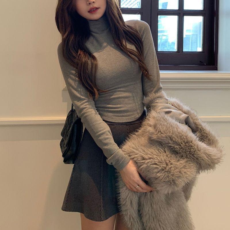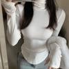 Camiseta de cuello semialto con manga larga para mujer, elegante y a la moda, nueva camiseta ajustada sexy de primavera y otoño de 2024.