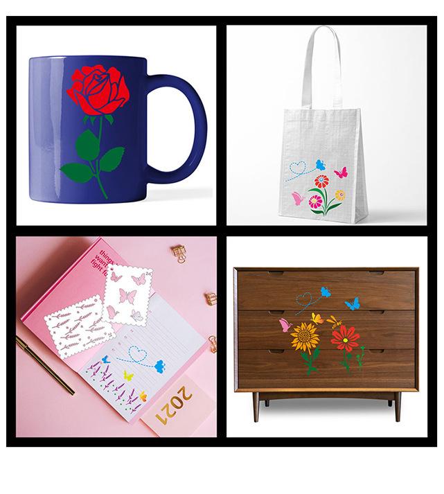 Plantilla de Pintura de Flores de Plantas Transfronterizas Herramienta de Impresión Pintada a Mano para Niños Libro de Mano DIY Molde Recortado para Pintura en Aerosol de Encaje