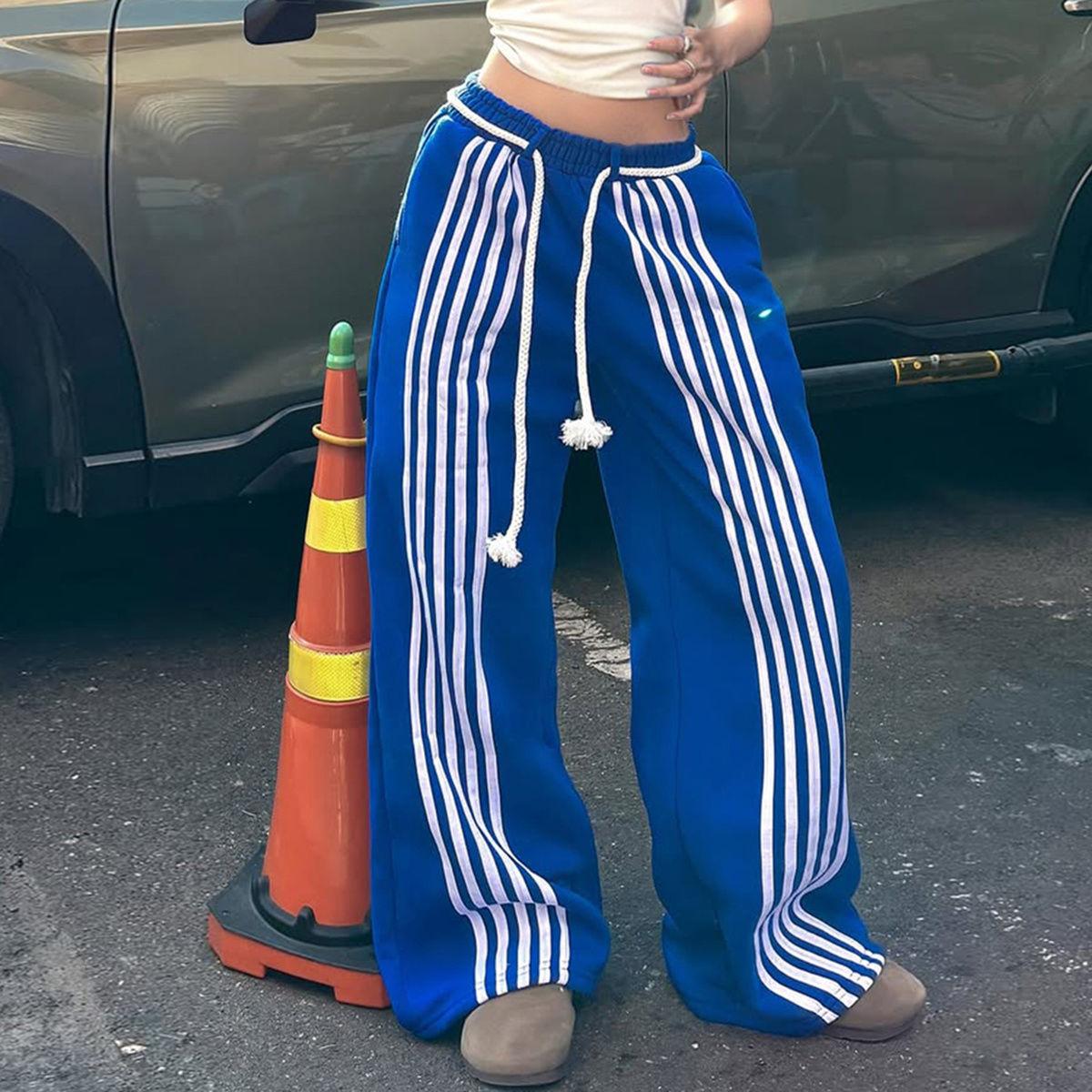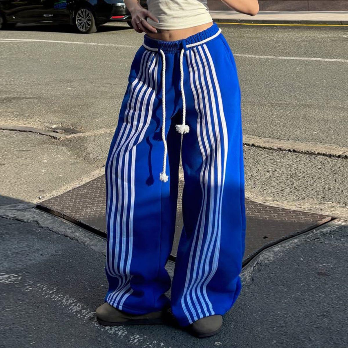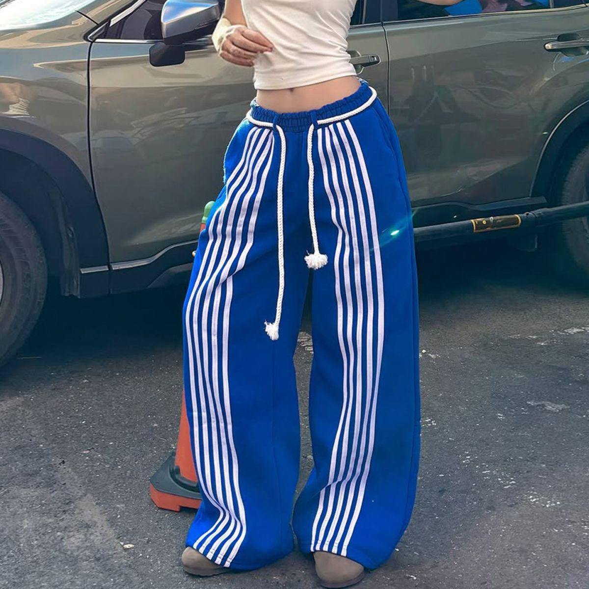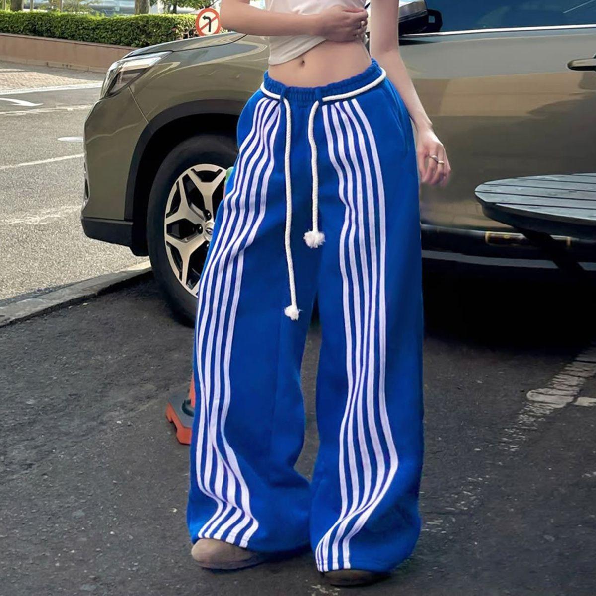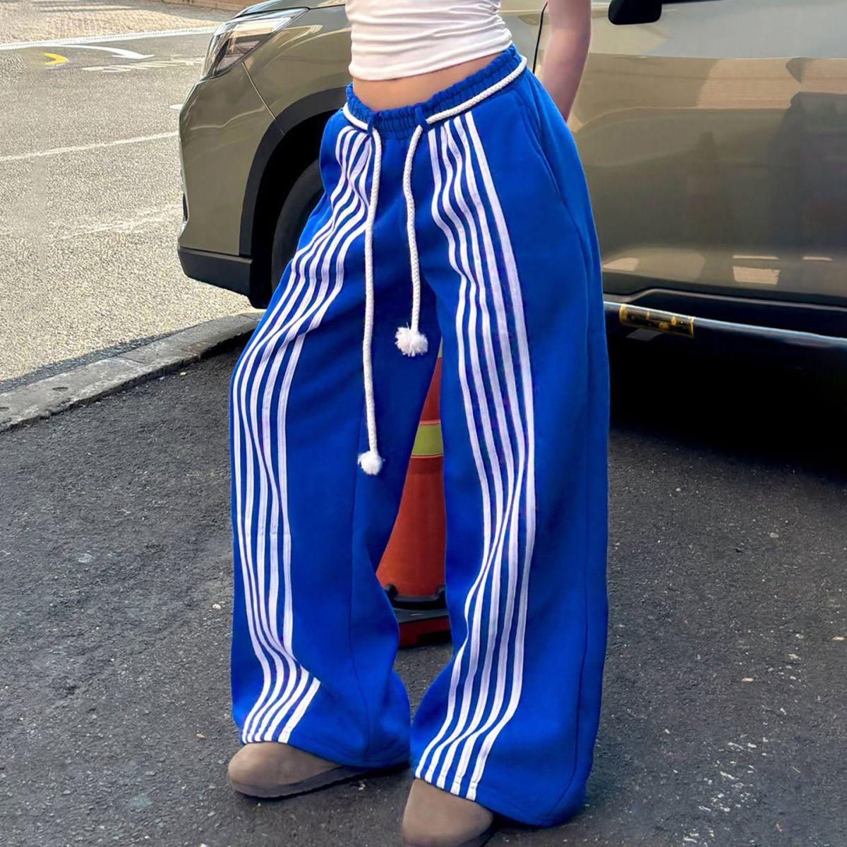 Pantalones deportivos europeos y americanos de calle casual americano a rayas contrastantes con cordón, holgados y adelgazantes para bailar, para chica hot deportiva