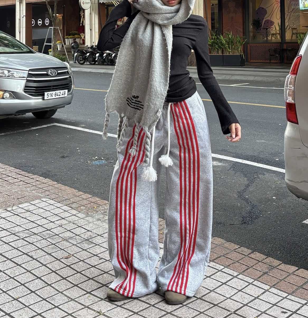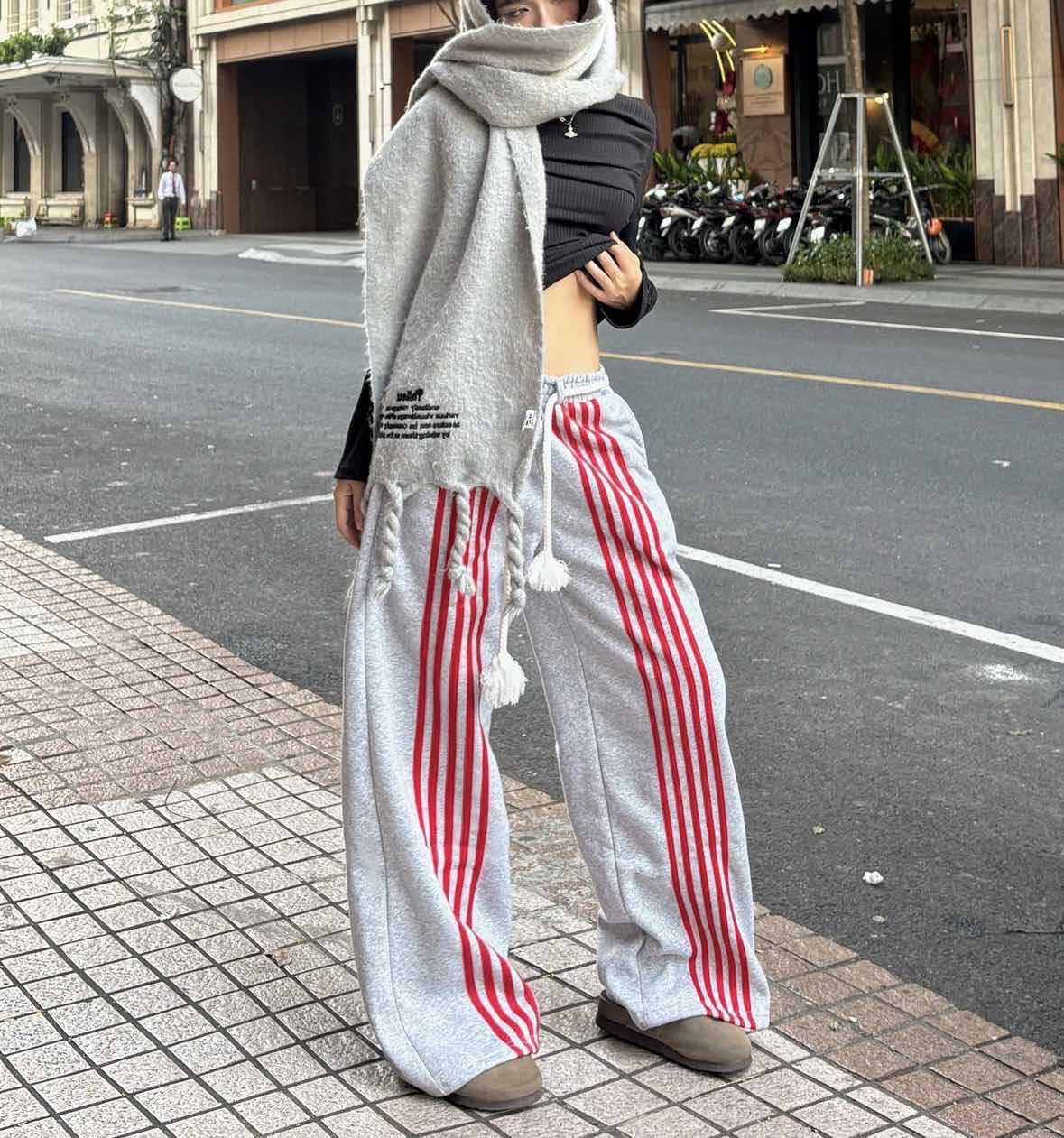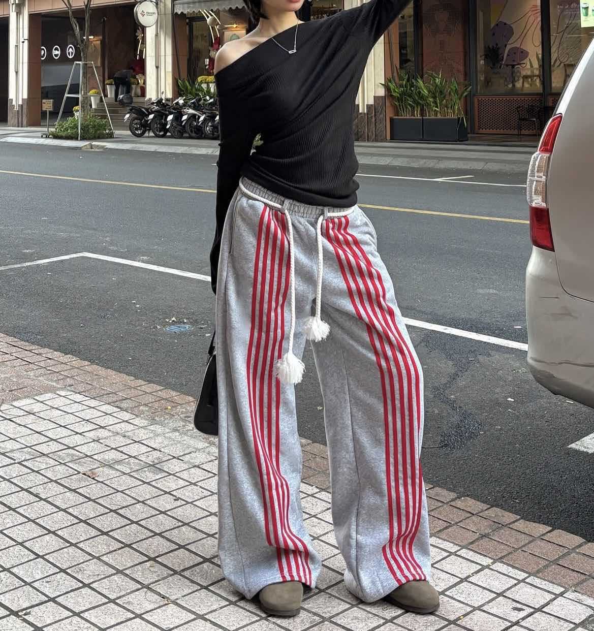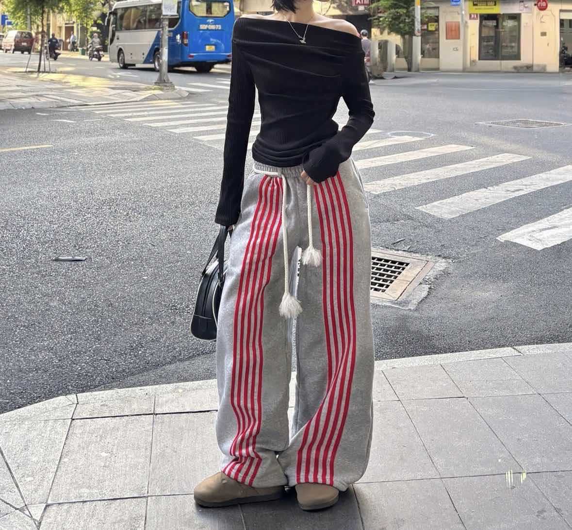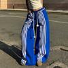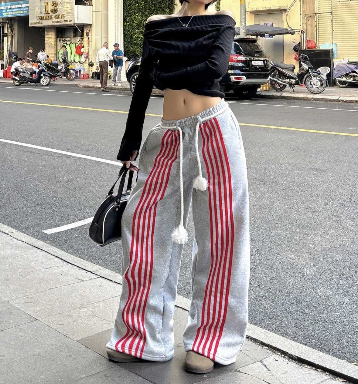 Pantalones deportivos europeos y americanos de calle casual americano a rayas contrastantes con cordón, holgados y adelgazantes para bailar, para chica hot deportiva