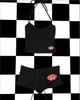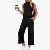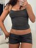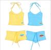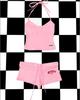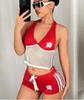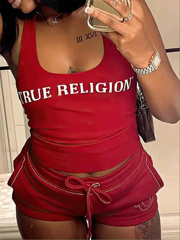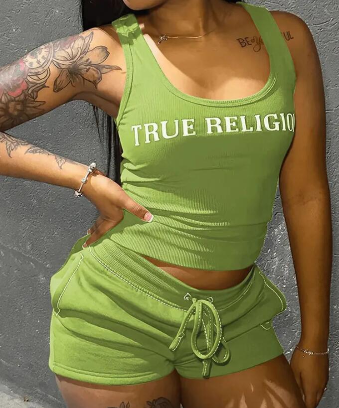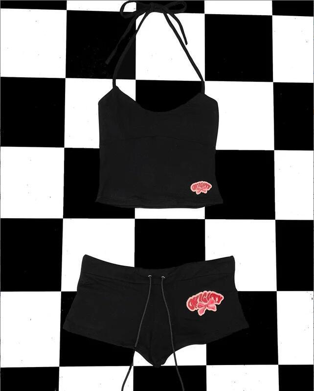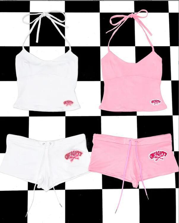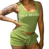 Verano Europeo y Americano Transfronterizo Nuevo Moda para Mujer Estampado de Letras Bolsillo Patchwork Chaleco de Punto Conjunto de Dos Piezas