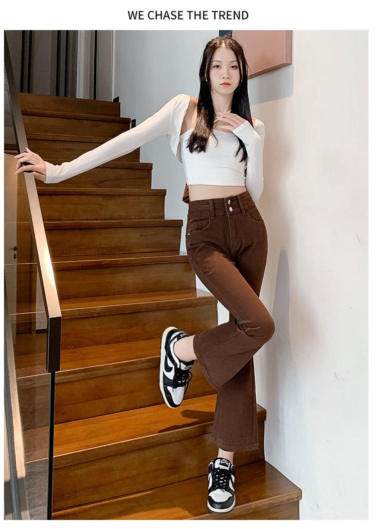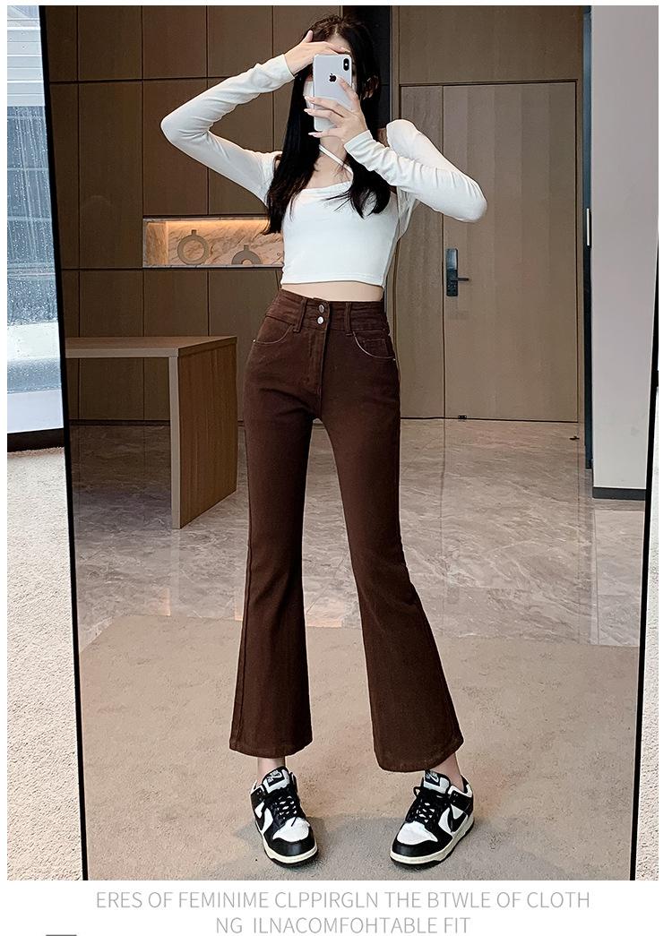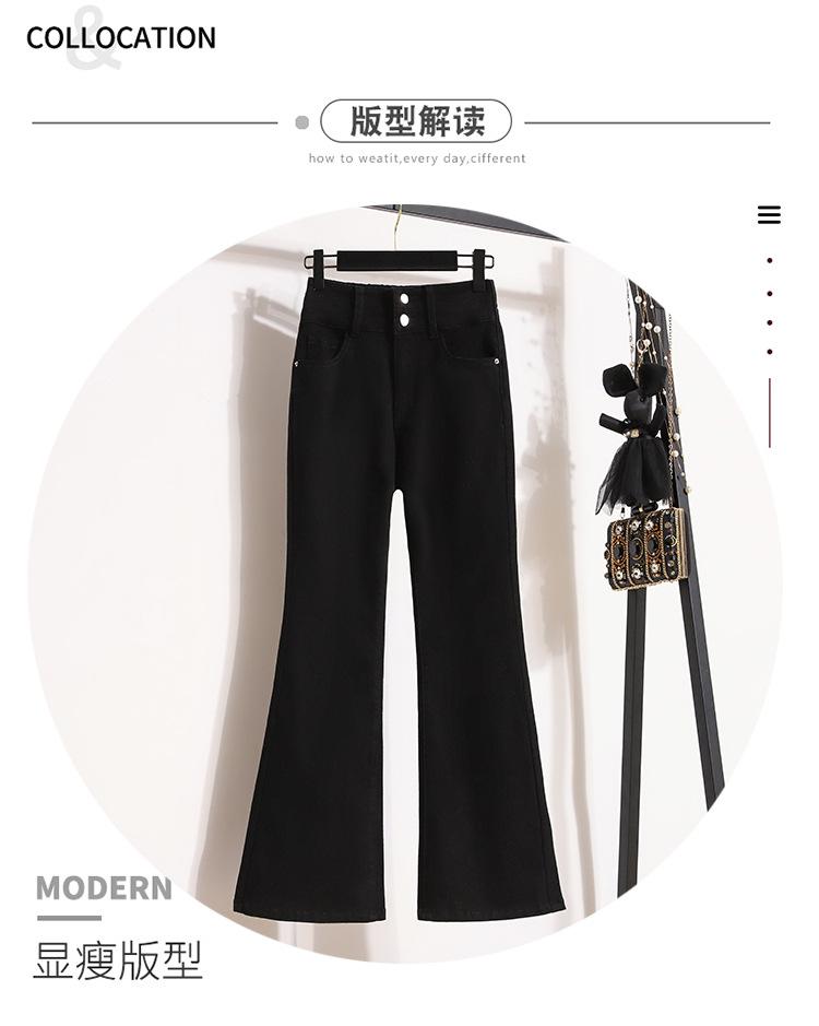 Cuerpo Gordito en Forma de Pera Pantalones Acampanados para Mujer Principios de Otoño Talla Grande Chica Gordita Cintura Alta Stretch Mezclilla Micro Pantalones de Herradura Algodón