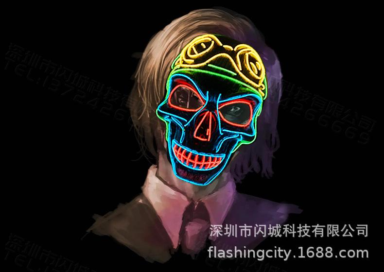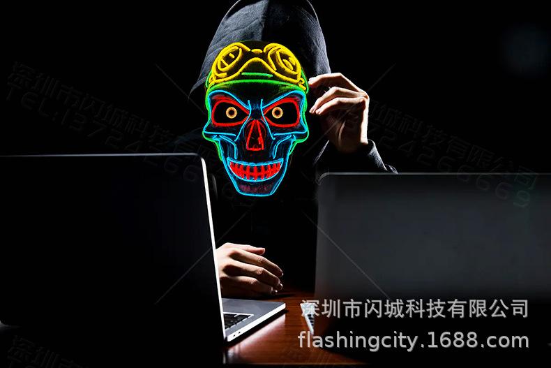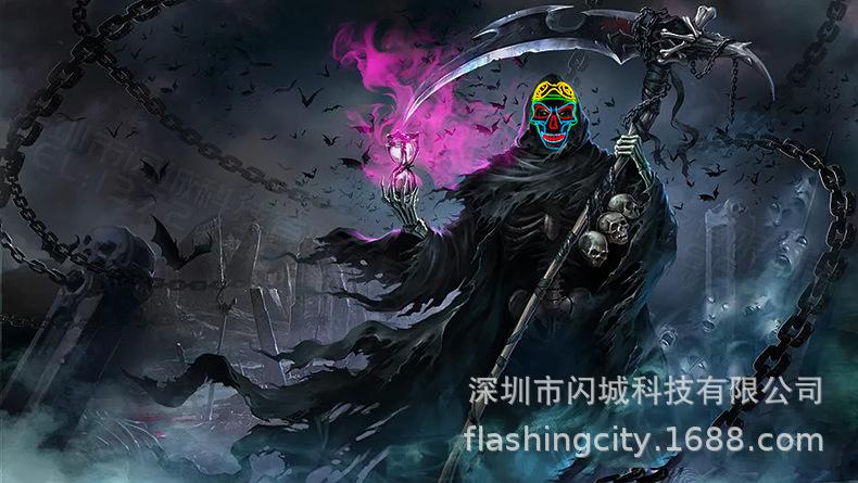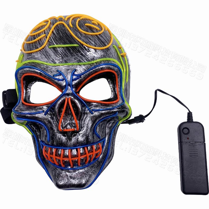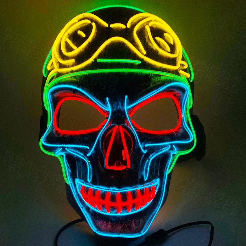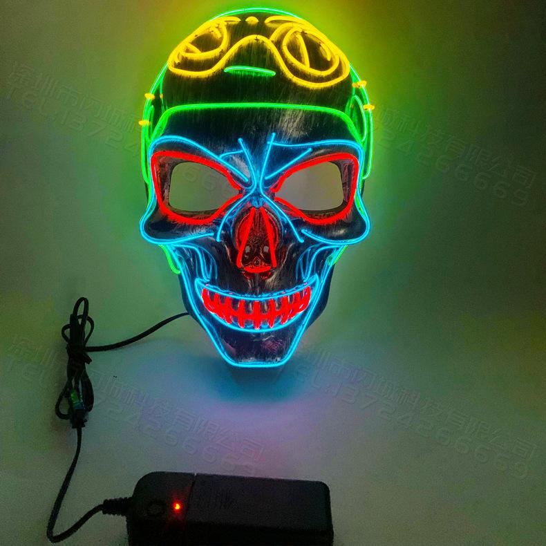 Máscara de calavera luminosa LED de fábrica para Halloween, horror, atmósfera fluorescente, suministros de calavera de fantasma, accesorios