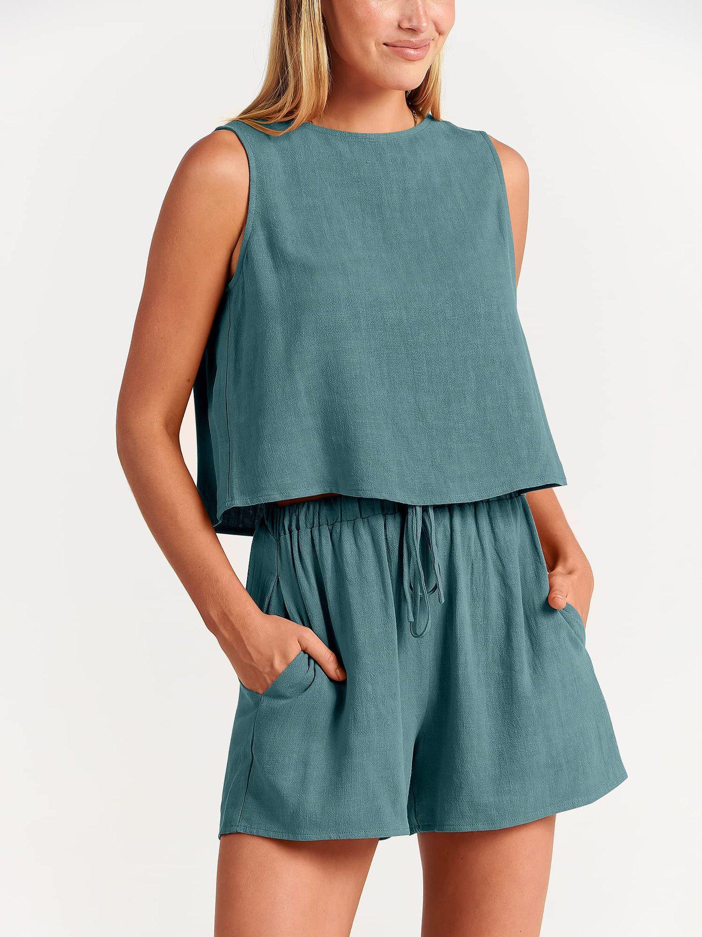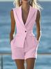 2025 Europa y Estados Unidos transfronterizo nuevo traje de chaqueta para mujer chaleco sin mangas moda slim shorts pantalón de dos piezas mujer