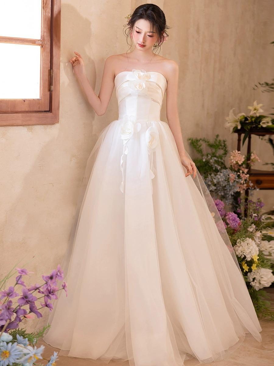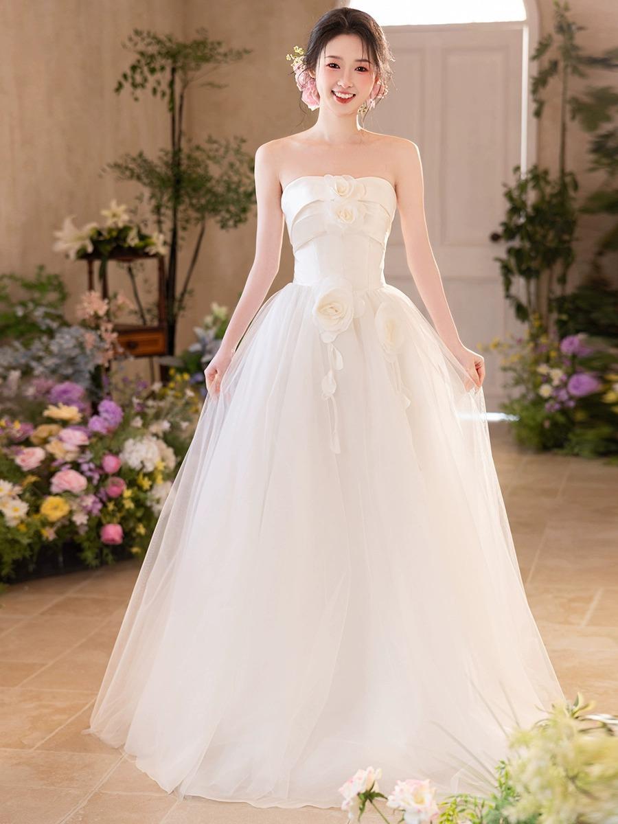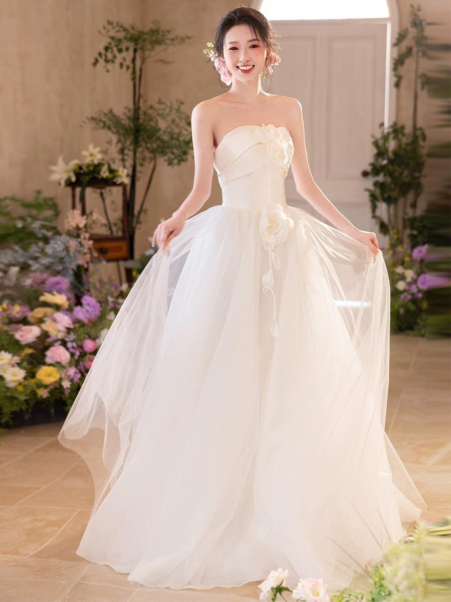 Vestido de Novia Francés Nueva Luz Blanco Strapless Vestido Novia Boda Compromiso Licencia Vestido de Malla vestido