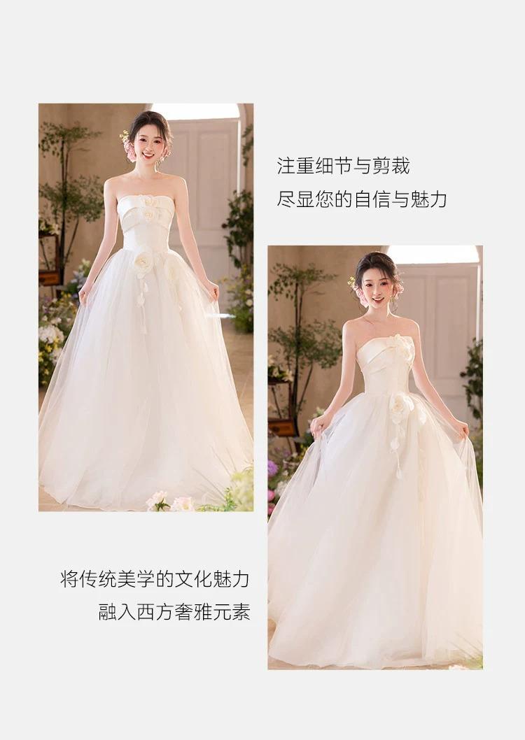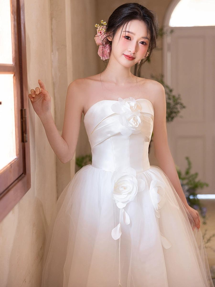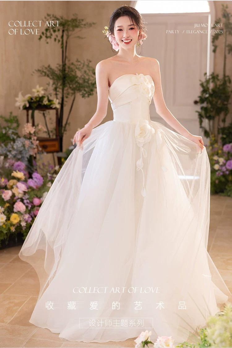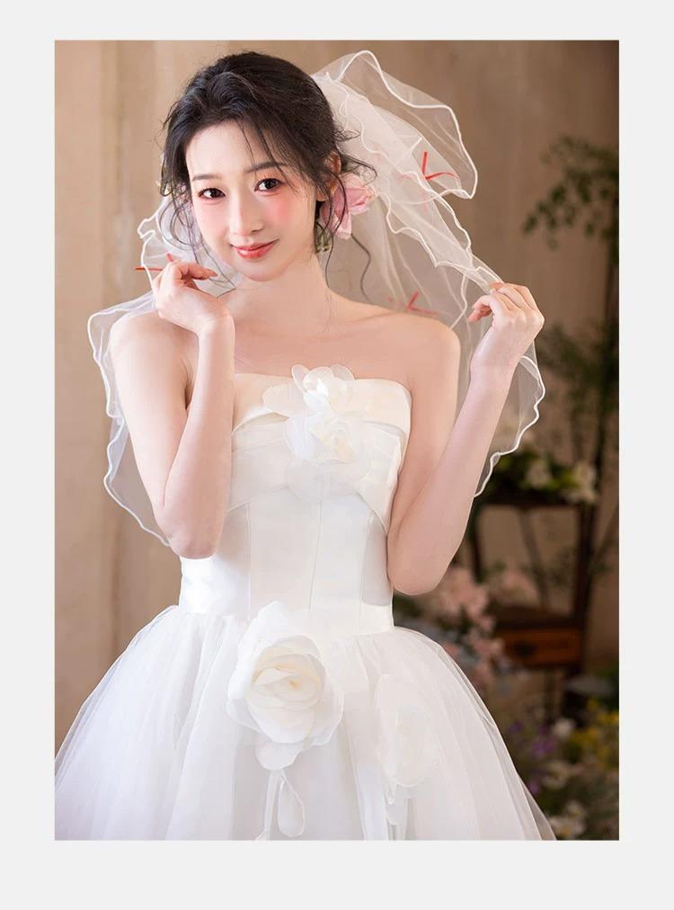 Vestido de Novia Francés Nueva Luz Blanco Strapless Vestido Novia Boda Compromiso Licencia Vestido de Malla vestido