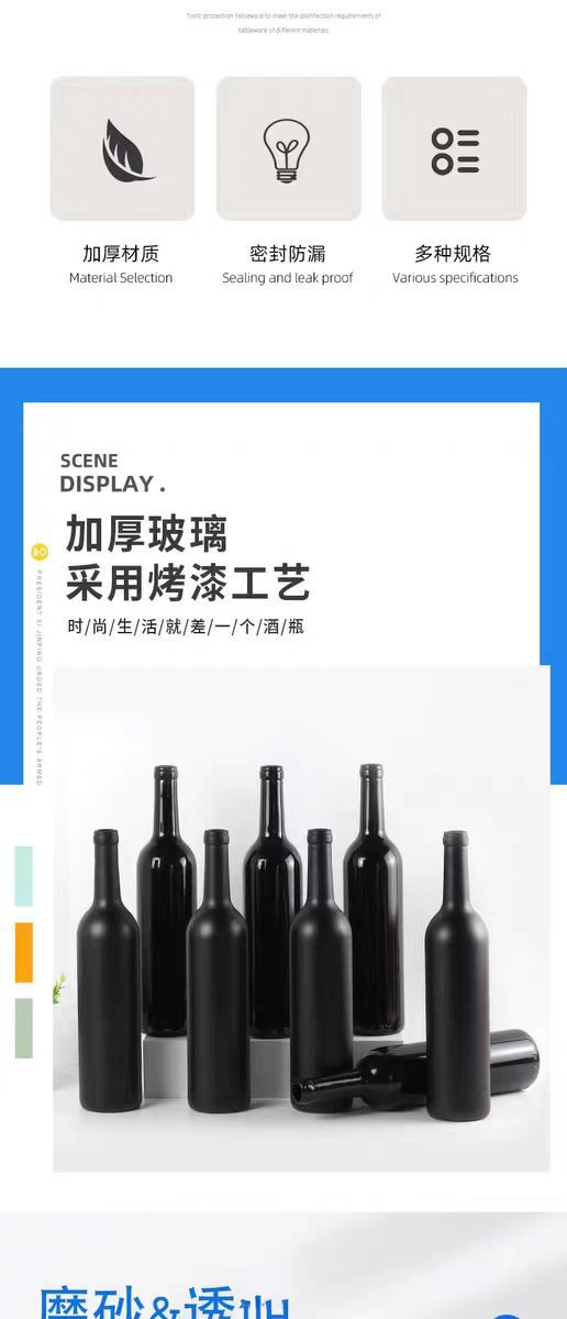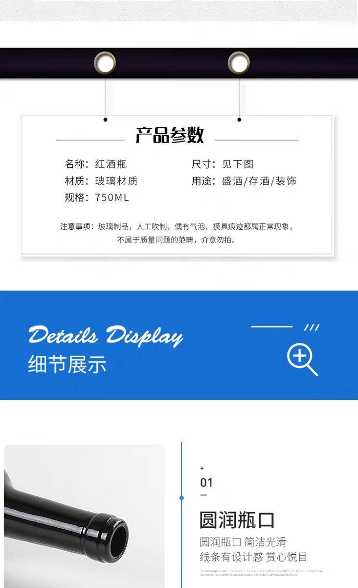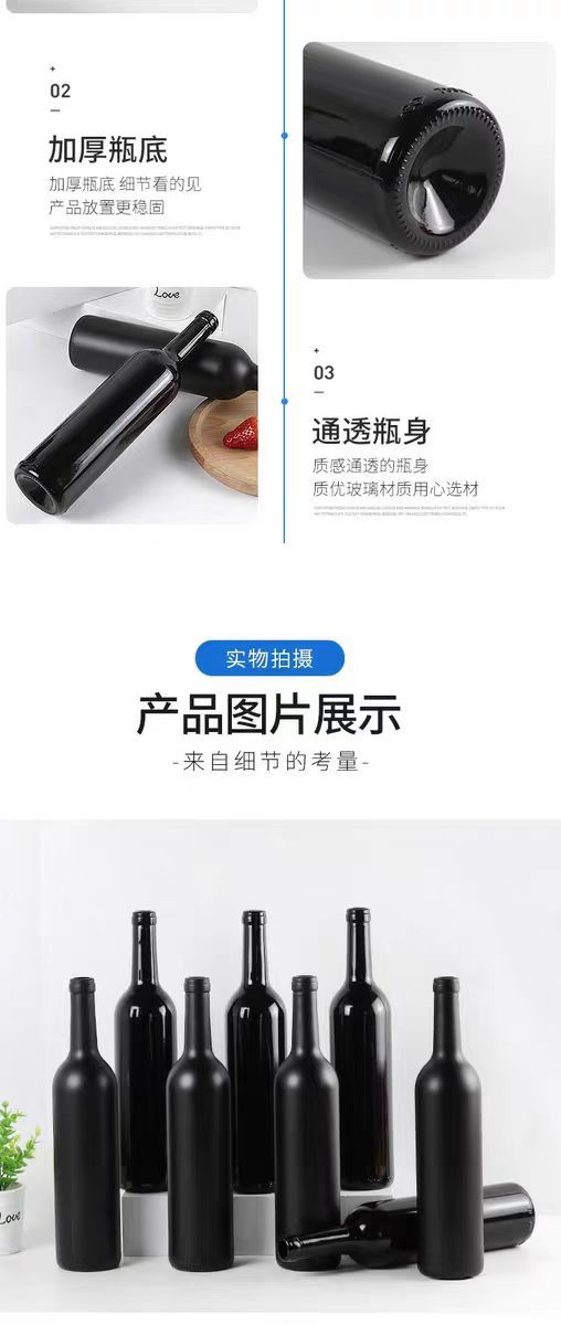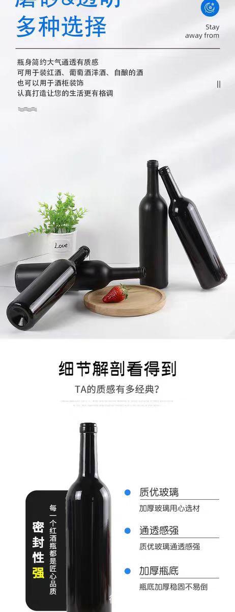 Botella de Vidrio Personalizada de 750 ml Botella de Vino Tinto Botella Vacía Botella de Vino Decoración Botella de Vidrio Botella de Vino de Frutas Juego de Vino de Alta Gama