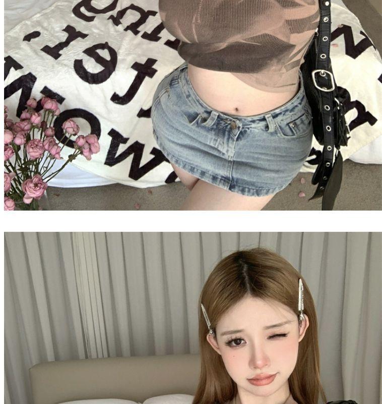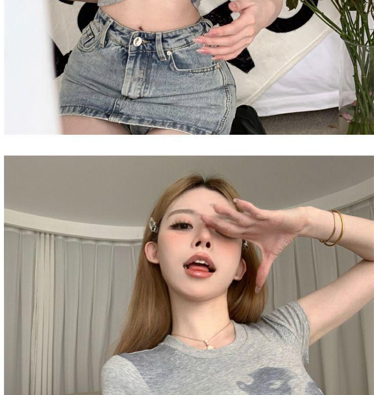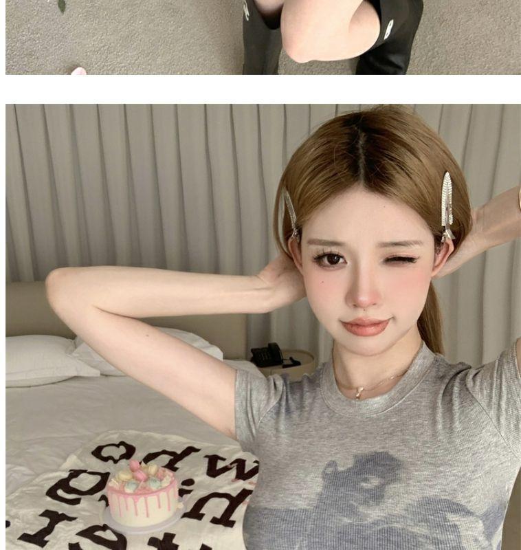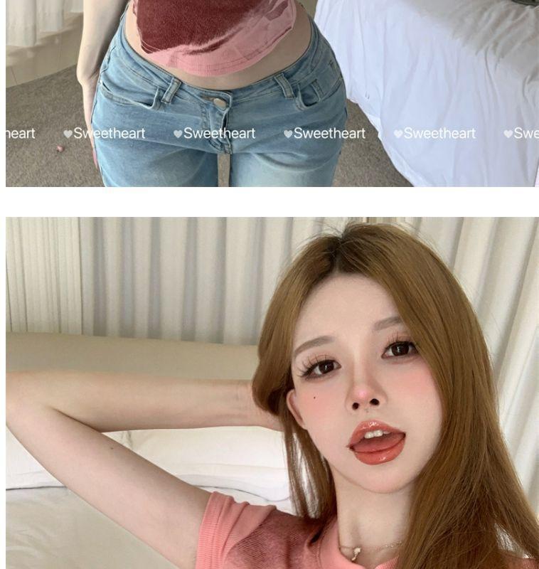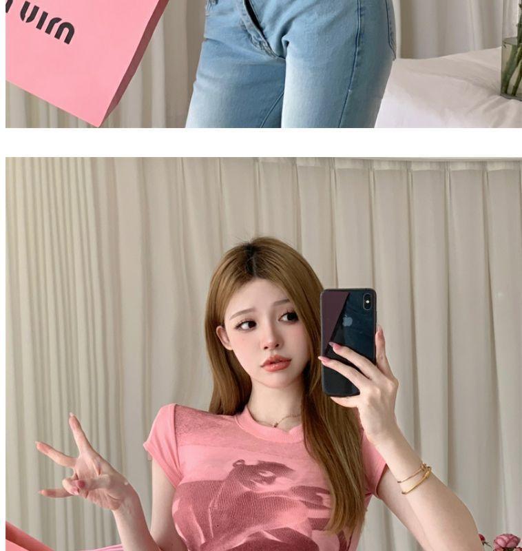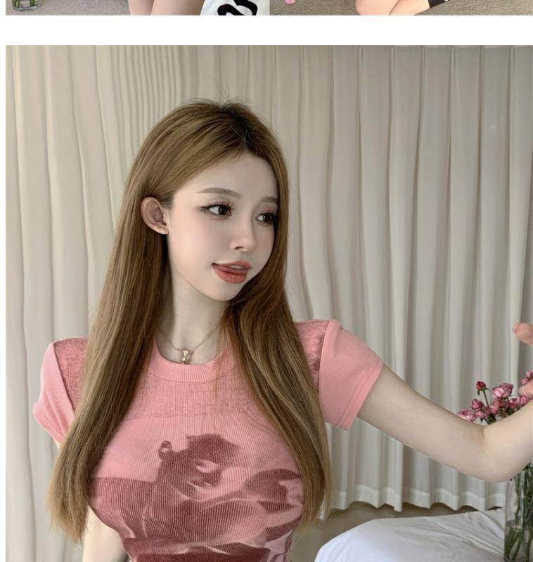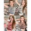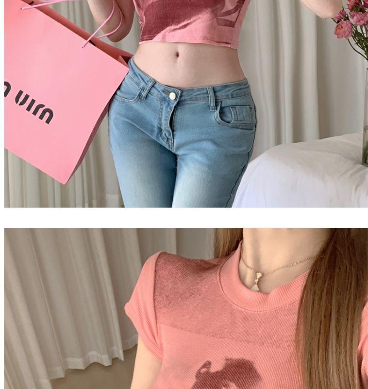 Camiseta de Hombro de Manga Corta para Chica Caliente Estilo Americano Verano 2024 Nuevo Top Corto Ajustado con Estampado Tie-dye Vintage
