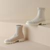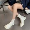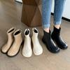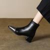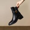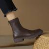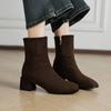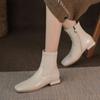 Botas de moda para mujer de otoño e invierno de punta redonda, tacón medio, talla grande, cremallera trasera, tacón cuadrado, cómodas, suela gruesa, botas de media caña para mujer
