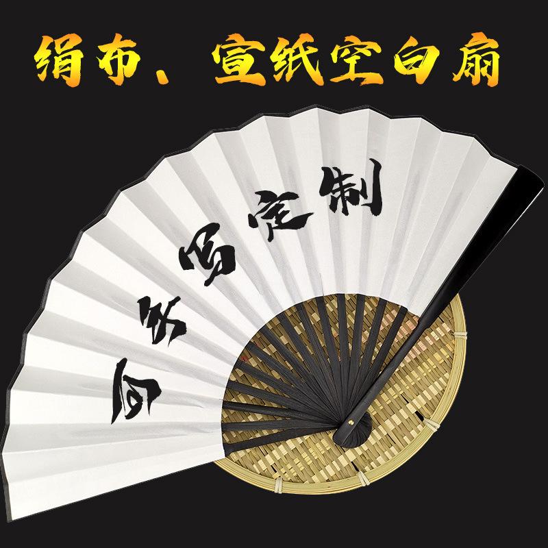 Accesorios de Boda Abanico Plegable en Blanco de 10 pulgadas Cara Blanca Inscripción Escrita a Mano Abanico Plegable de Papel Xuan Abanico para Hombre en Blanco con Motas Doradas Venta al por Mayor