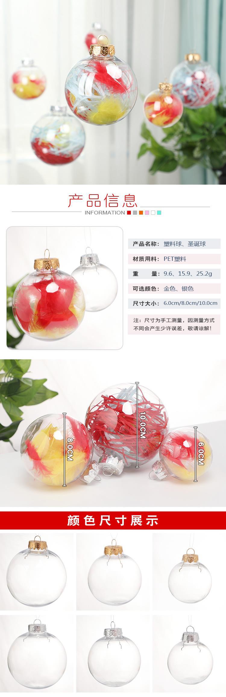 Decoración Navideña Bola Navideña de Plástico Transparente PET Bola de Plástico Hueca Sin Costuras Creativa Bola Redonda Adorno para Colgar