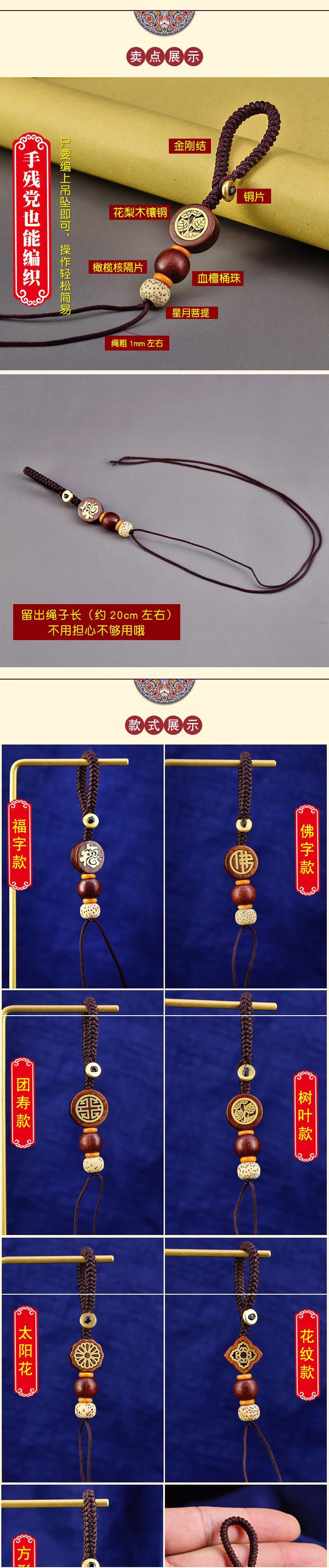 Palo de rosa con incrustaciones de latón Tejido a mano Semiacabado DIY Tejido Llavero Colgante Cordón Cadena para Teléfono Móvil