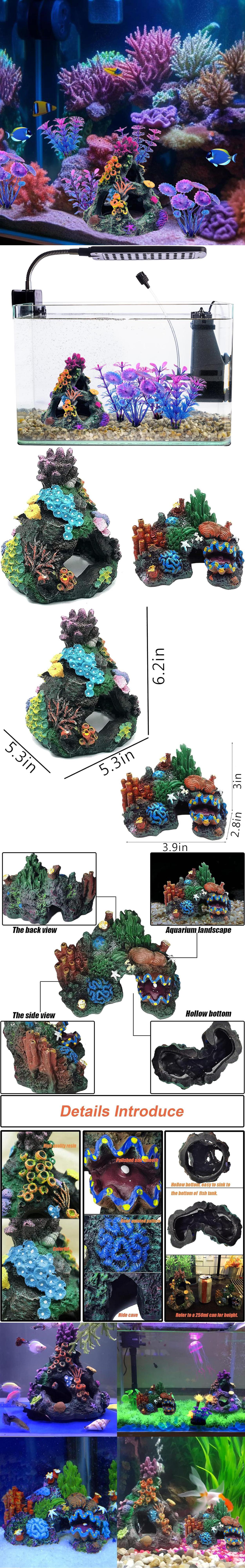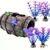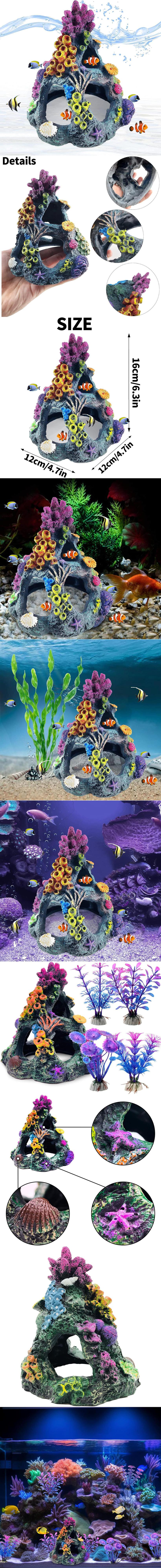 Set de Decoración para Paisajismo de Acuario Pecera Isla de Coral Caracola Concha Barril Rocalla Resina Simulación Plantas Acuáticas Montaña de Coral