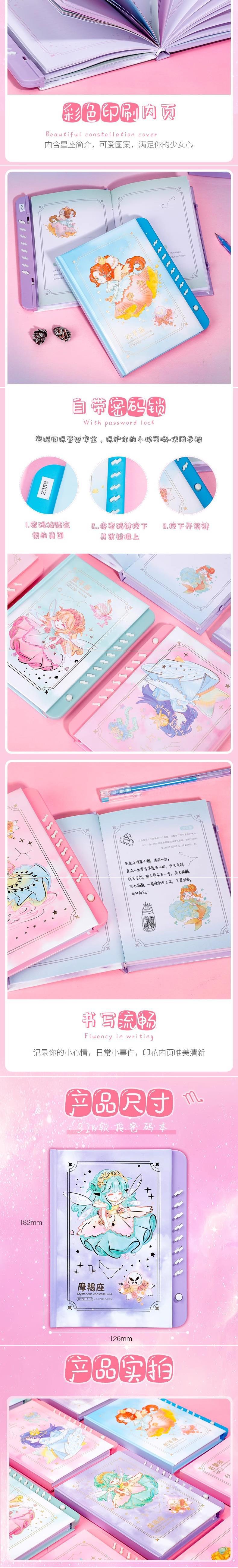 Libreta Creativa de Contraseña de las Doce Constelaciones Lindo Diario Bloqueable de Corazón de Niña Páginas a Color Regalo de Estudiante de Alto Valor