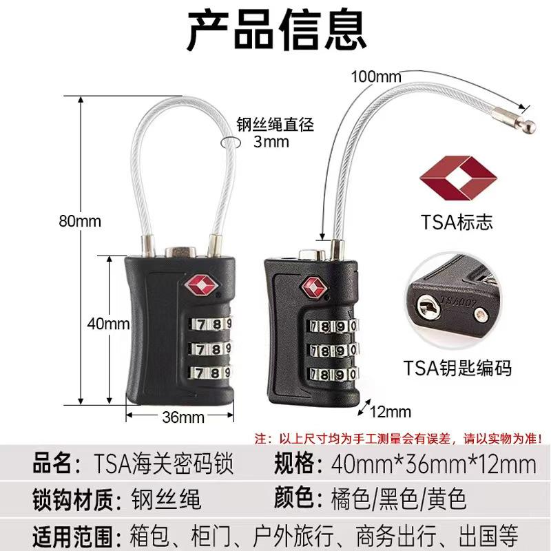 Candado Aduanero Maleta Bolsa Taquilla Gimnasio Bloque de Color Cable de Acero Candado de Combinación Código Aduanero TSA