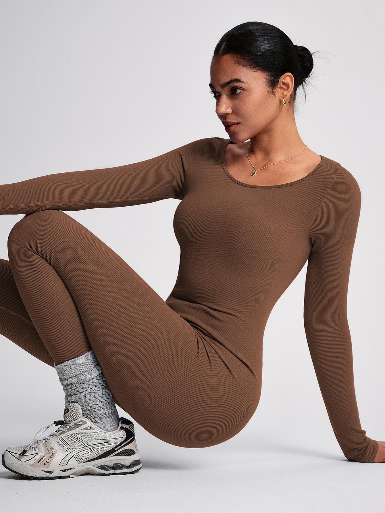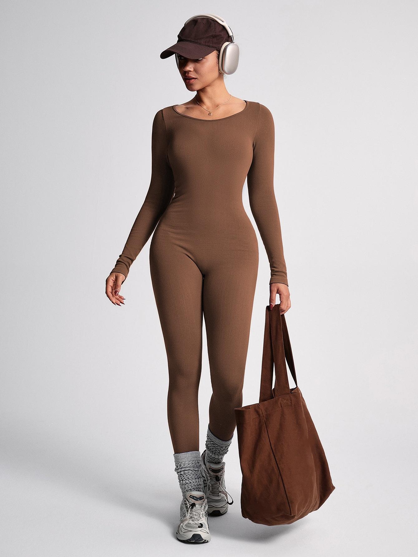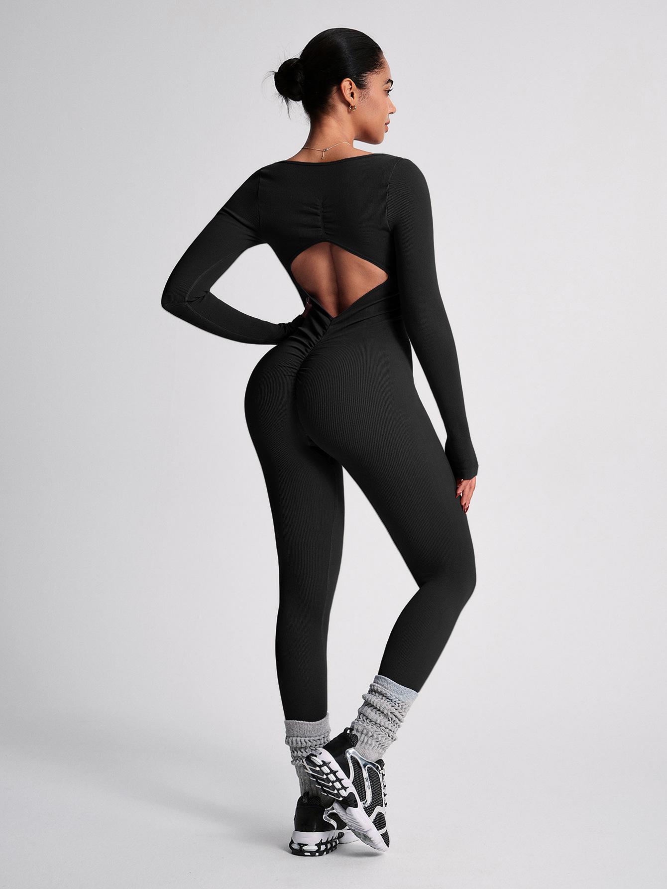 Traje de fitness de una pieza sin espalda levanta glúteos mono para correr pantalones largos sin copas en el pecho entrenamiento corporal deportivo traje de yoga sin costuras