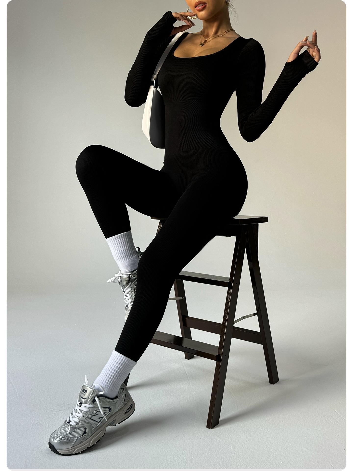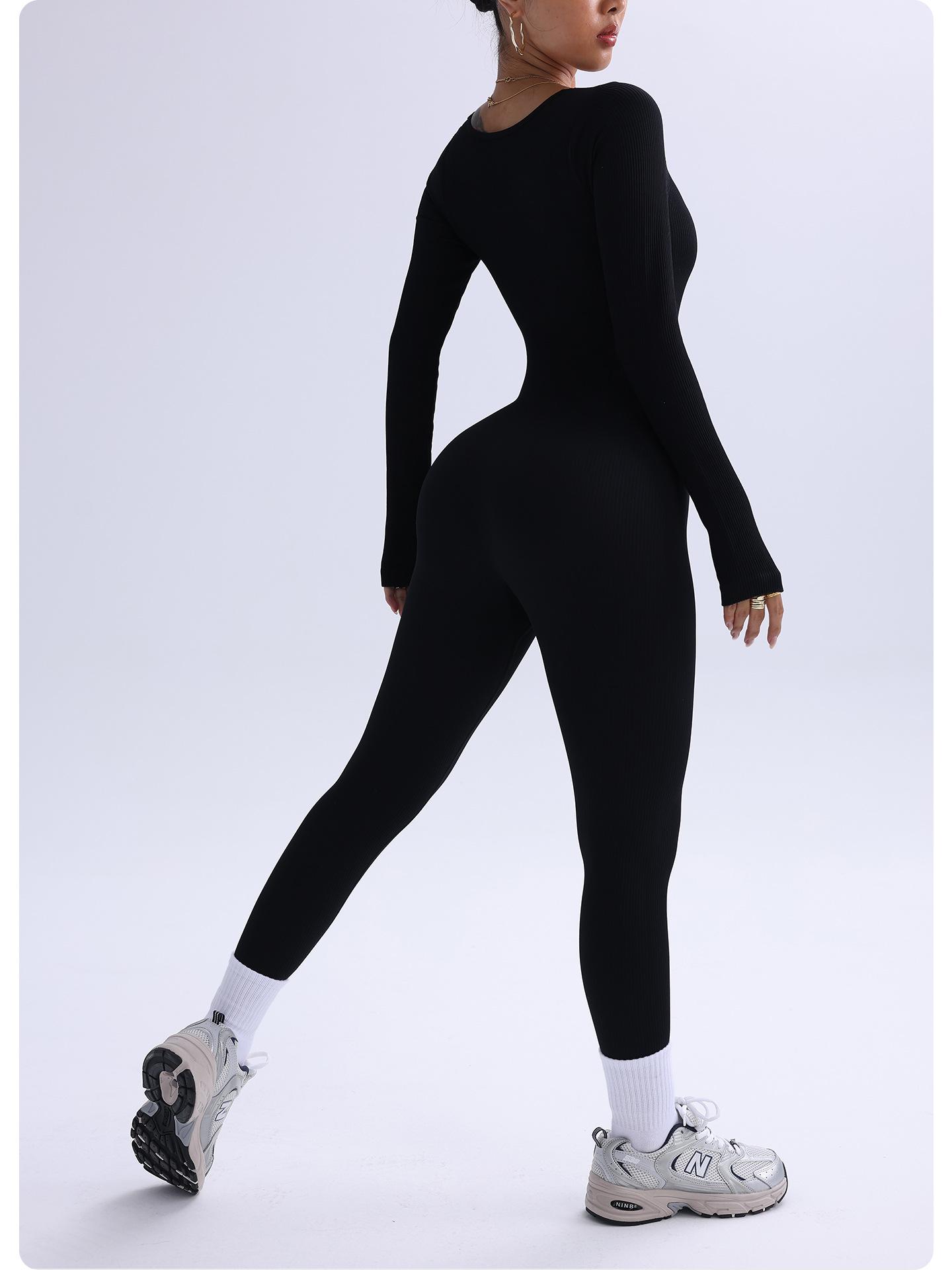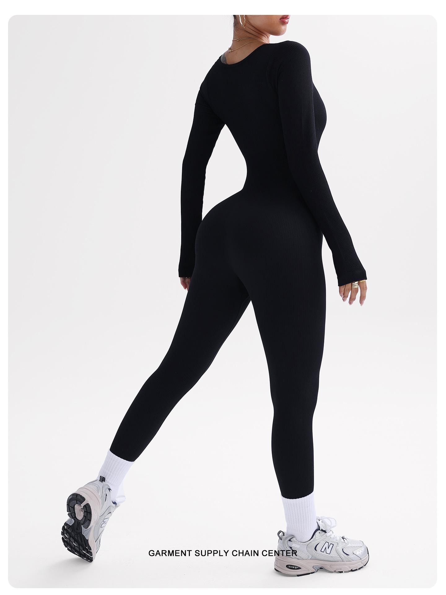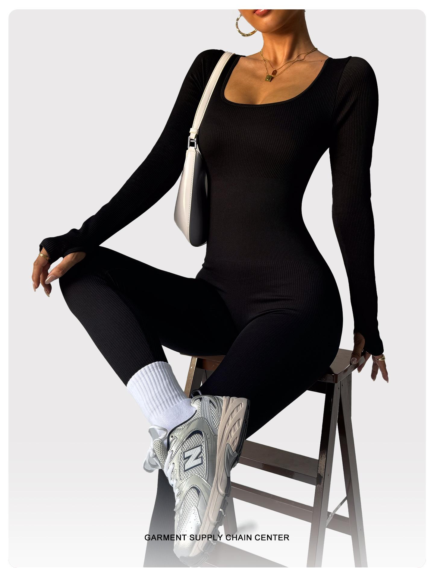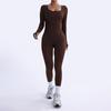 Mono Deportivo Todo en Uno Europeo y Americano Transfronterizo para Yoga, Pantalones de Manga Larga, Ajustado de Secado Rápido, Traje de Yoga de Una Pieza para Fitness