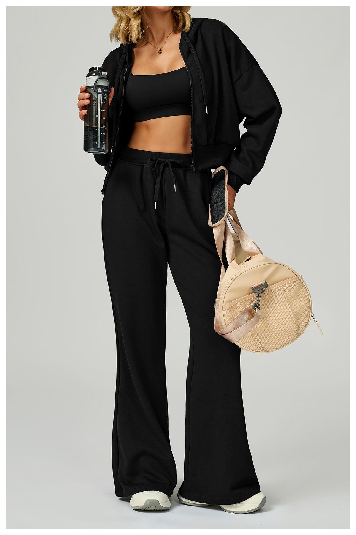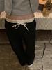 Pantalones Deportivos Europeos y Americanos Transfronterizos de Cintura Alta y Corte Holgado con Bolsillos con Cordón de Ajuste Pierna Recta Casual Pantalones Largos Ropa Deportiva Versátil Mujer 2030