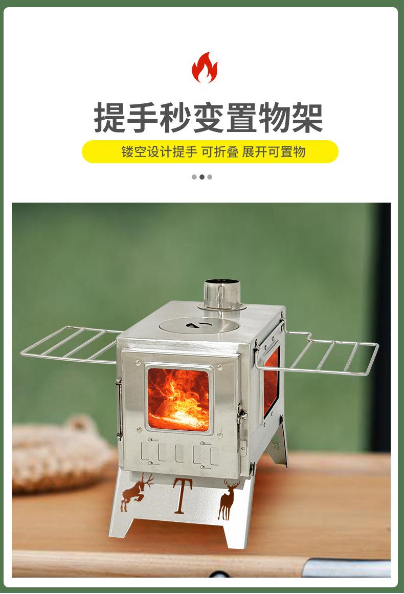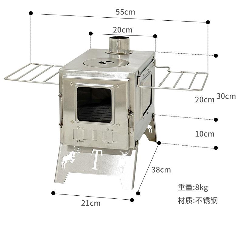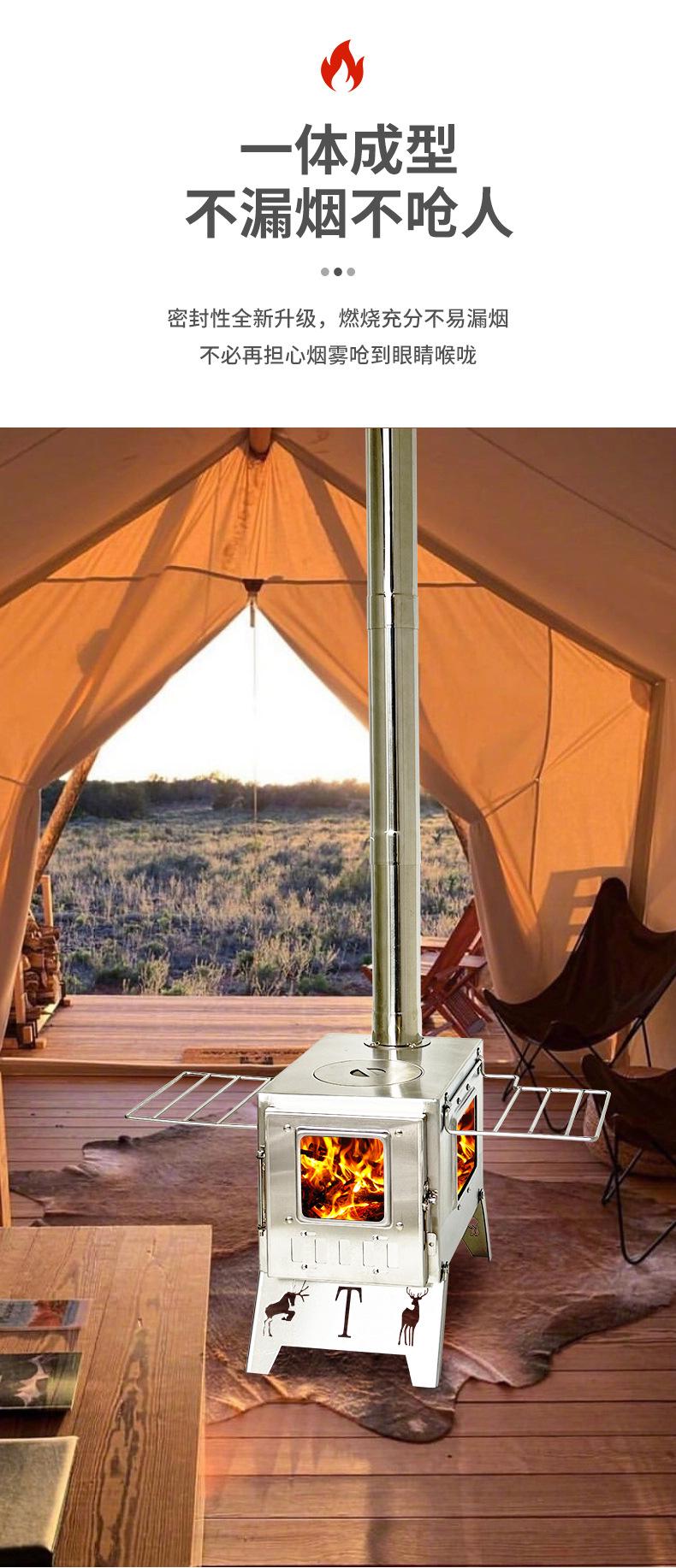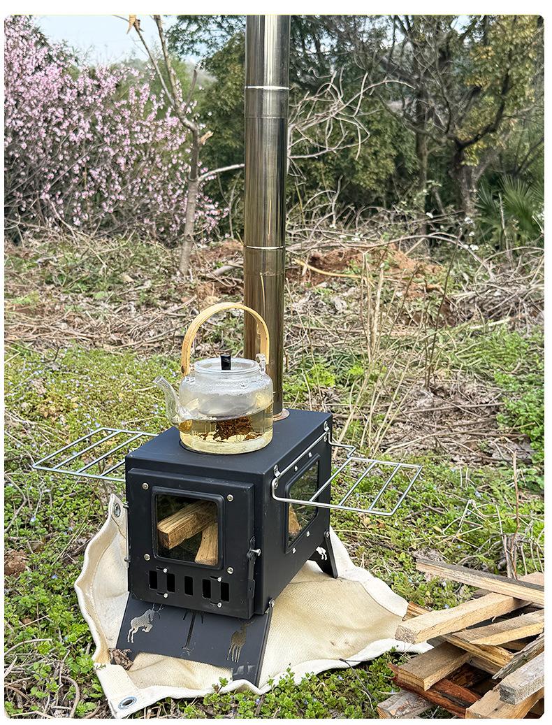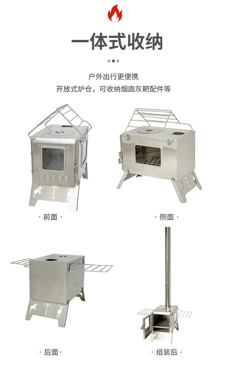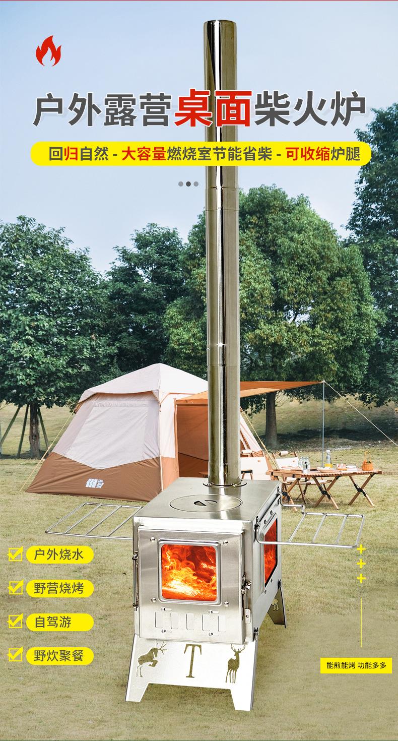 Estufa de leña para exteriores de acero inoxidable integrada para acampar, calefacción para tienda de campaña, suministro de estufa de leña