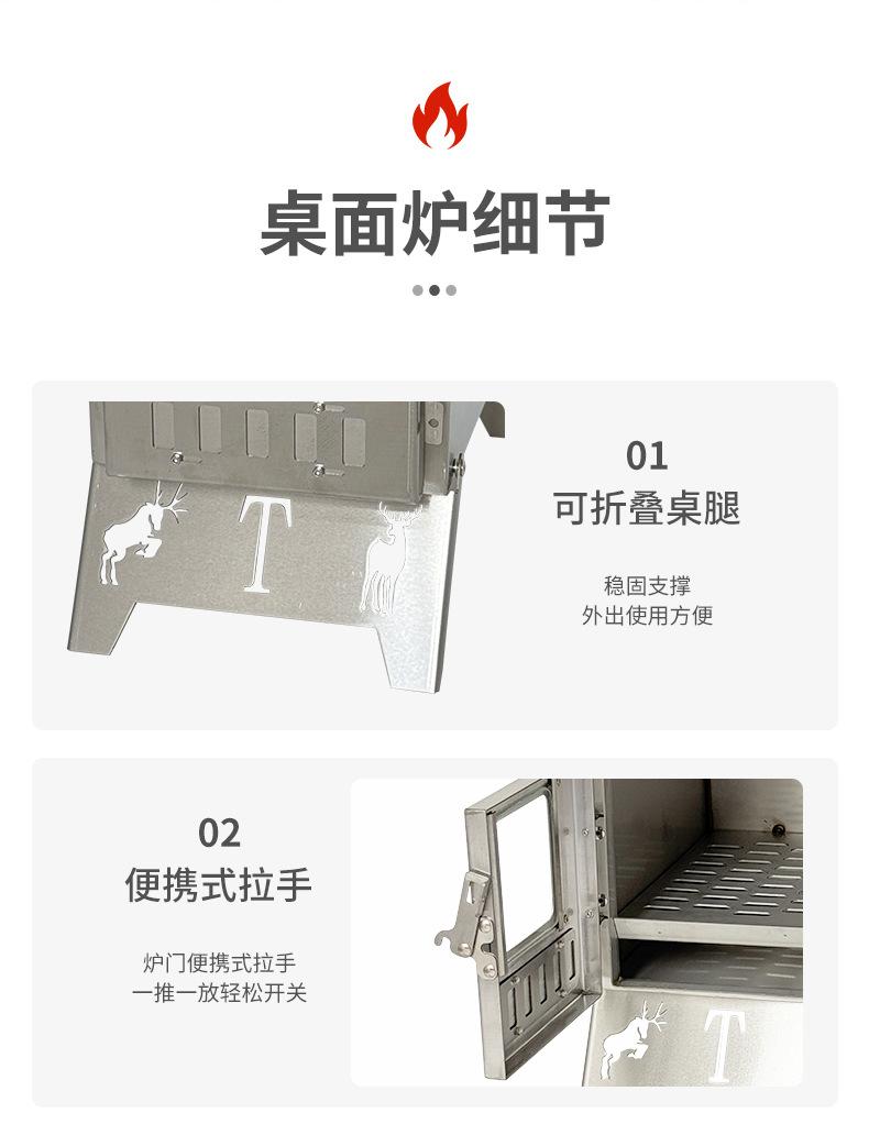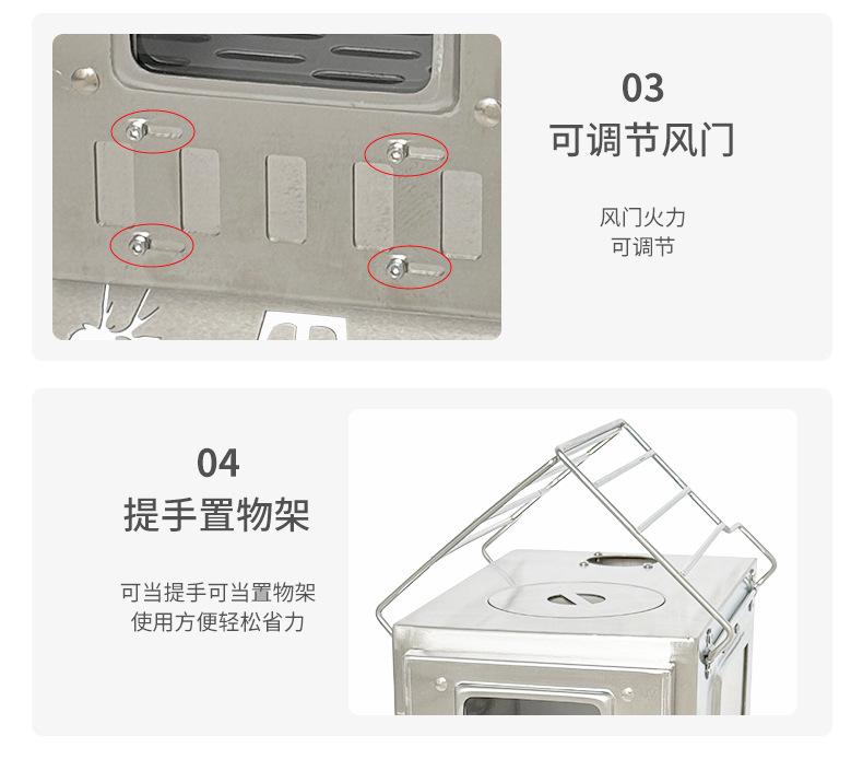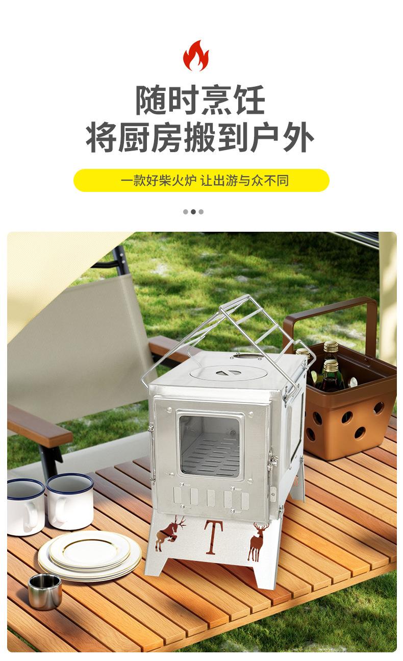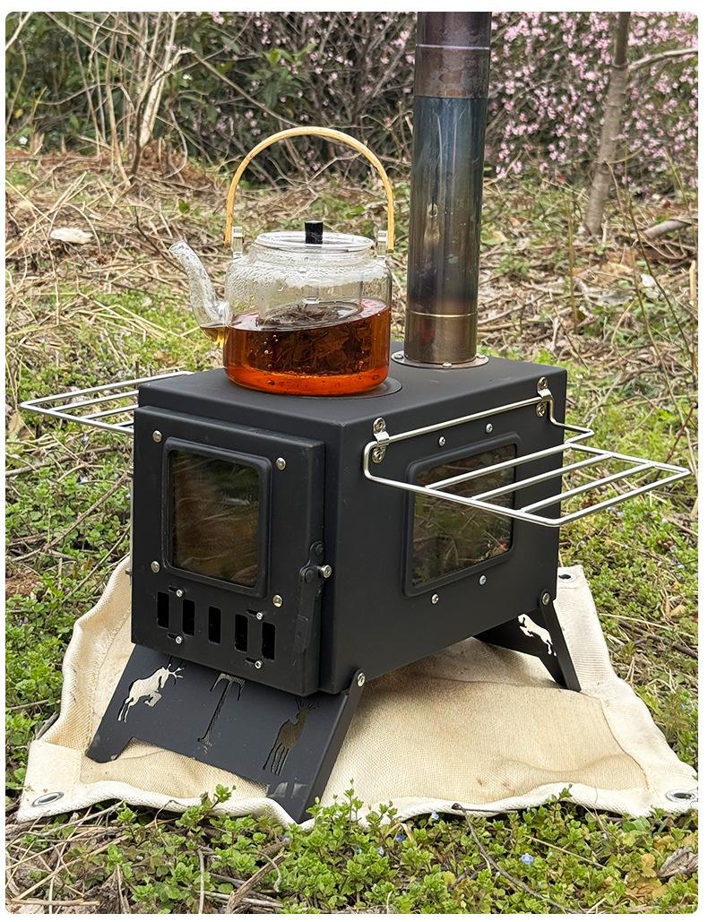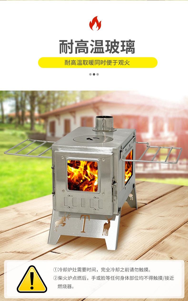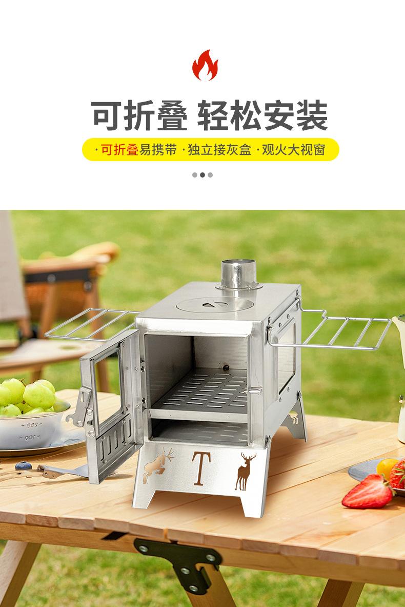 Estufa de leña para exteriores de acero inoxidable integrada para acampar, calefacción para tienda de campaña, suministro de estufa de leña