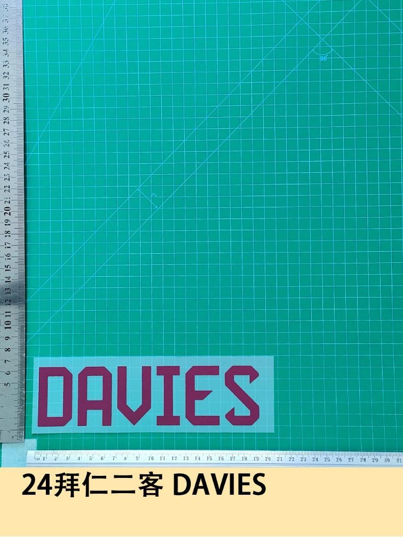 24 Bayern Erke Davies Número de Jersey Letra Transferencia de Calor Número Transferencia de Calor Mapa Jersey Suministros para Jersey