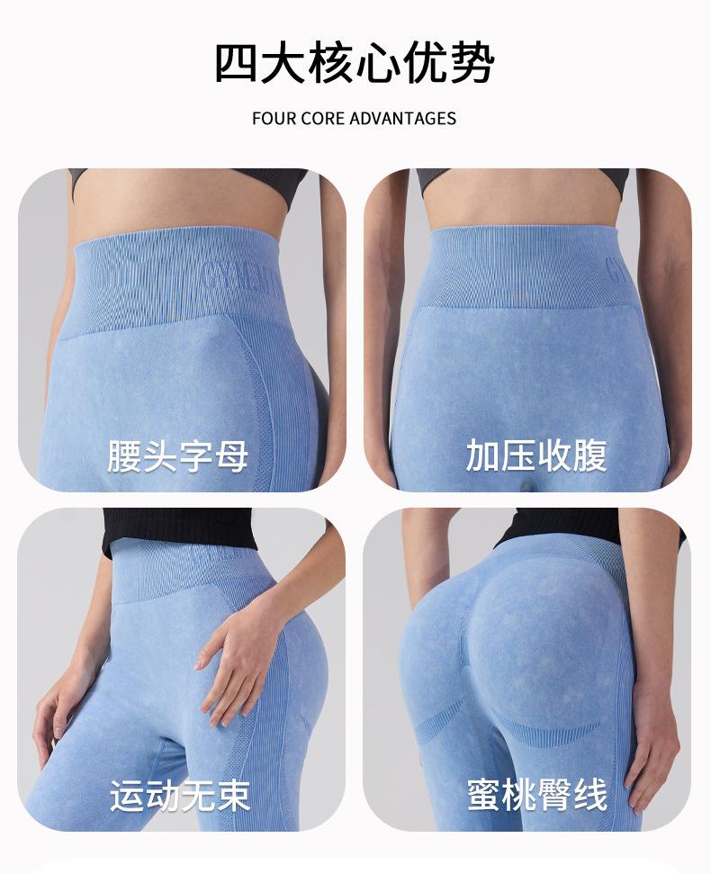 Pantalones de yoga sin costuras para otoño e invierno para mujer, pantalones largos lavados a la arena, de secado rápido, cintura alta, realce de cadera, pantalones ajustados, pantalones de fitness con letras, pantalones deportivos