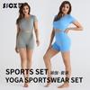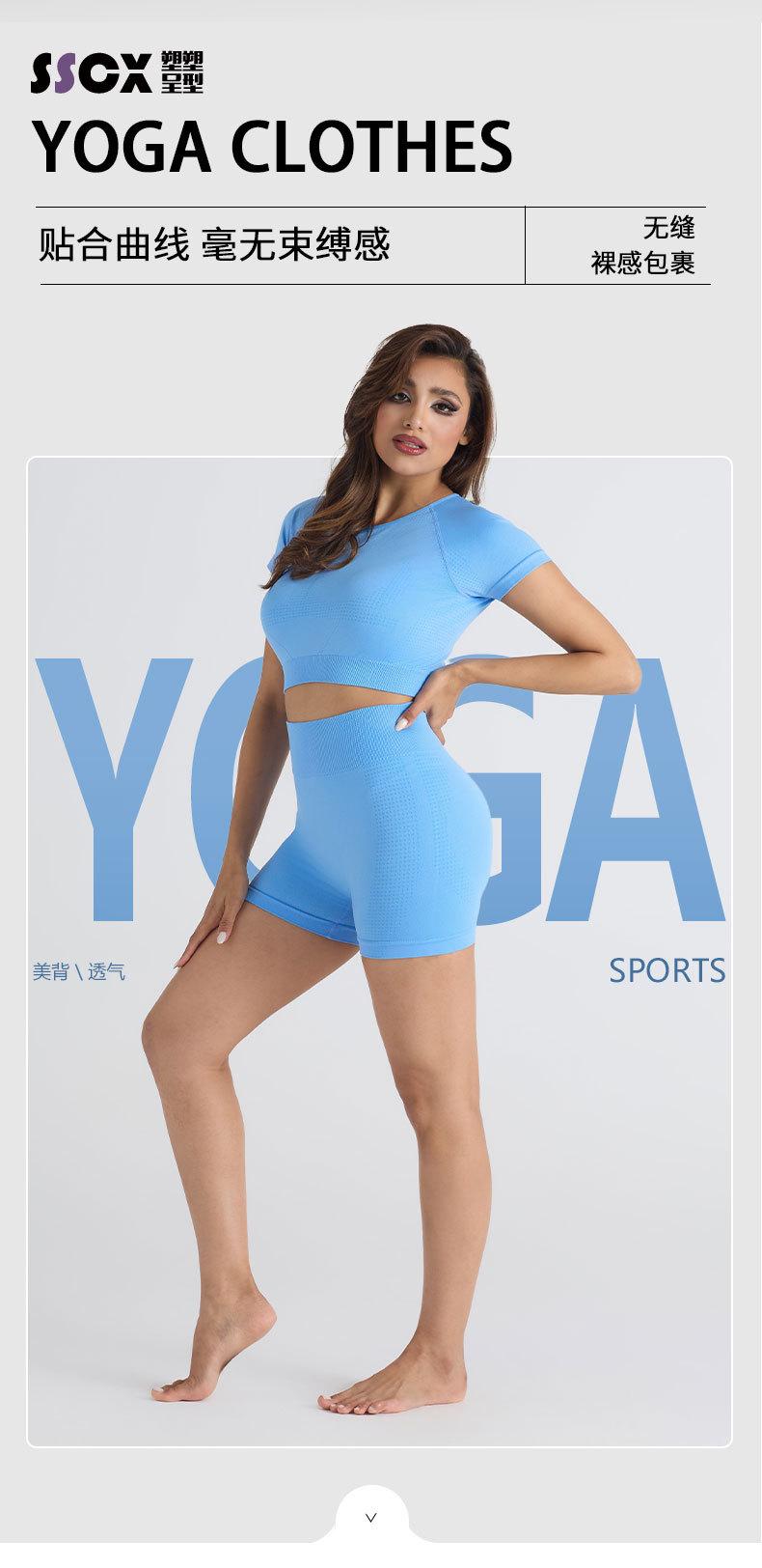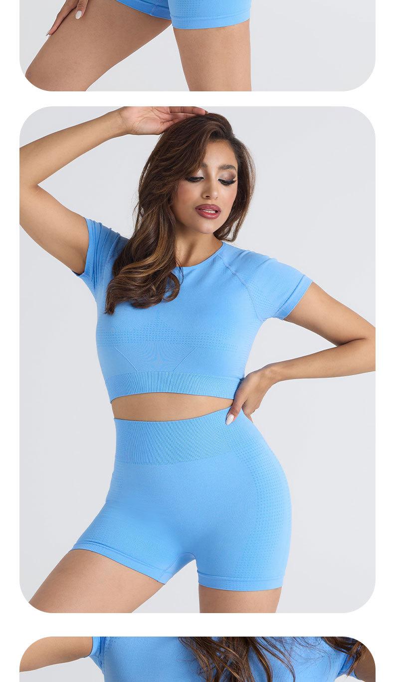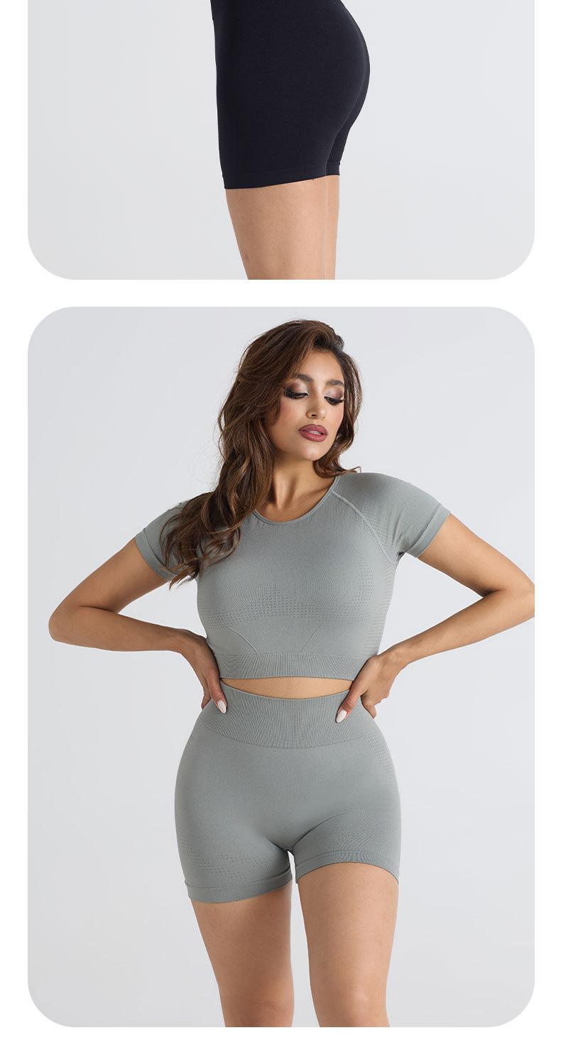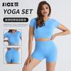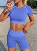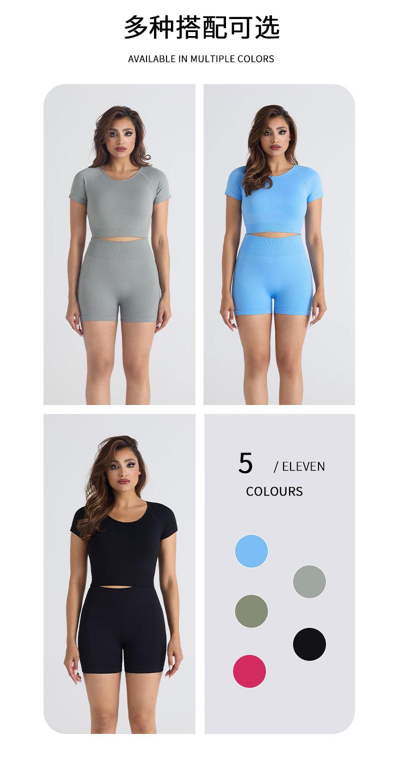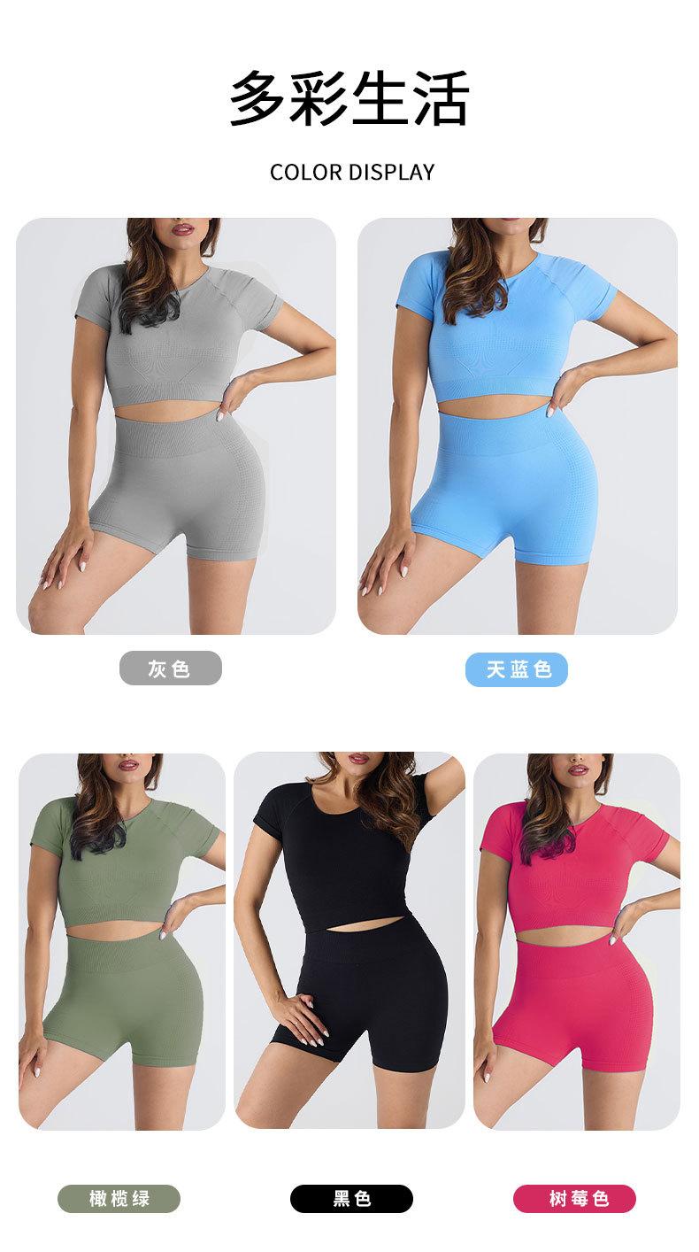 Conjunto de traje de yoga transfronterizo sin costuras de alta elasticidad conjunto deportivo fitness secado rápido manga corta shorts conjunto de dos piezas conjunto ajustado
