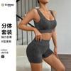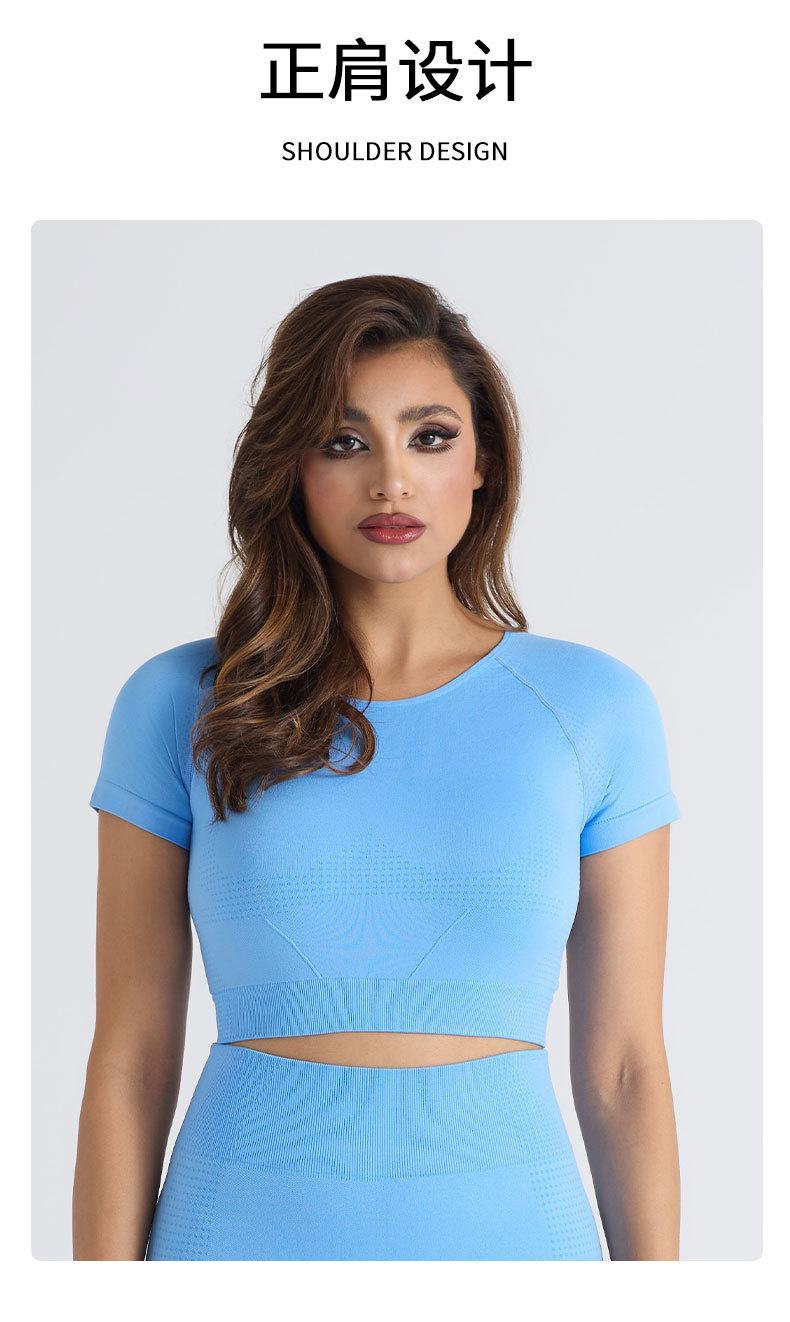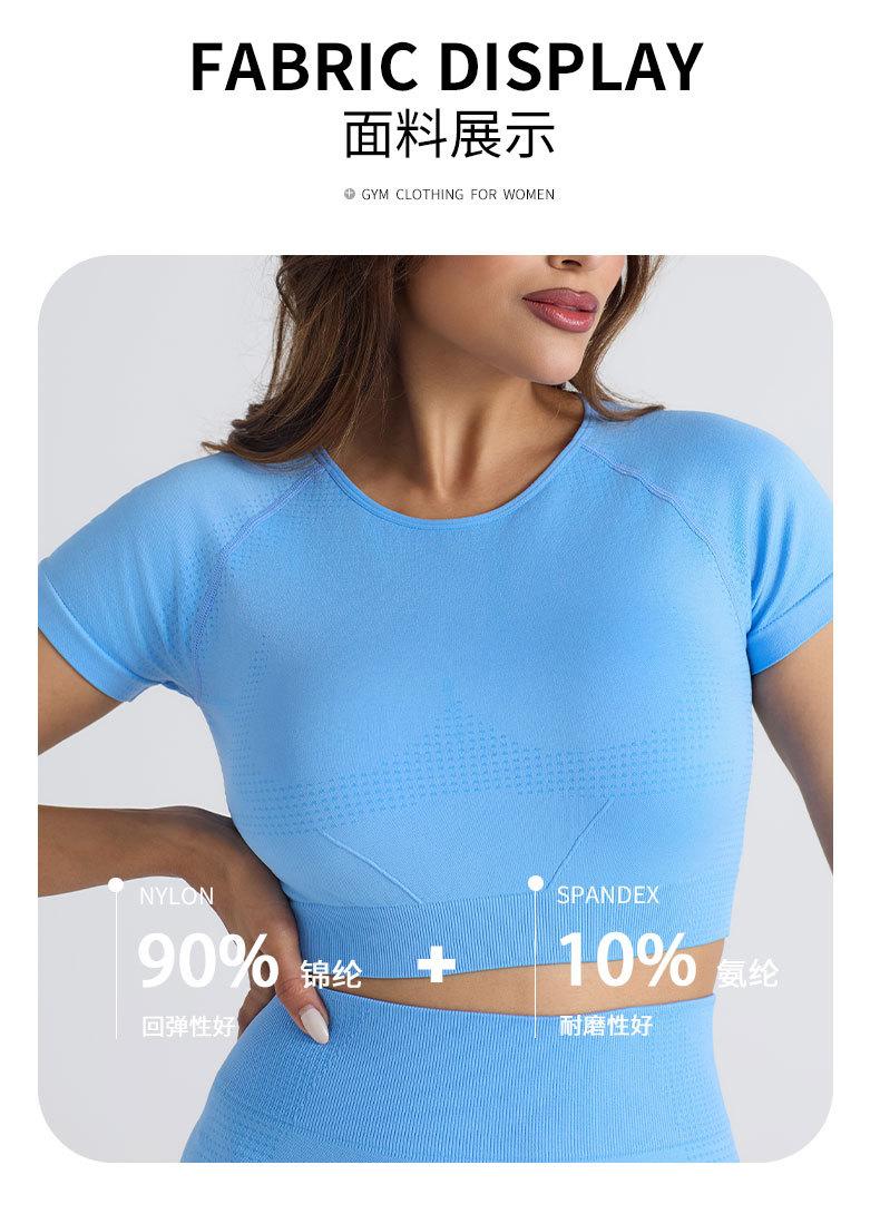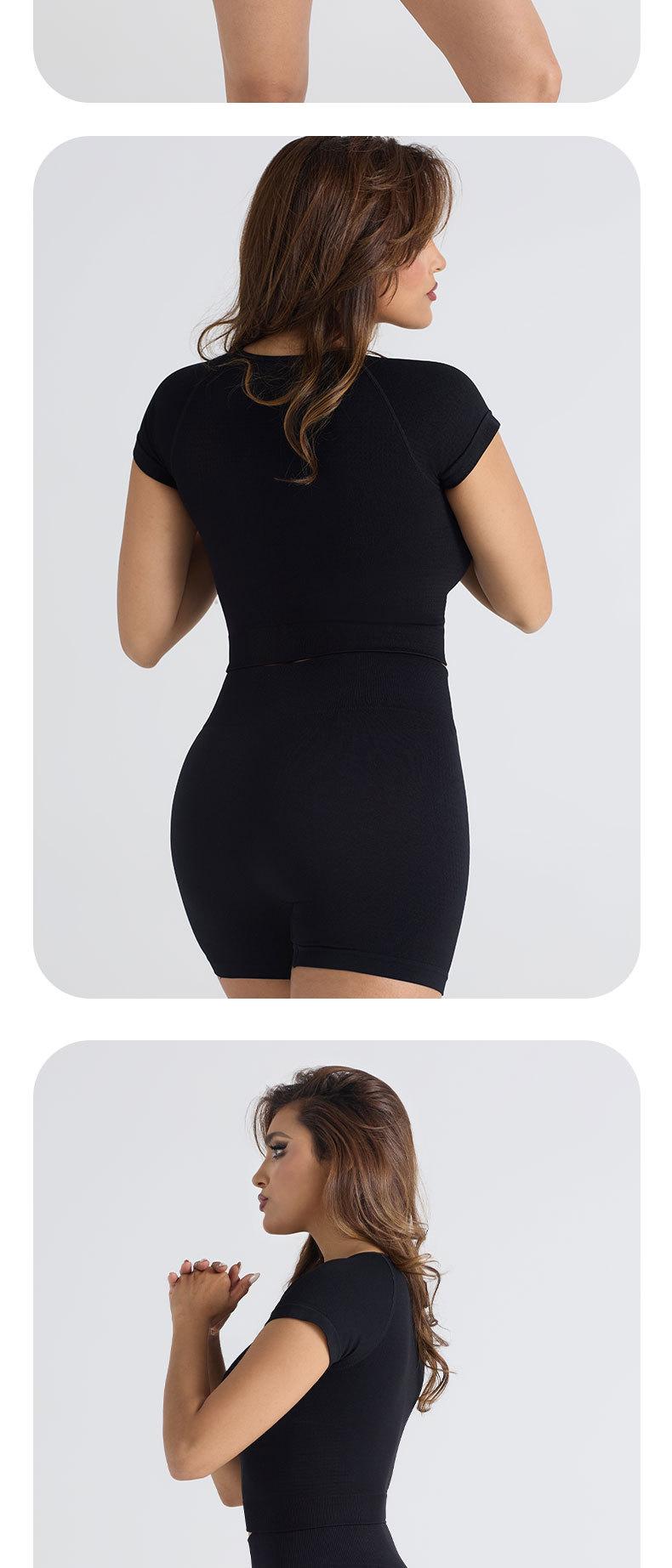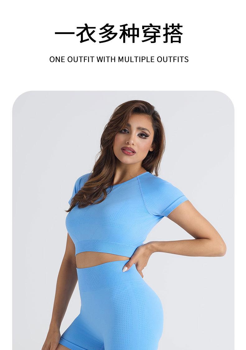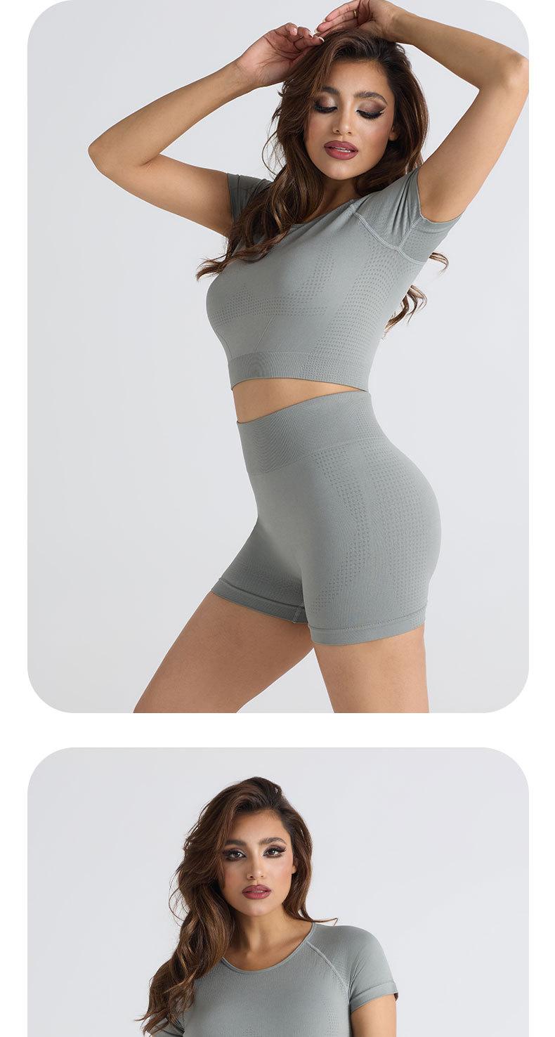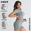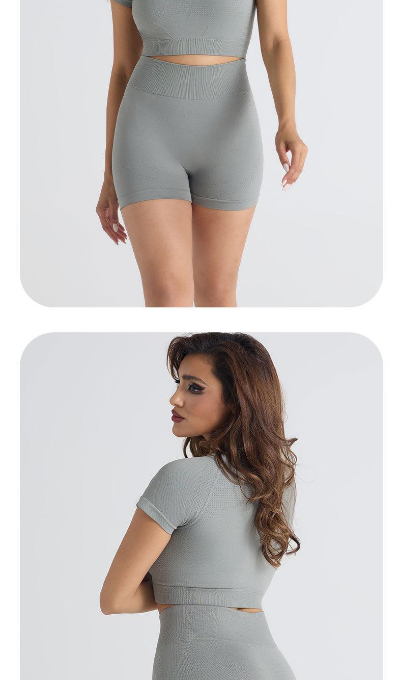 Conjunto de traje de yoga transfronterizo sin costuras de alta elasticidad conjunto deportivo fitness secado rápido manga corta shorts conjunto de dos piezas conjunto ajustado