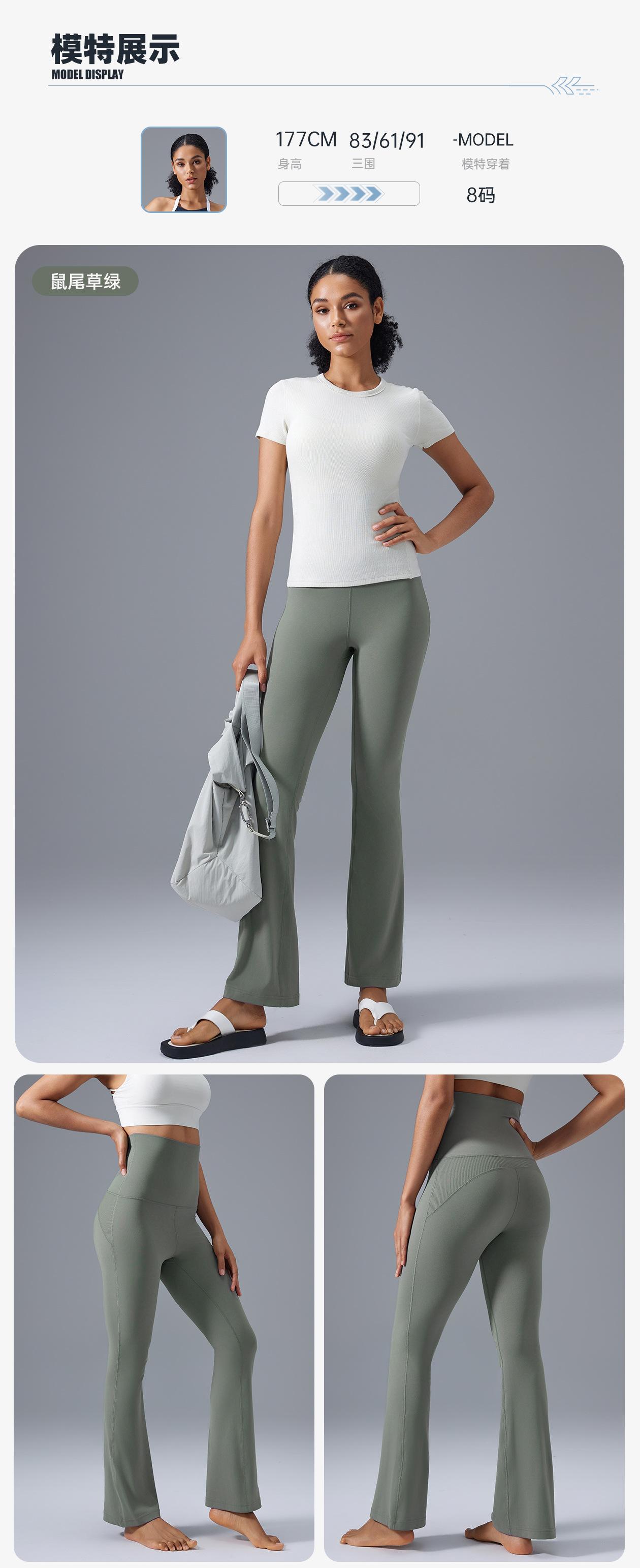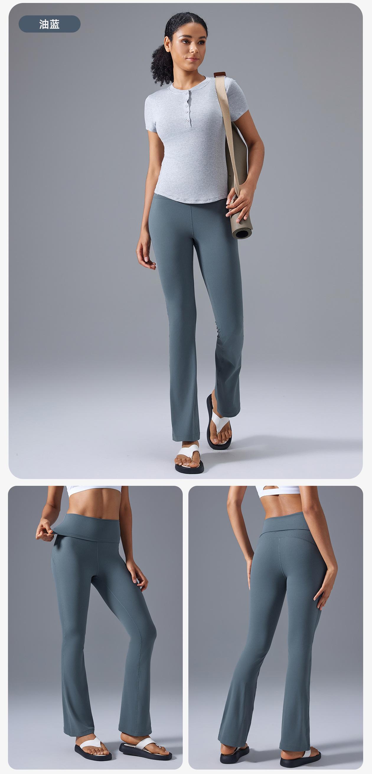 Pantalones de Yoga Acampanados Adelgazantes de Cintura Alta con Cinturilla Plegable, Pantalones Deportivos Fitness para Mujer Levanta Caderas y Control de Abdomen D25102