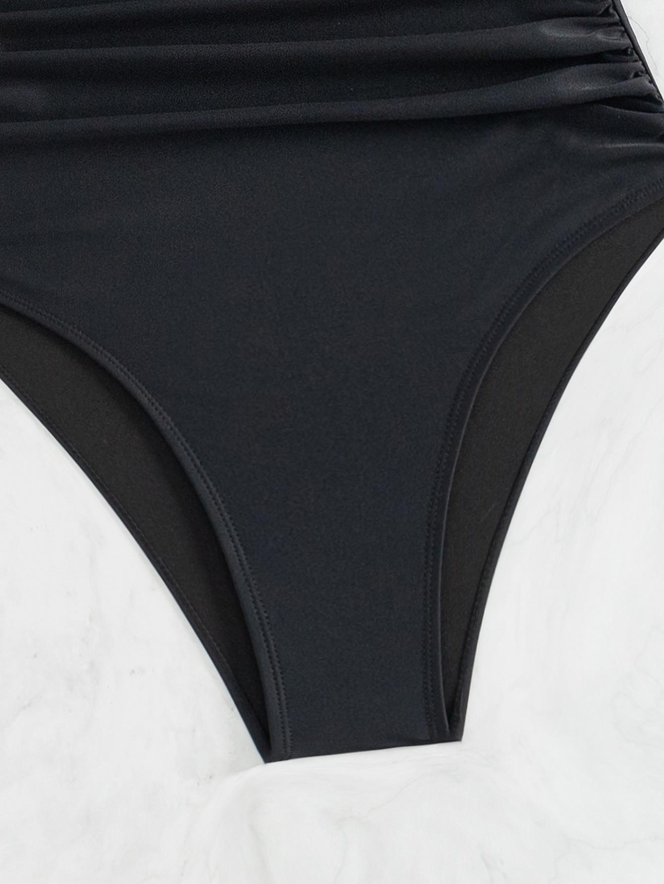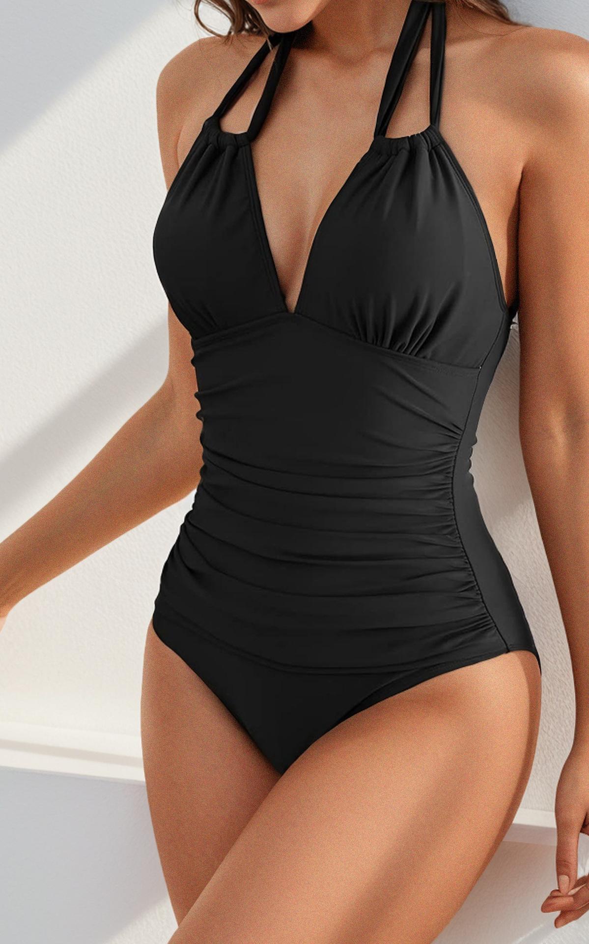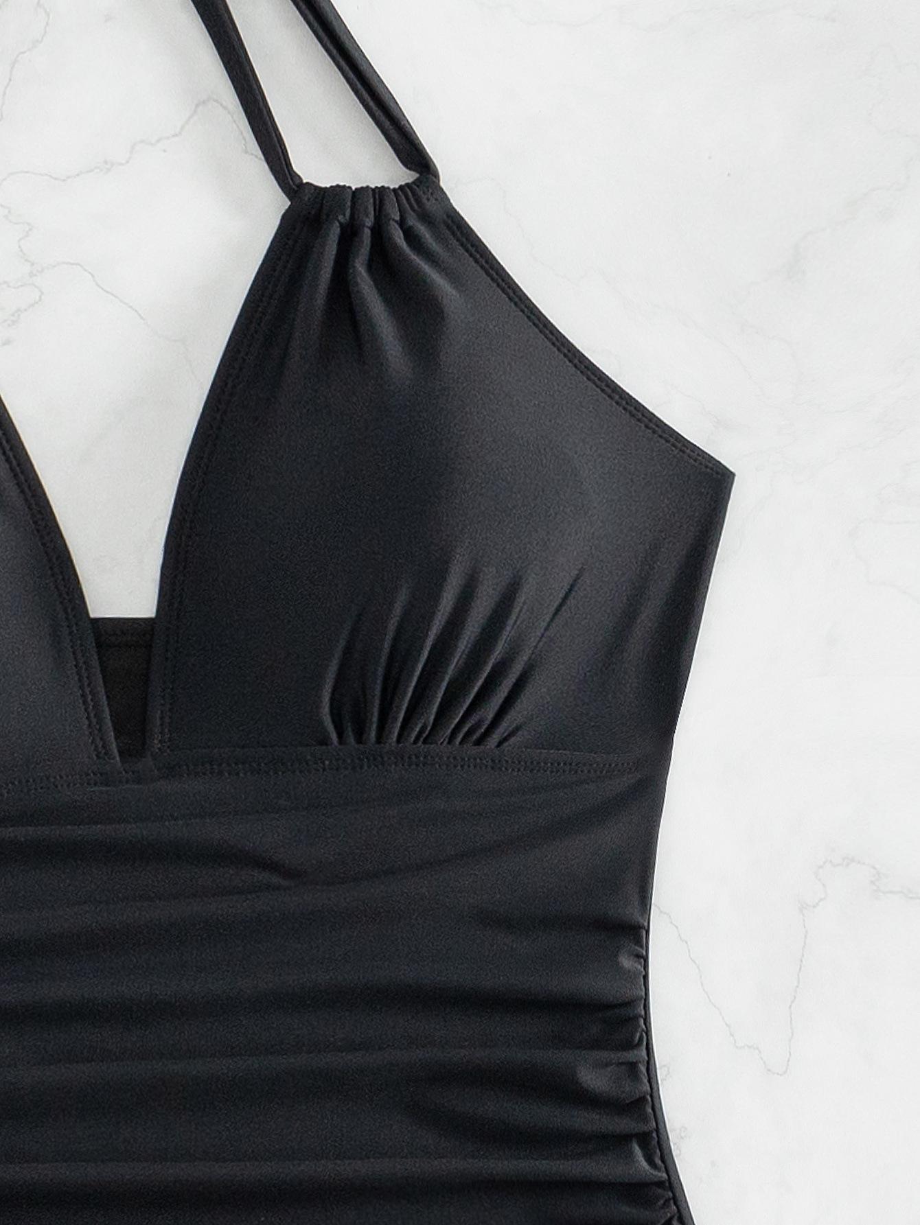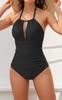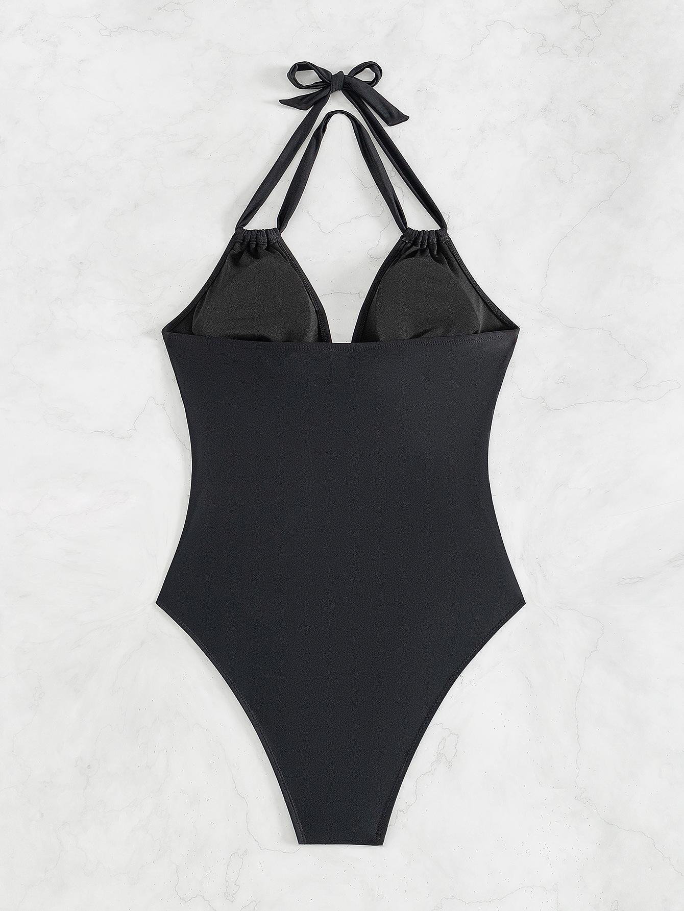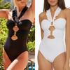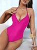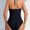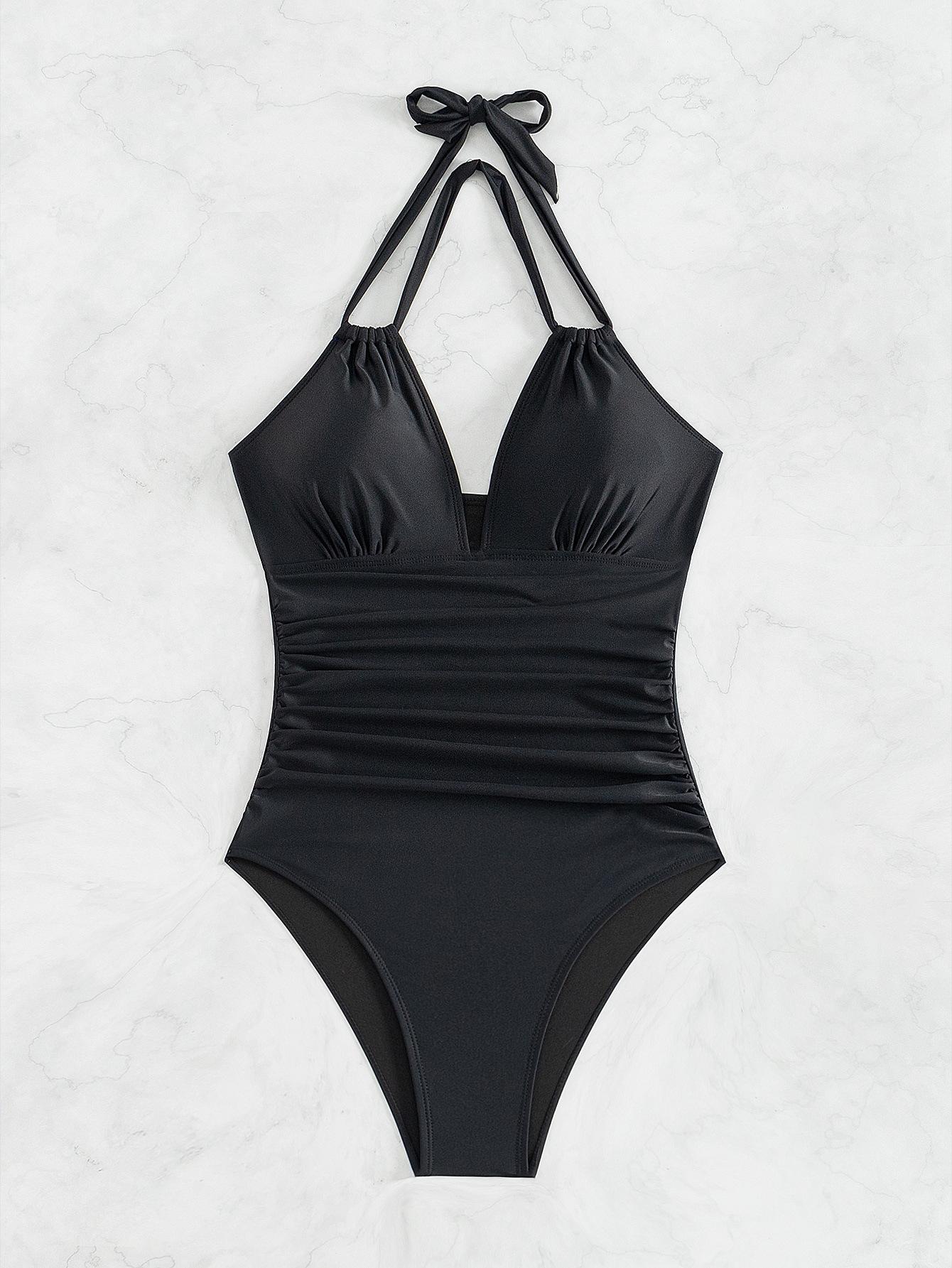 Bikini 2025 Nuevo Comercio Exterior Europeo y Americano Color Sólido Halter Sin Espalda Fruncido Adelgazante Traje de Baño Bikini Sexy de Una Pieza