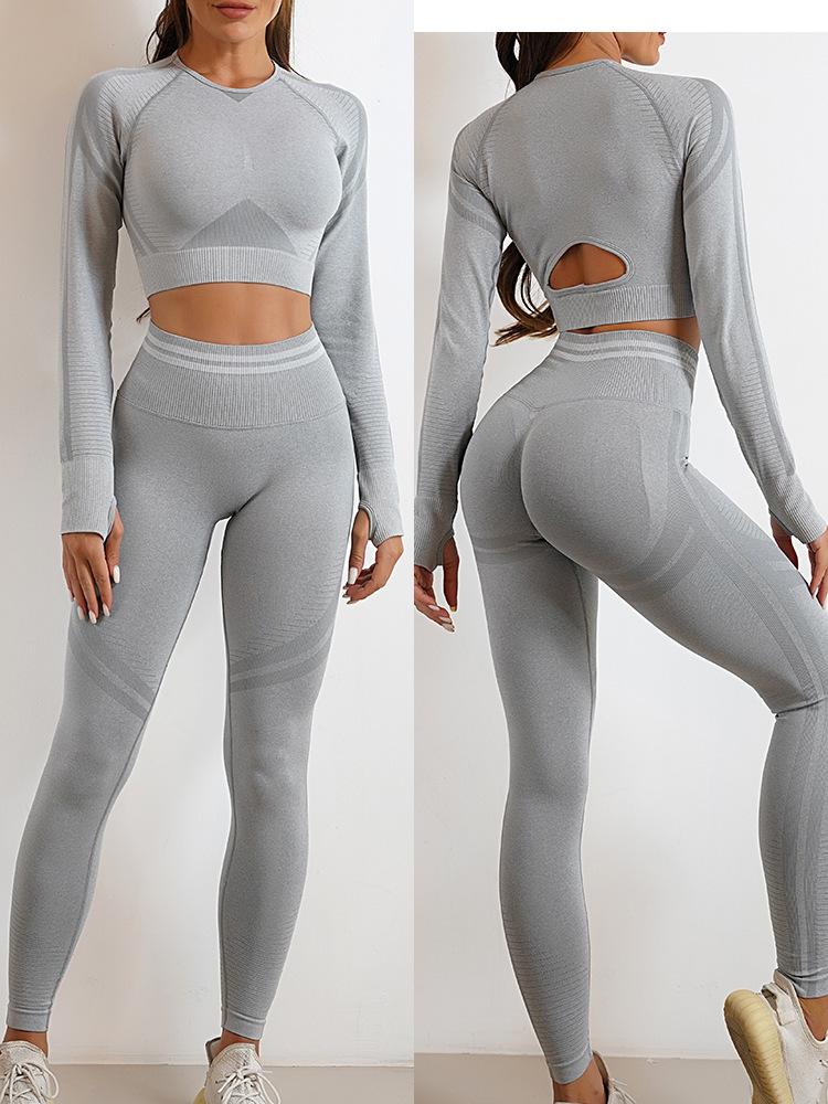 Pantalones largos deportivos de nailon para correr y fitness de venta caliente transfronteriza, de manga larga para mujer, ropa deportiva para entrenamiento de running, conjunto de traje de yoga para mujer