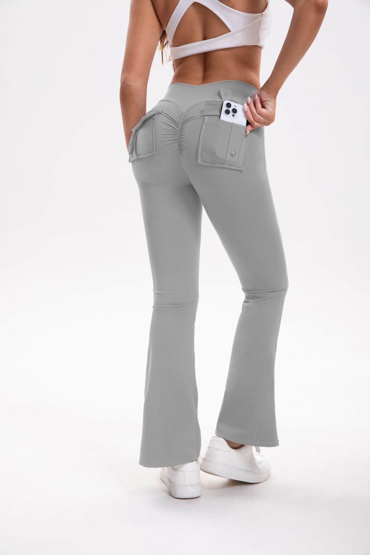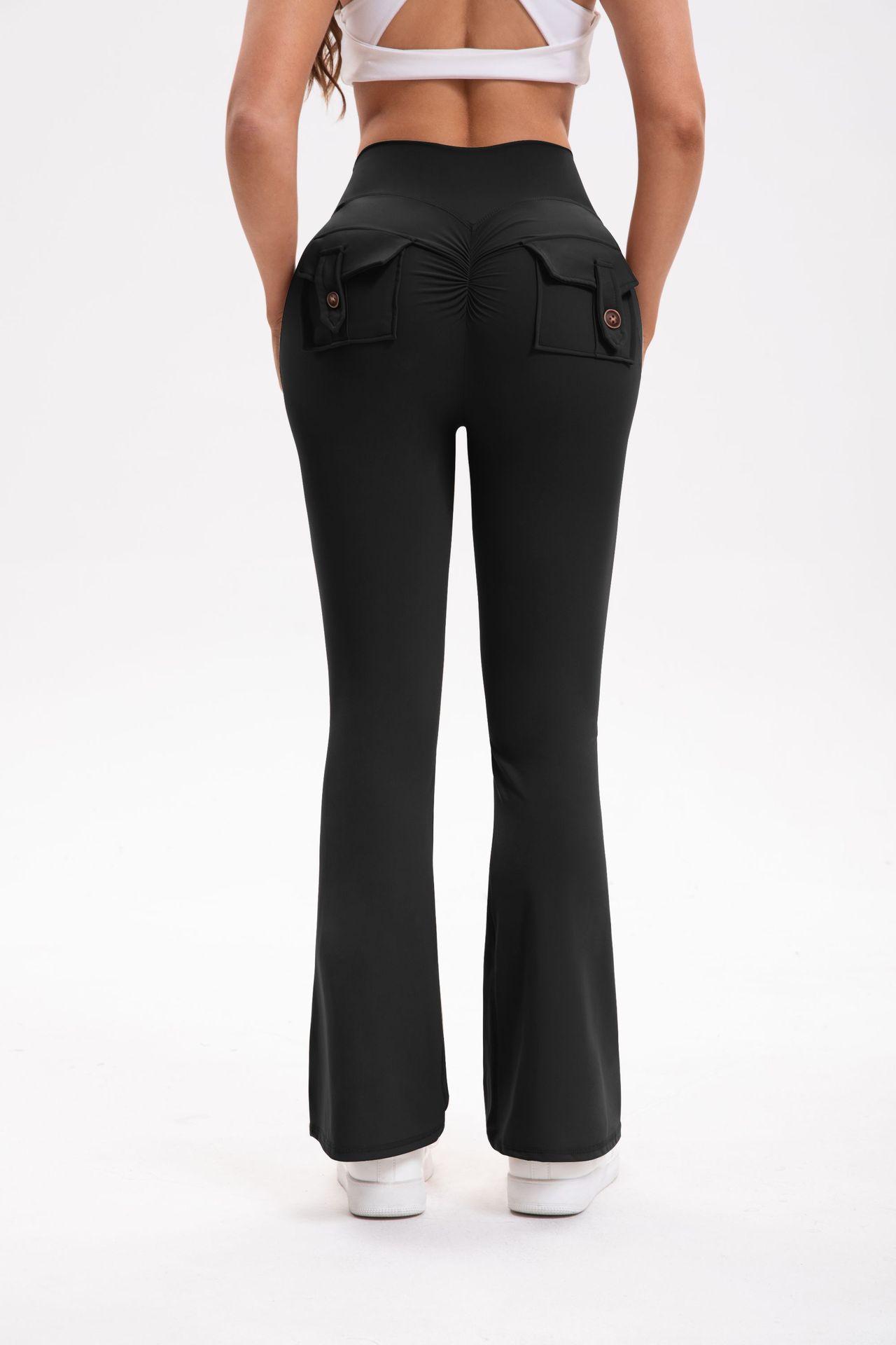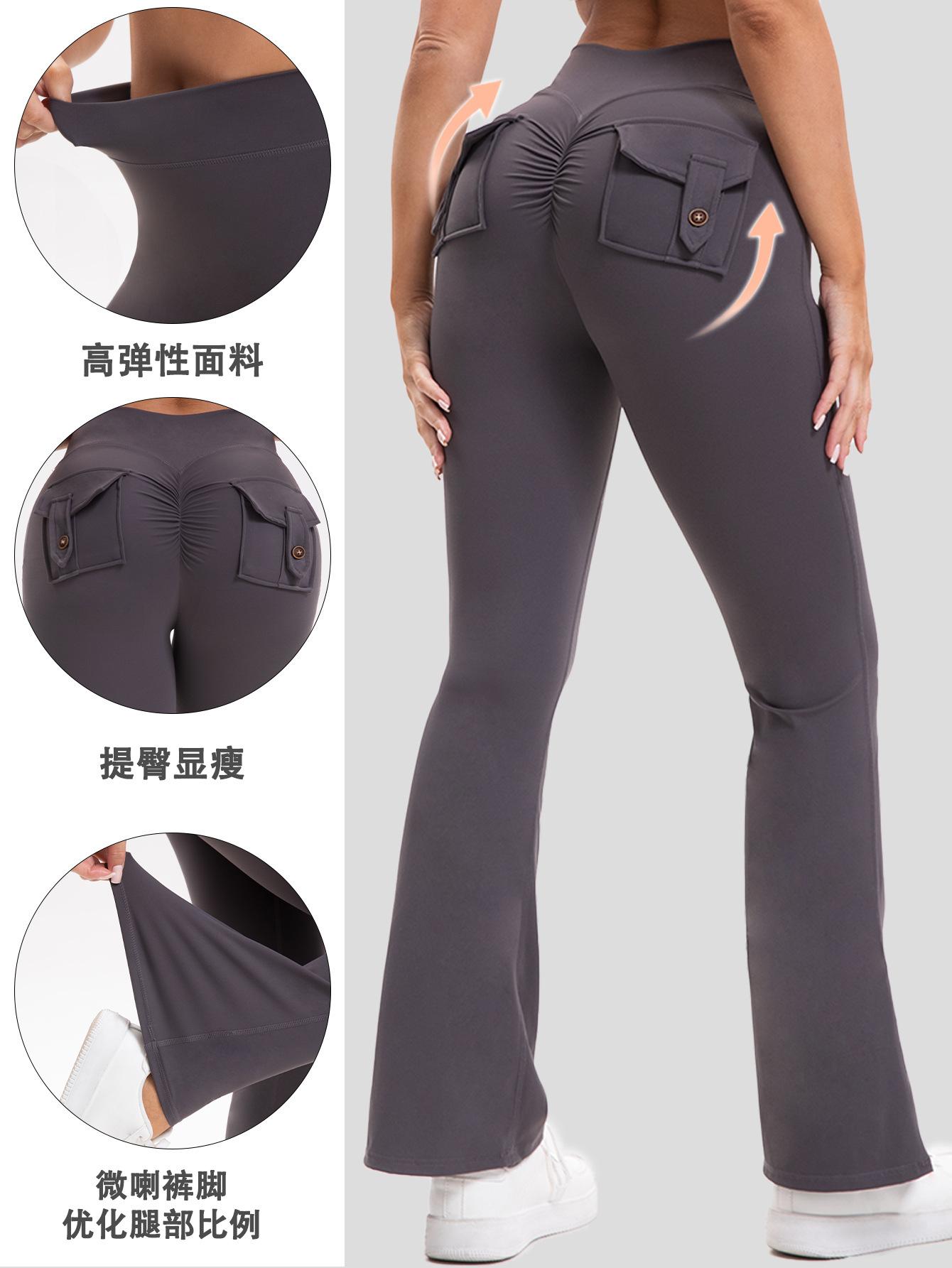 Pantalones de Trabajo Estilo Europeo y Americano con Bolsillo de Botón, Pantalones Largos de Yoga Elásticos, Levanta Caderas, Cintura Alta, Deportivos, Fitness, Secado Rápido, Acampanados K091
