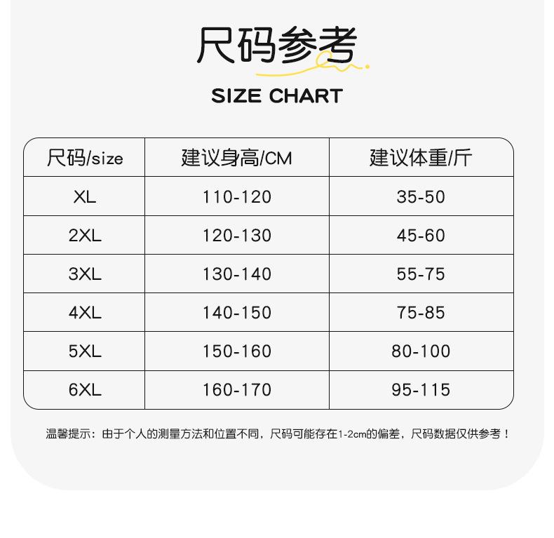 Xl recommended height 110-120cm weight 17.5-25kg, 2xl recommended height 120-130cm weight 22.5-30kg, 3xl recom...