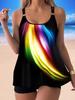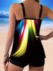 2024 Nuevo Traje de Baño Bóxer Europeo y Americano Transfronterizo Amazon para Mujer Comercio Exterior Cubre Vientre Adelgazante Arcoíris Conservador Tankini