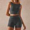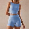 Conjunto de Traje de Yoga Transfronterizo Ropa de Entrenamiento Fitness Pilates Chaleco de Yoga Shorts Conjunto de Yoga Conjunto de Dos Piezas para Mujer