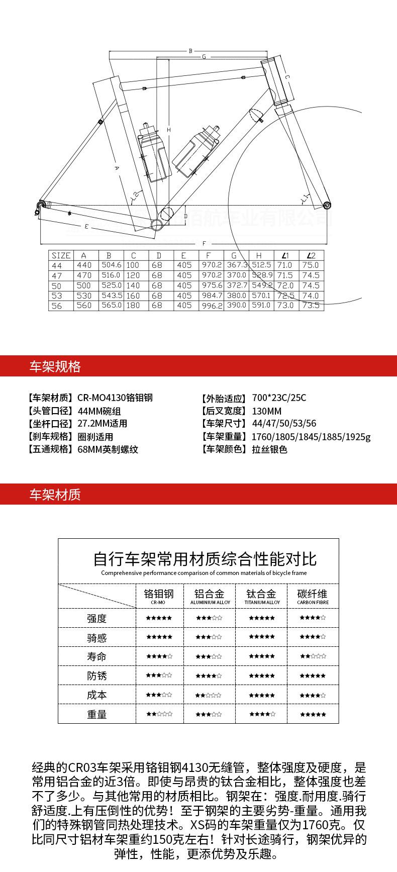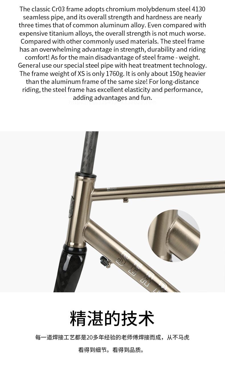 Seaboard Yun'an CR03 bicicleta de carretera cuadro de acero 2024 cableado interno plata fibra de carbono horquilla delantera