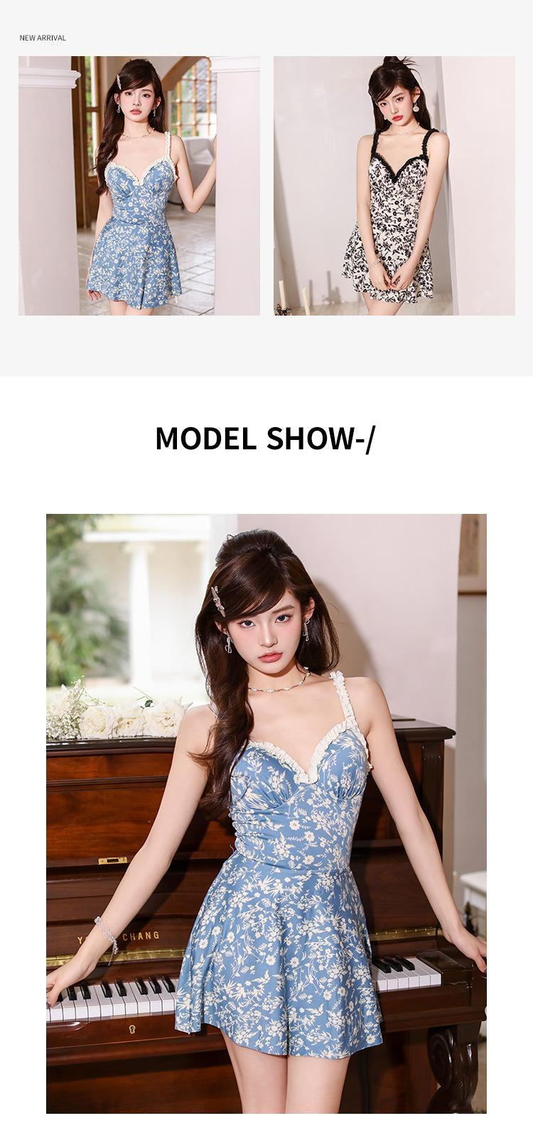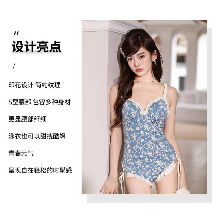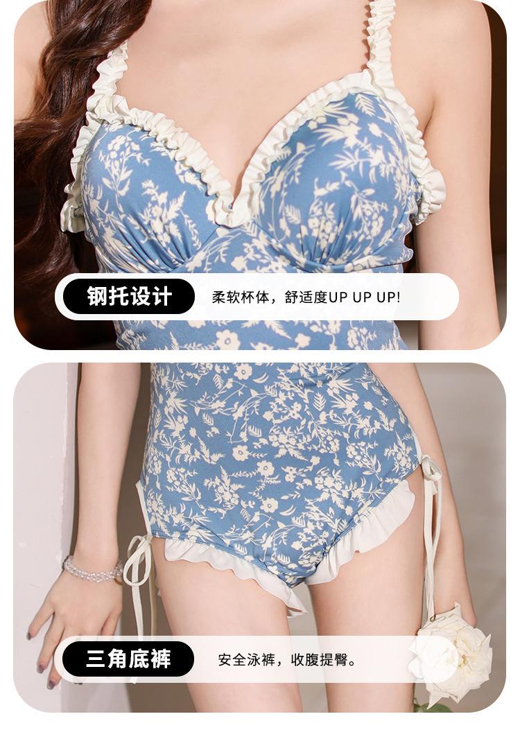 Traje de Baño Entero Triangular con Tirantes Florales para Mujer, Traje de Baño Conservador con Aspecto Adelgazante que Cubre el Vientre, Traje de Baño para Vacaciones en la Playa, Elegante Elegante