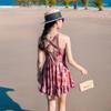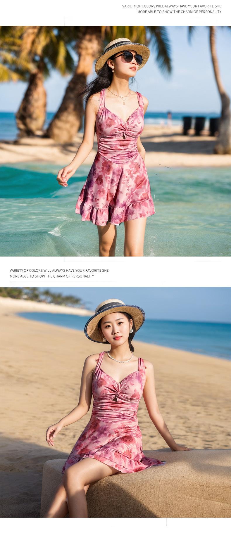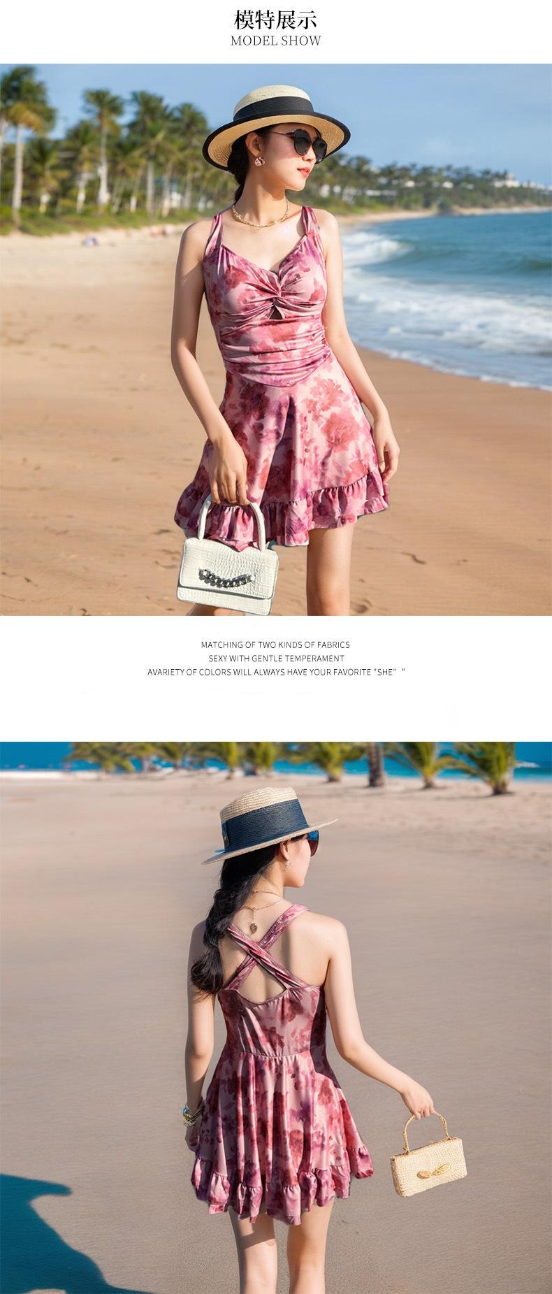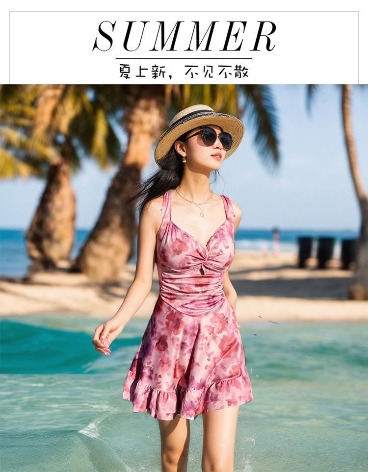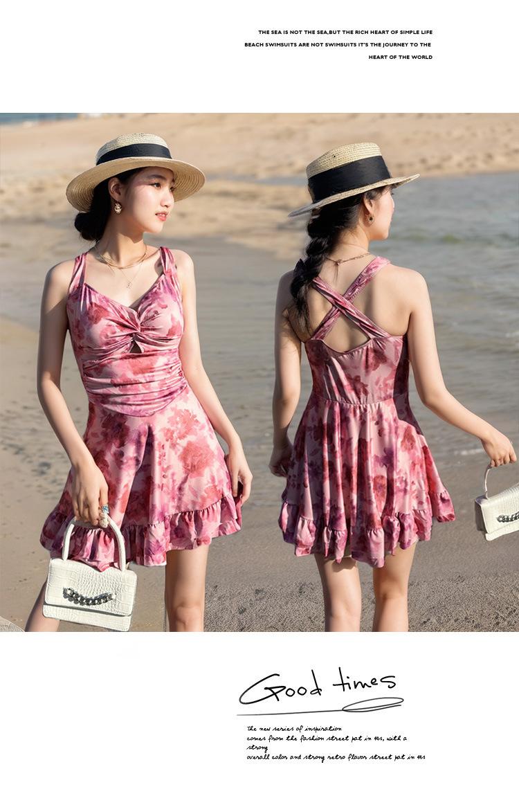 Traje de baño para Mujer 2025 Nuevo de Alta Gama de Una Pieza Estilo Falda Moderno Estampado Cintura Adelgazante Look Espalda Descubierta Conservador Vacaciones Traje de Baño