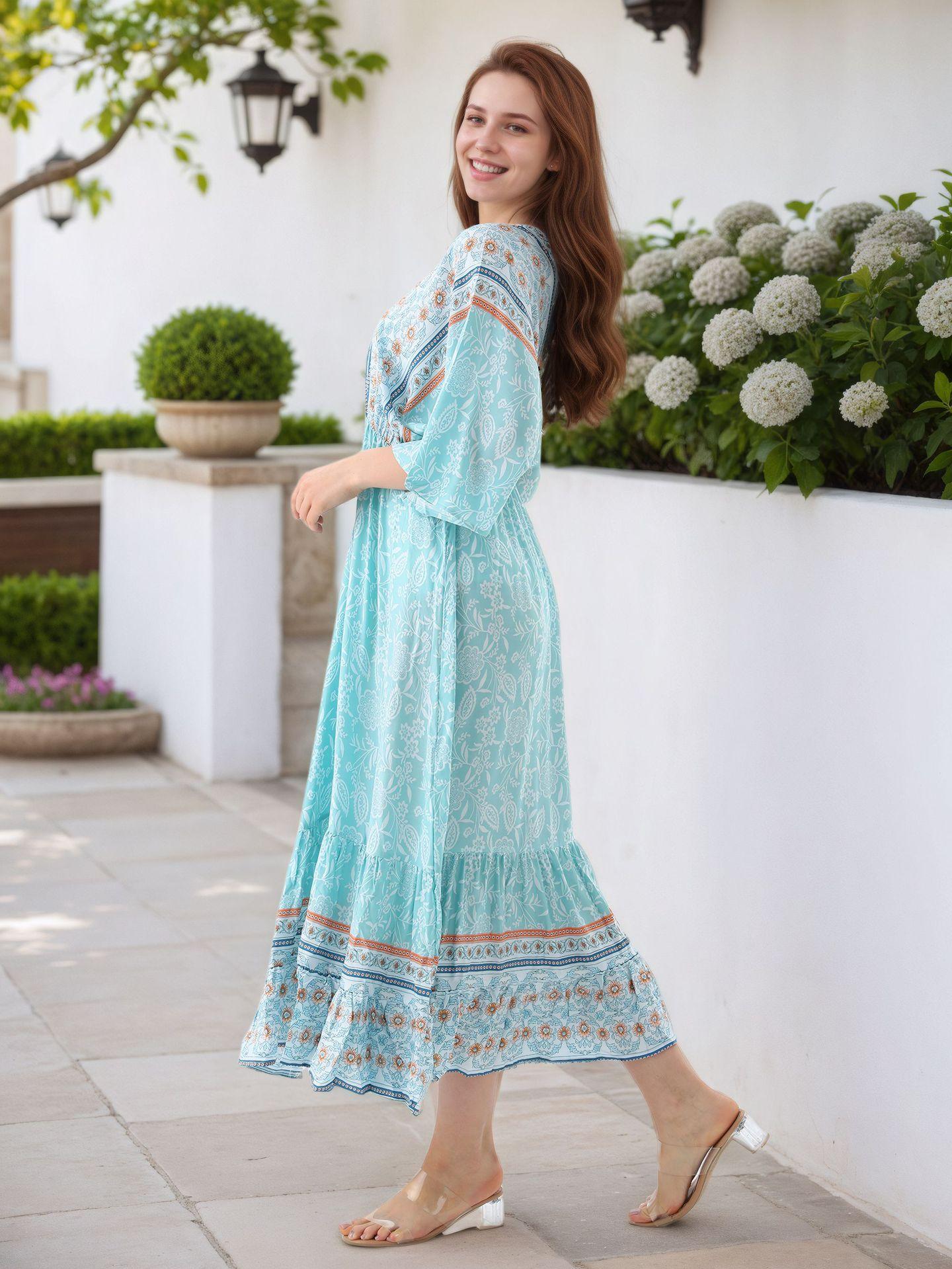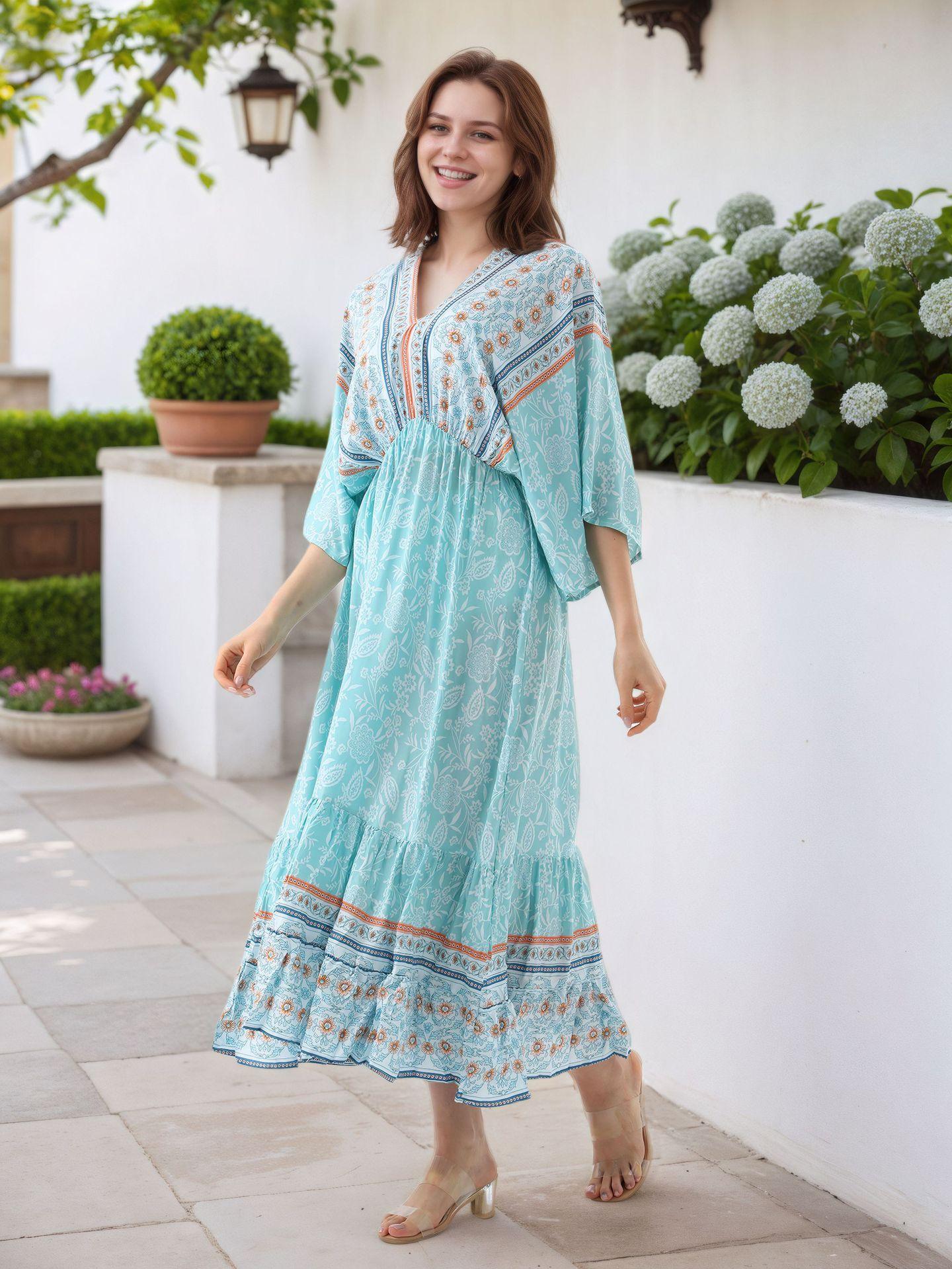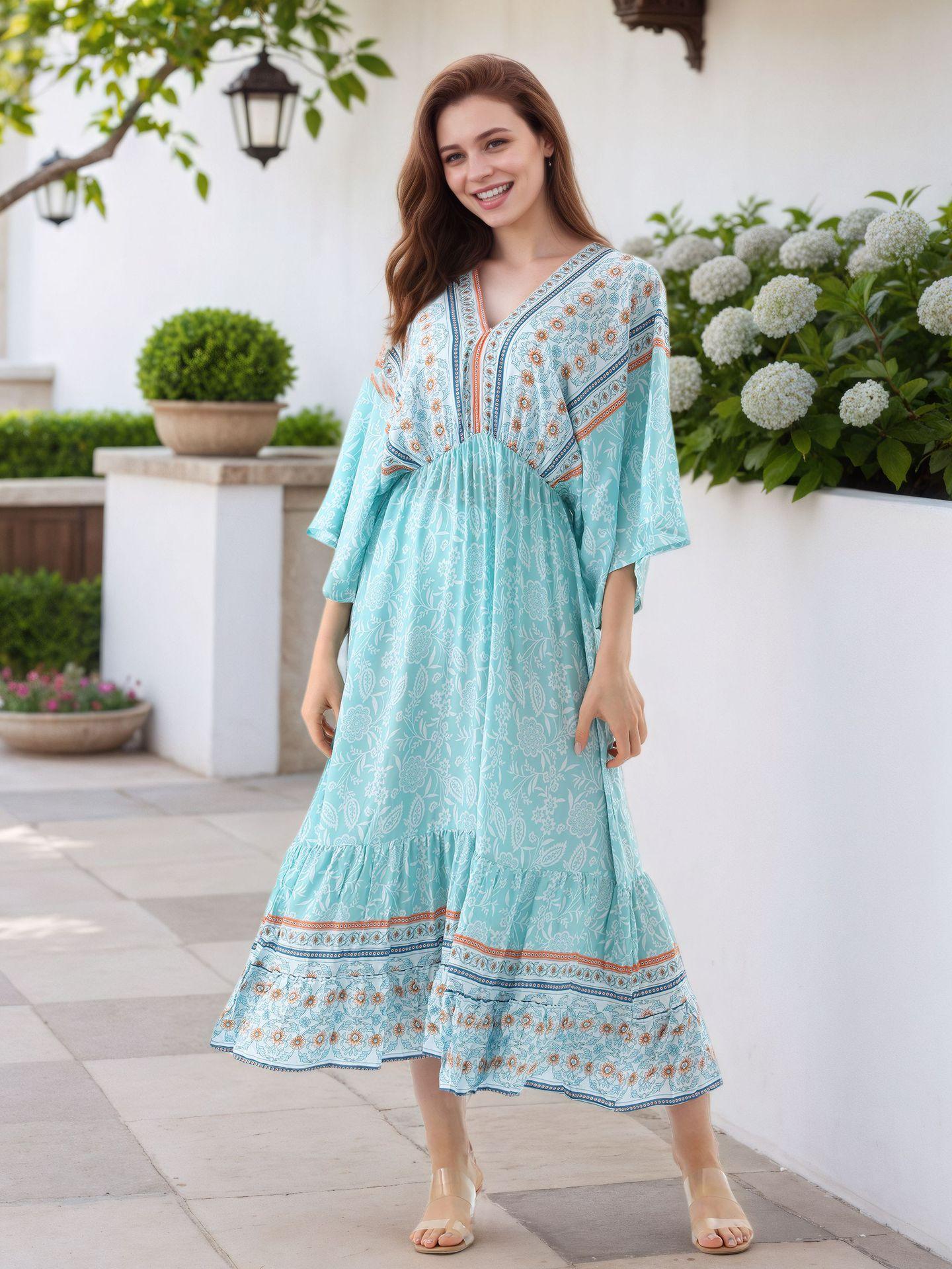 Falda de Playa Transfronteriza Europea y Americana Posicionamiento Floral Cubre Playa Vestido de Vacaciones Falda Larga Suelta en A Amazon