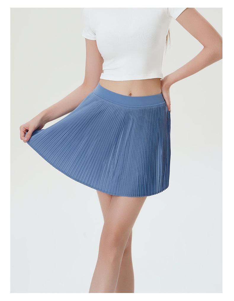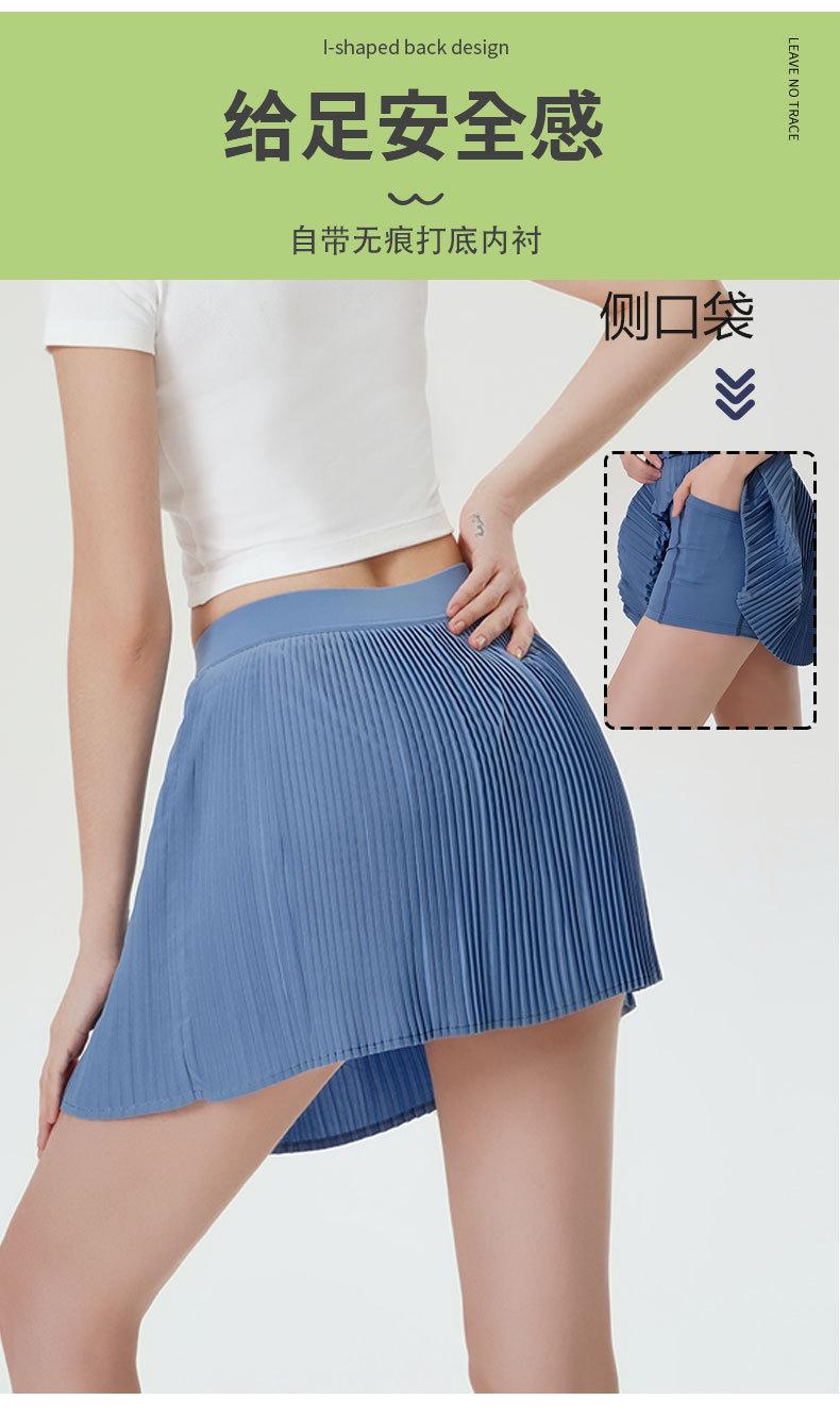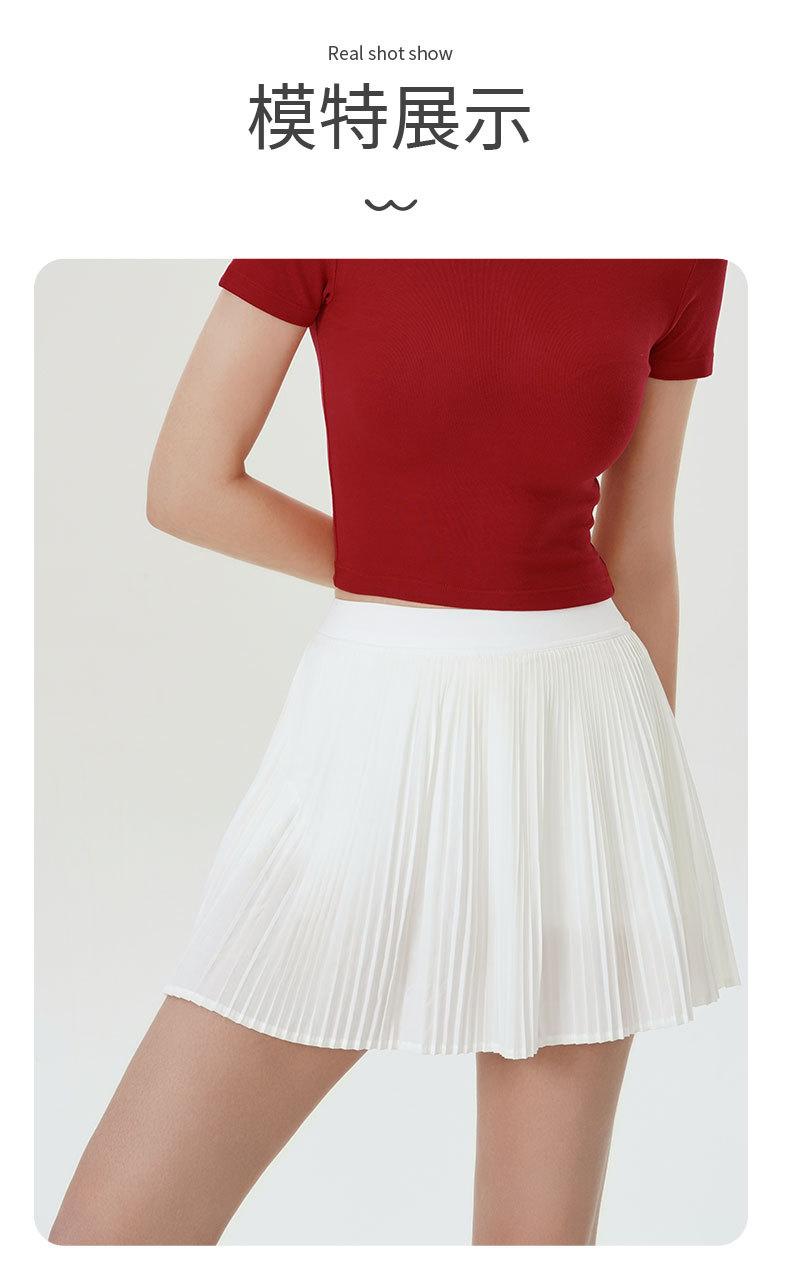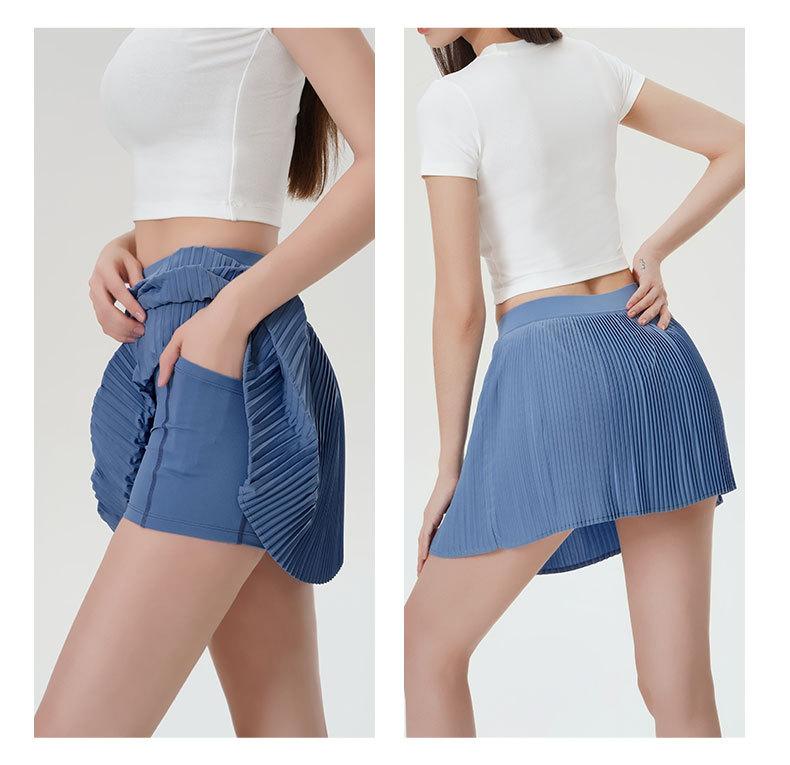 Falda de Tenis Yoga Doble Capa Lulu con Bolsillo Antirozaduras Falda para Correr Media Longitud Color Sólido Fitness Falda Plisada